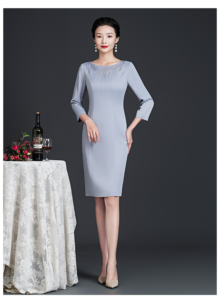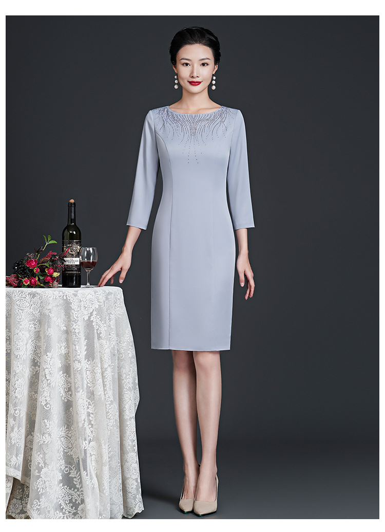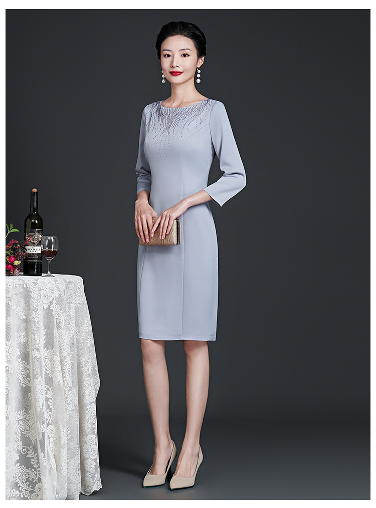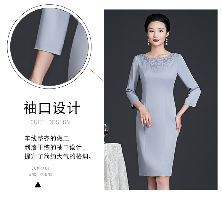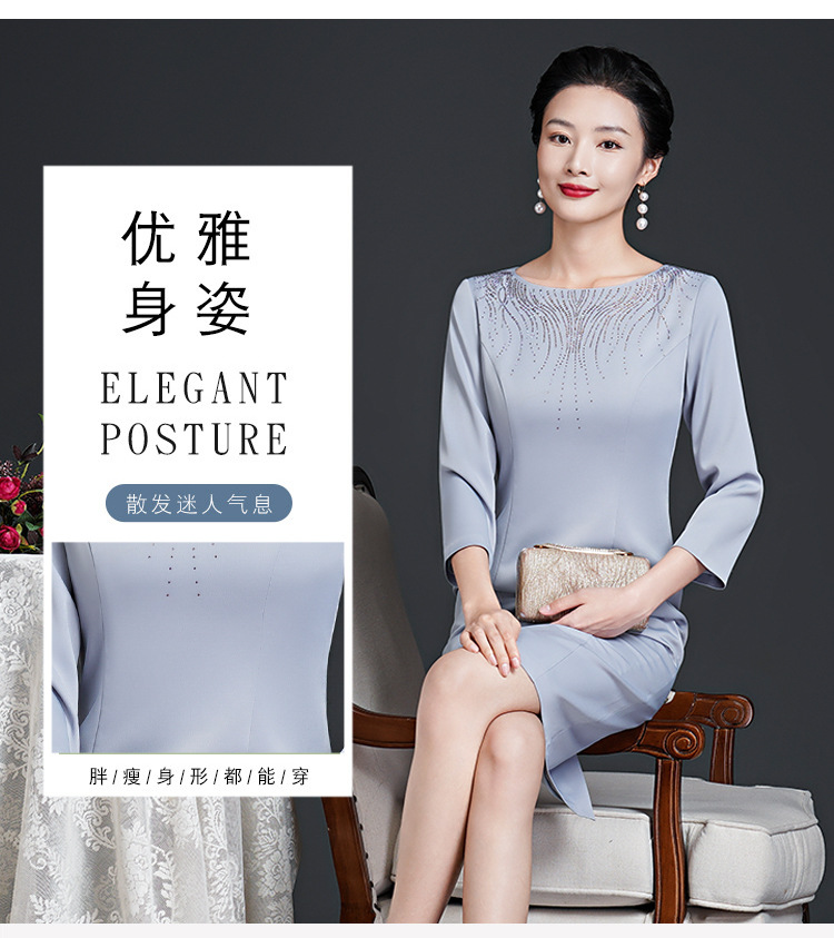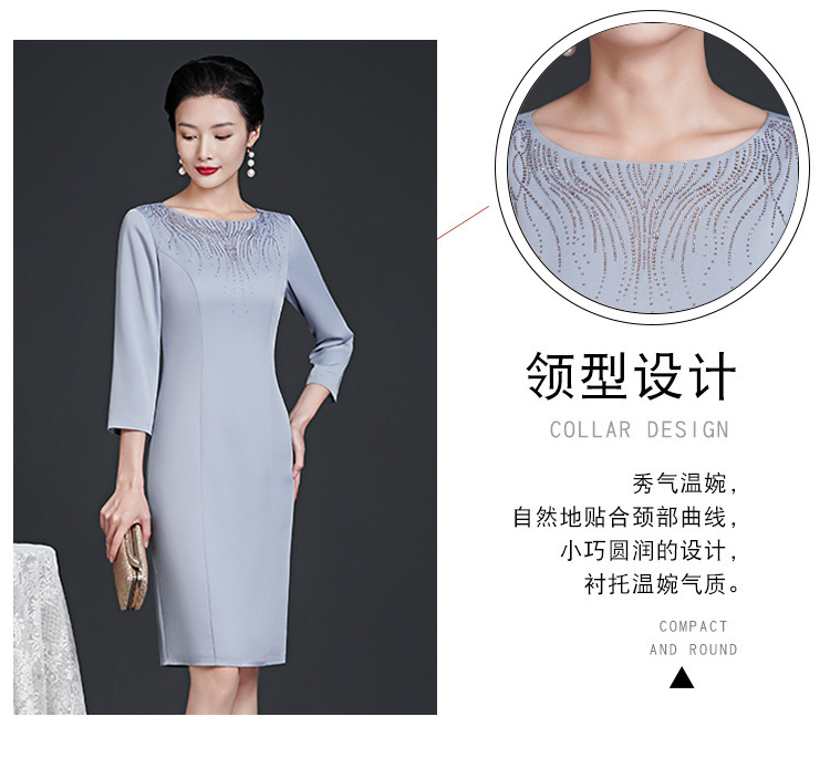 春装新款,时尚优雅圆领烫钻连衣裙中年大码减龄日常妈妈装裙子DY-T0679
