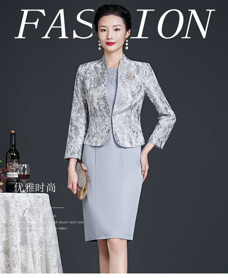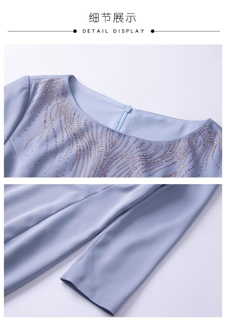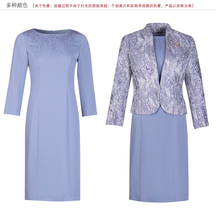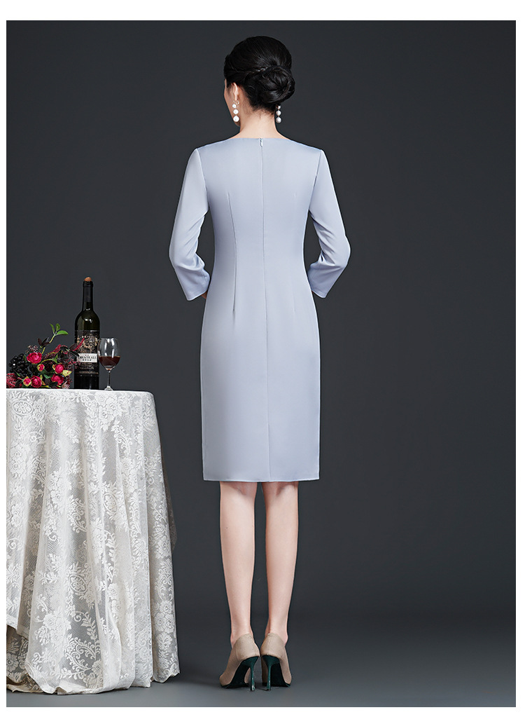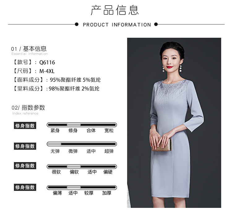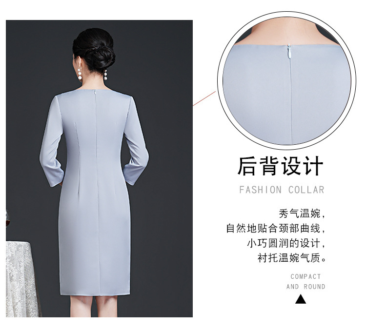 春装新款,时尚优雅圆领烫钻连衣裙中年大码减龄日常妈妈装裙子DY-T0679
