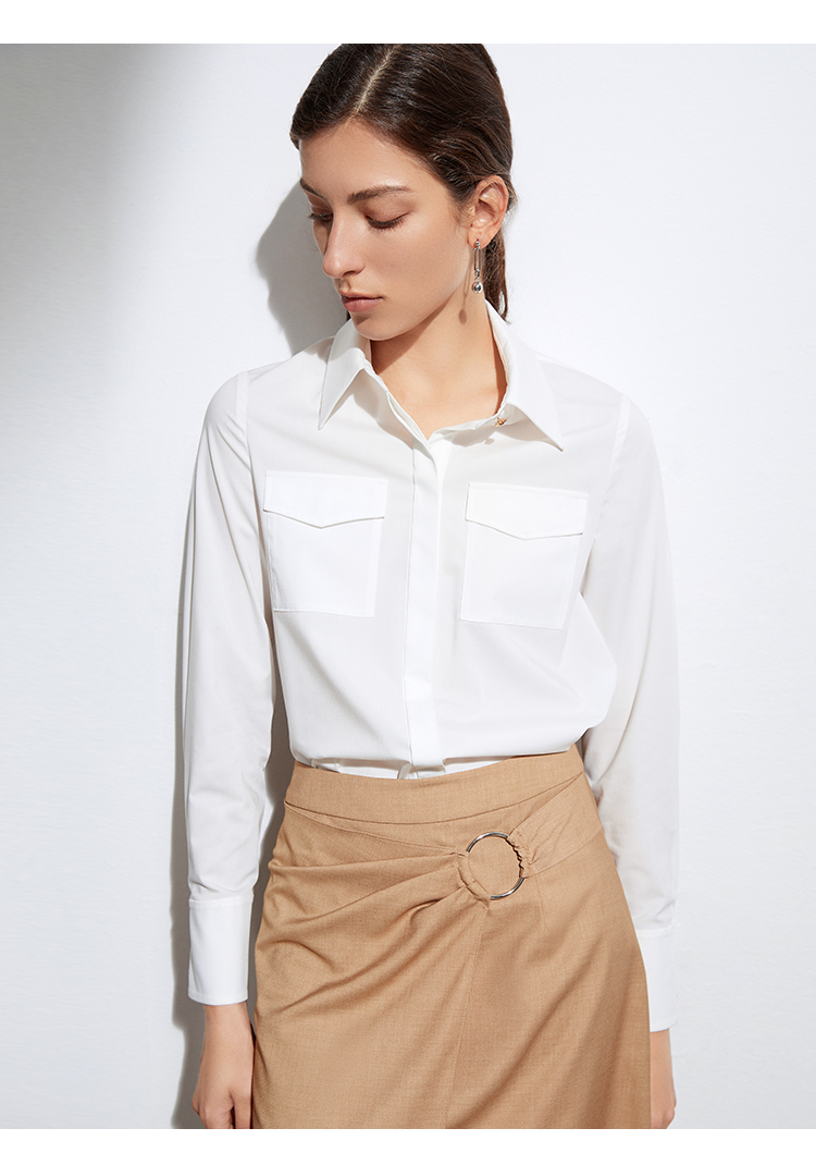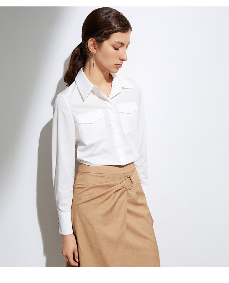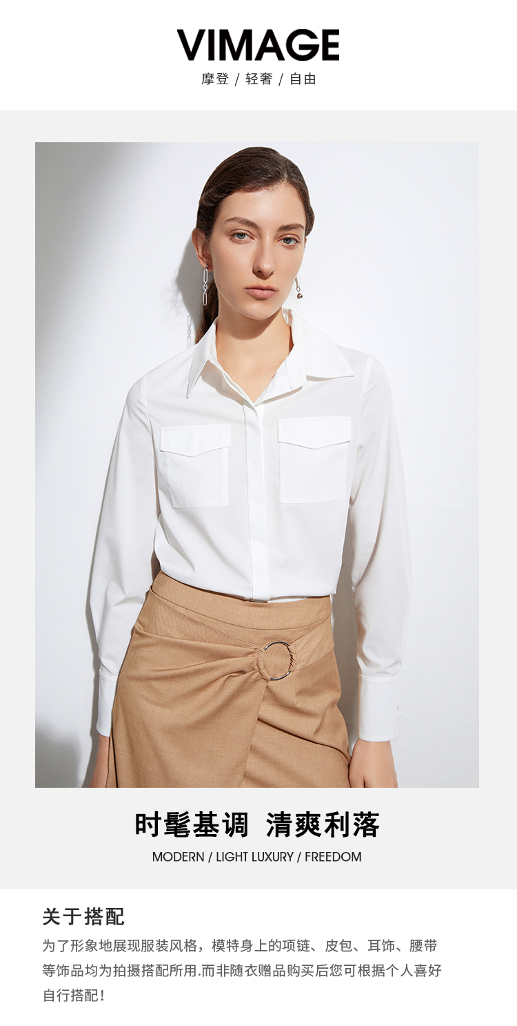 VIMAGE纬漫纪春季新款通勤气质简约直筒显瘦百搭衬衫上衣女VA2109115