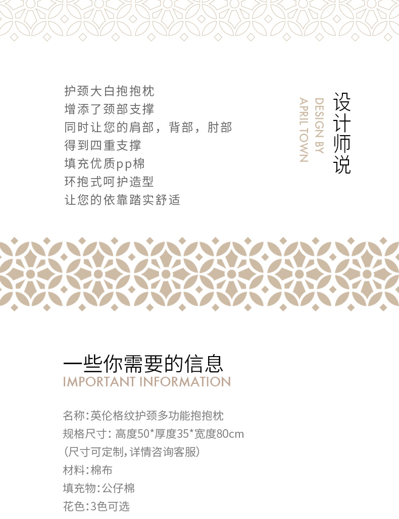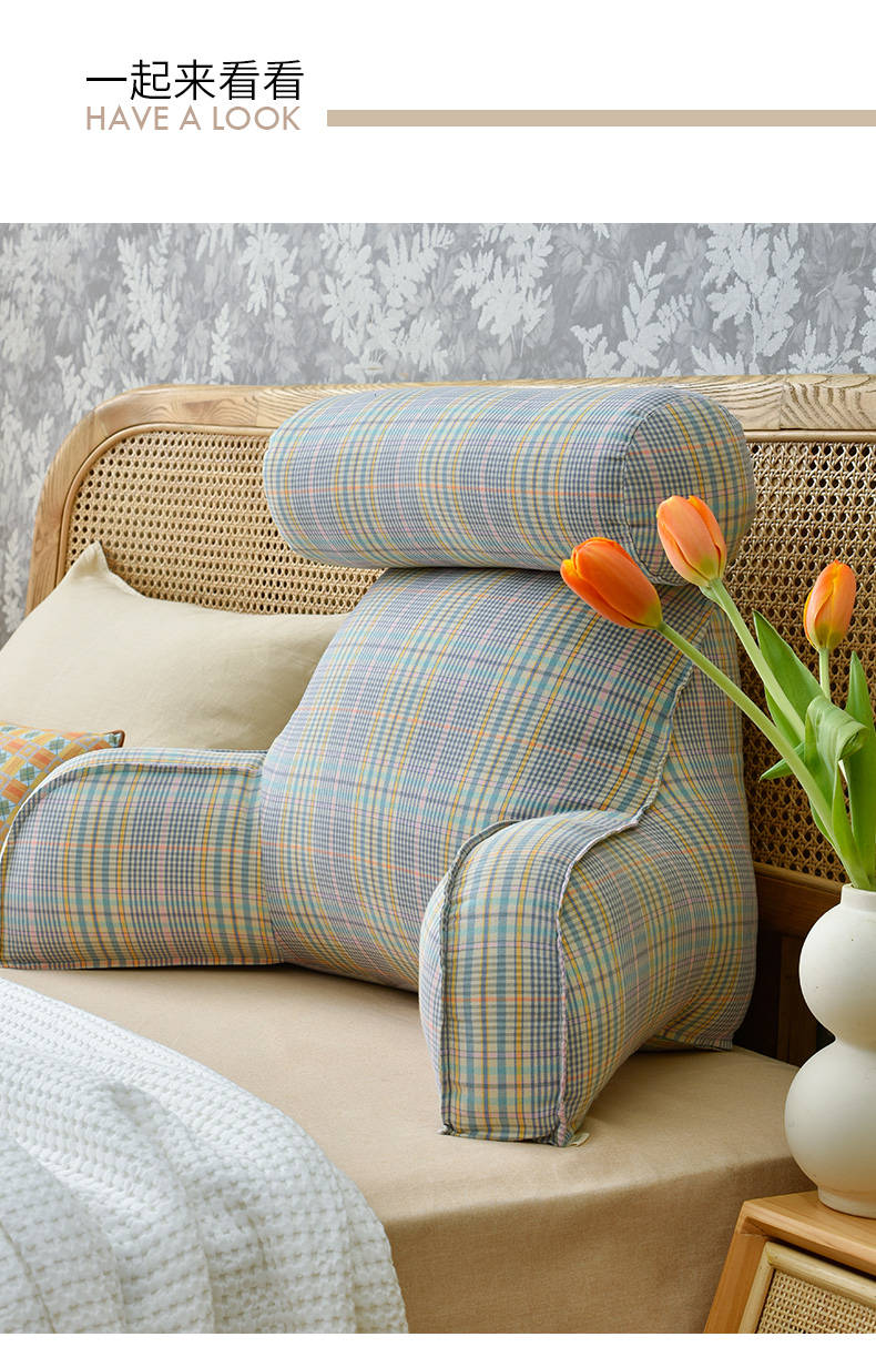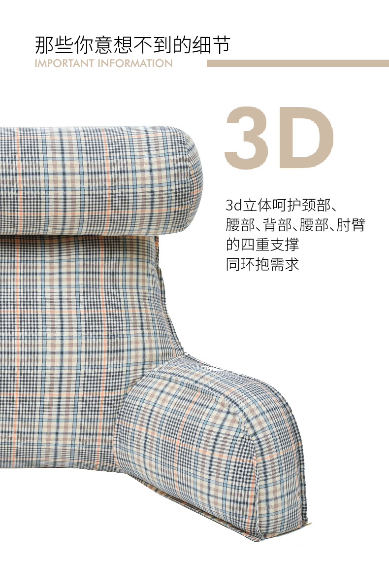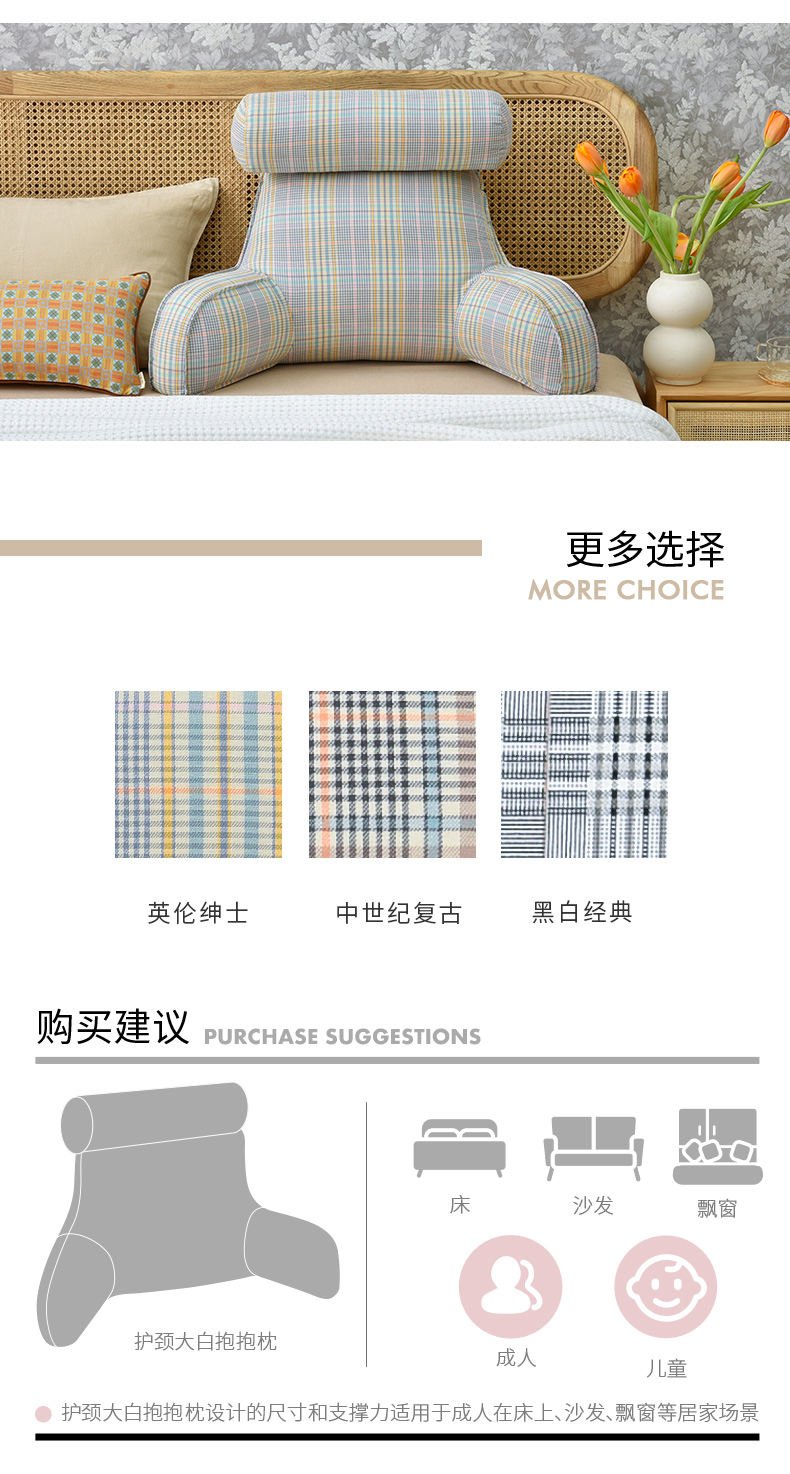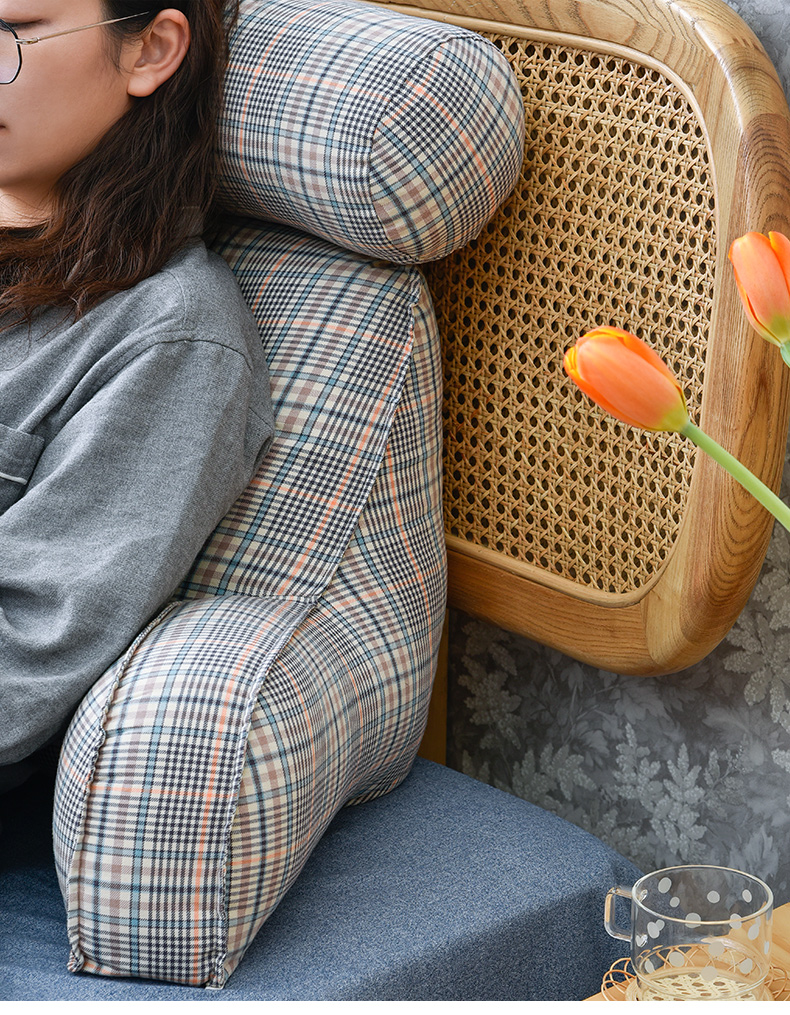 英伦格纹护颈多功能抱抱枕沙发腰靠