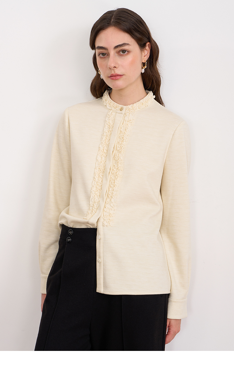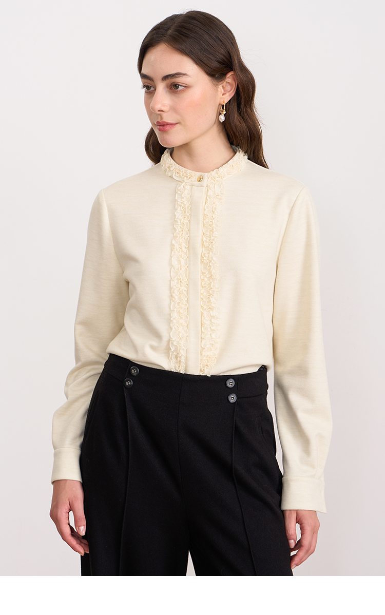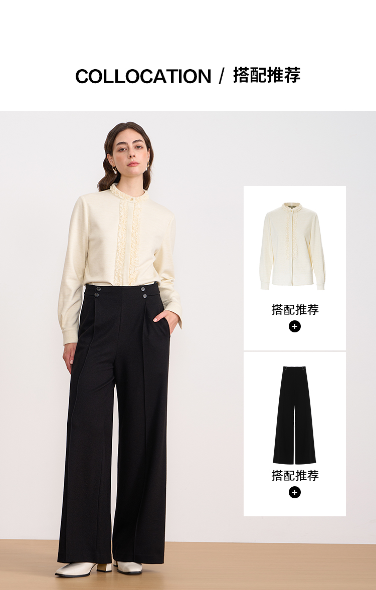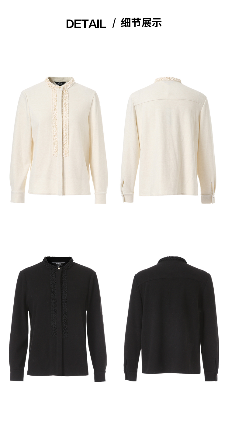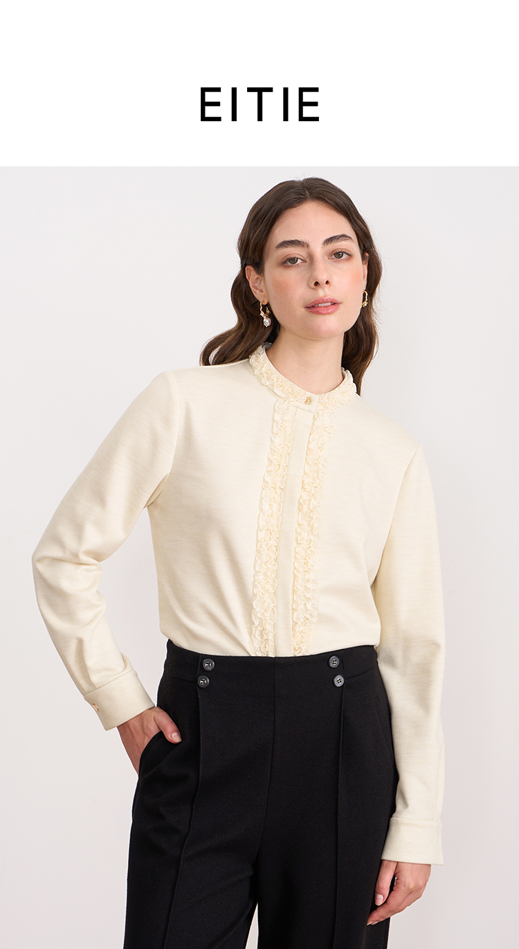 EITIE爱特爱复古花边气质立领纯色直筒显瘦衬衫上衣秋冬新款衬衣D2509903