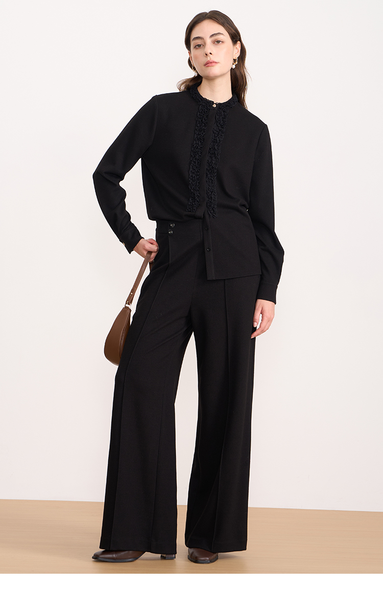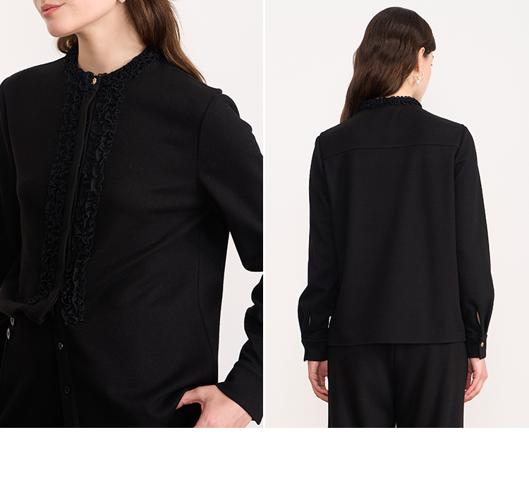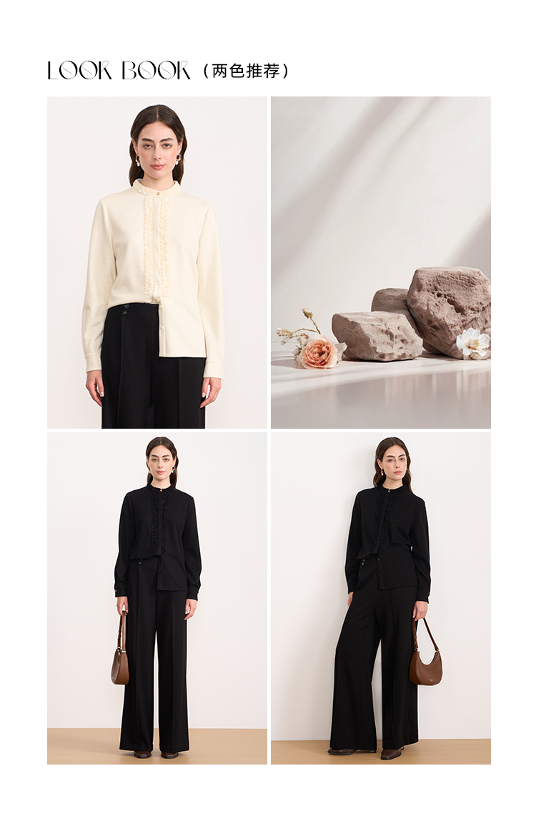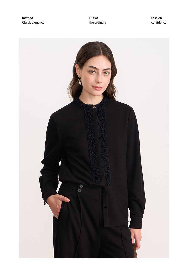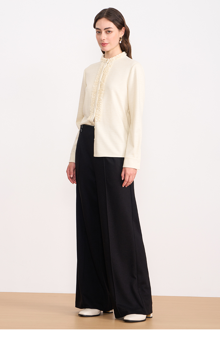 EITIE爱特爱复古花边气质立领纯色直筒显瘦衬衫上衣秋冬新款衬衣D2509903