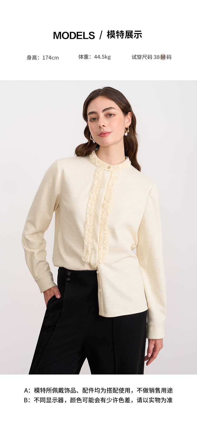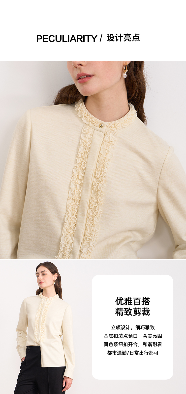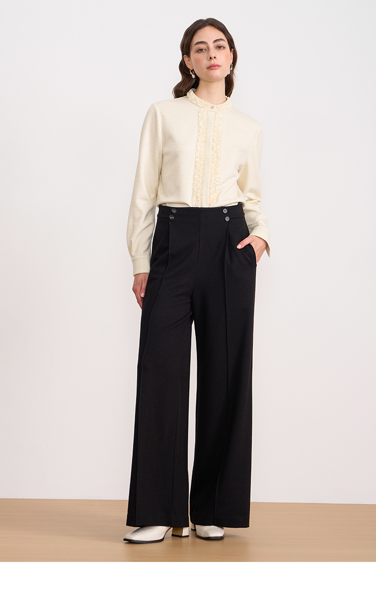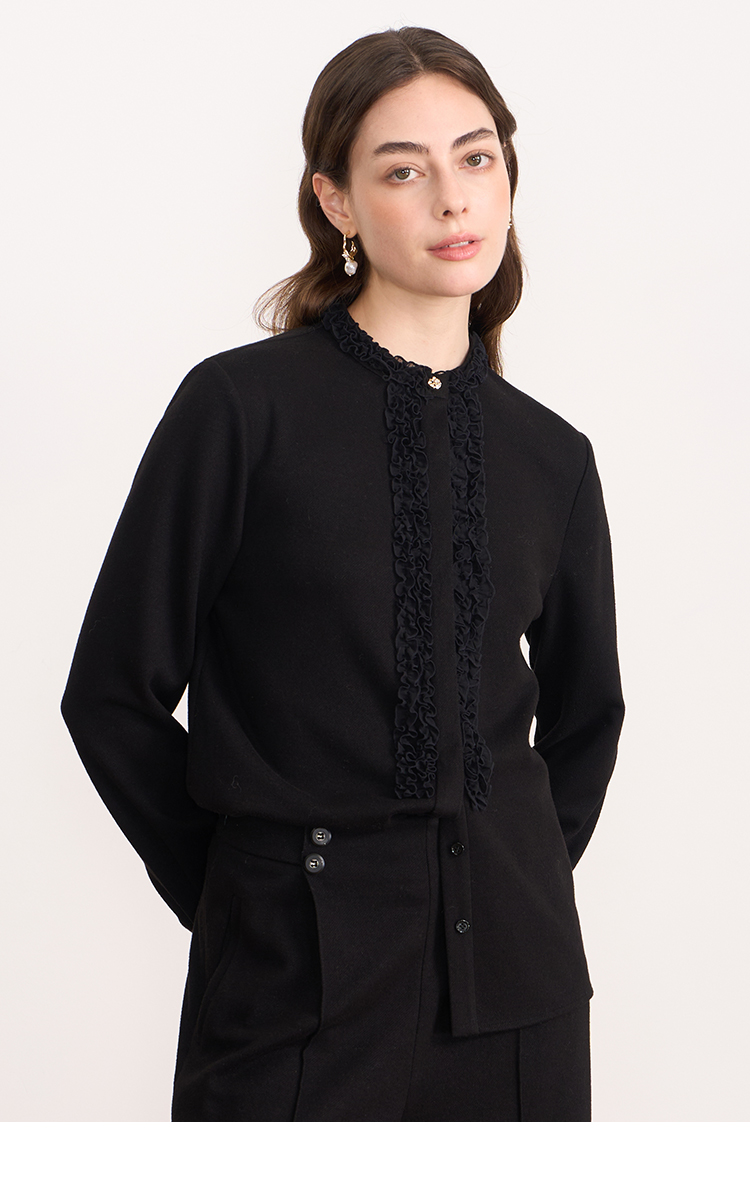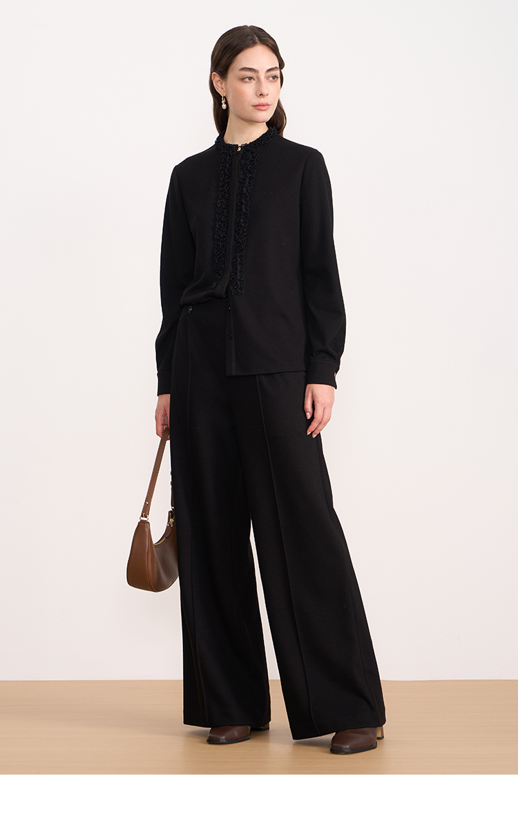 EITIE爱特爱复古花边气质立领纯色直筒显瘦衬衫上衣秋冬新款衬衣D2509903