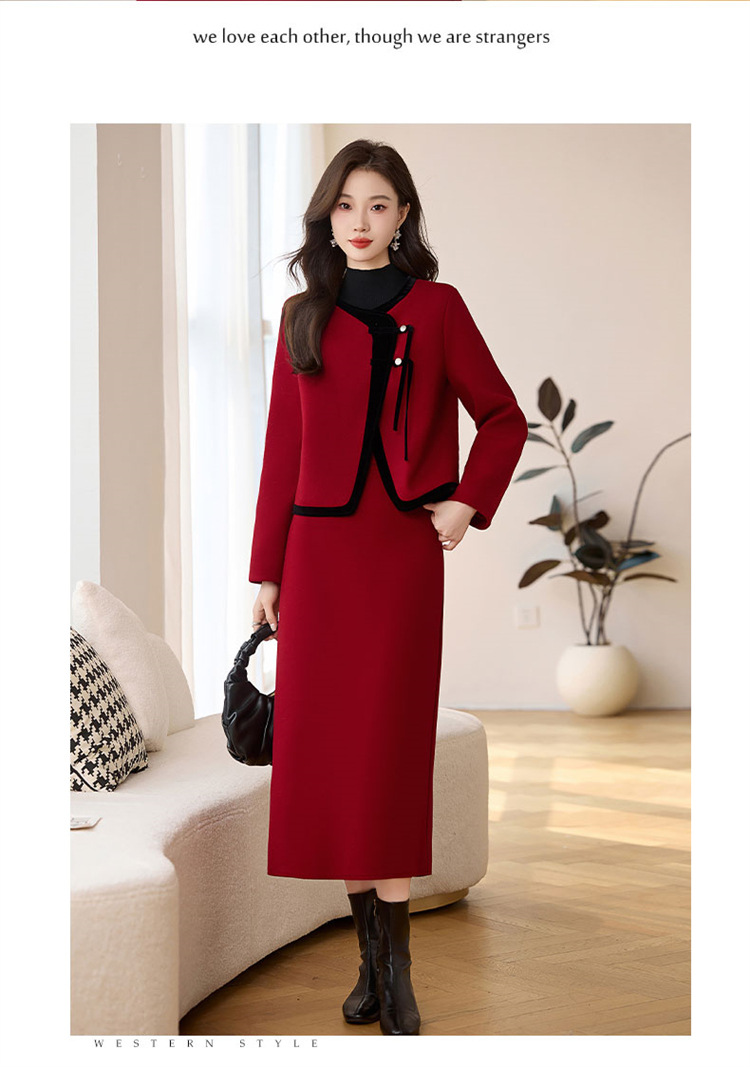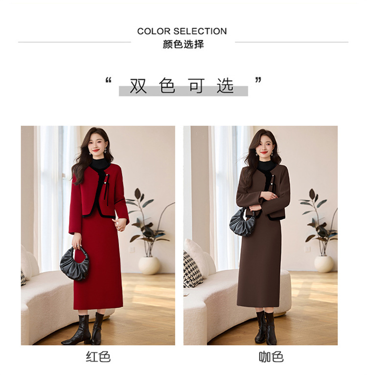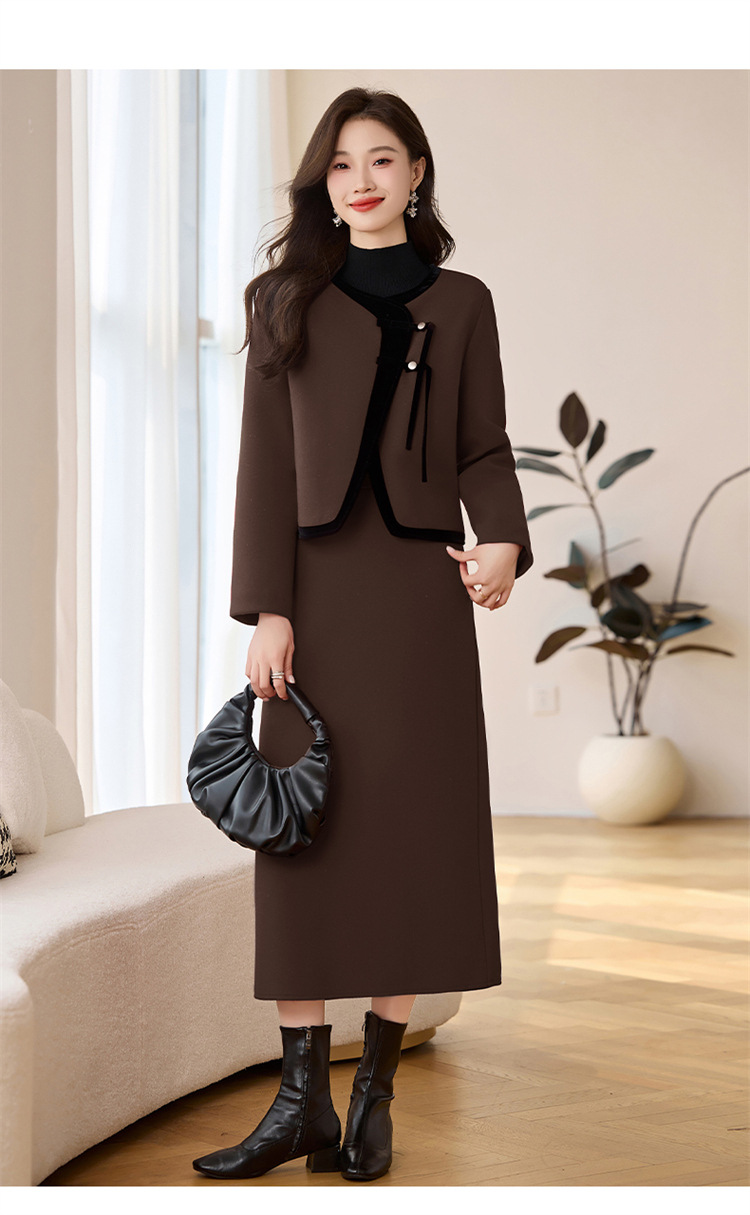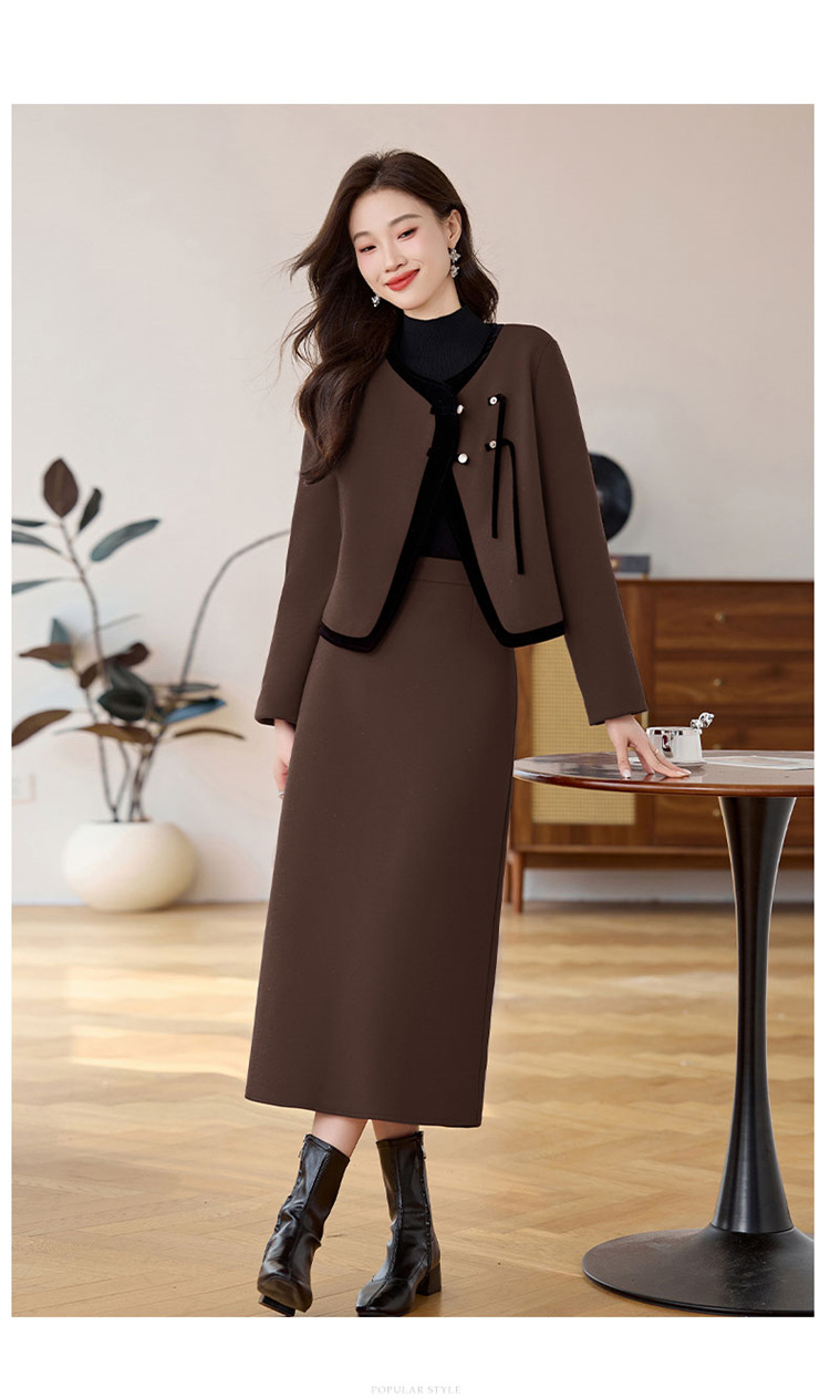 HR LSNY2470新中式复古夹棉套装气质名媛风半身裙两件套 商品图1