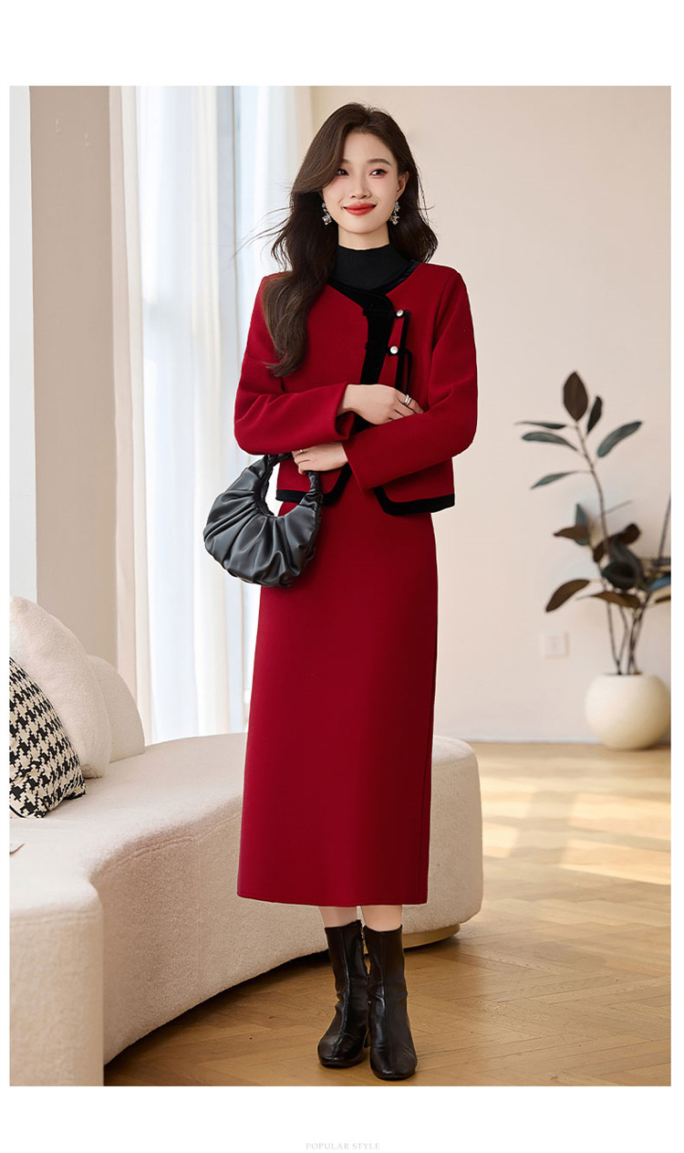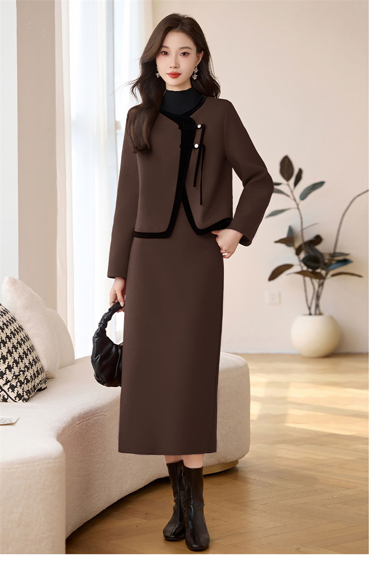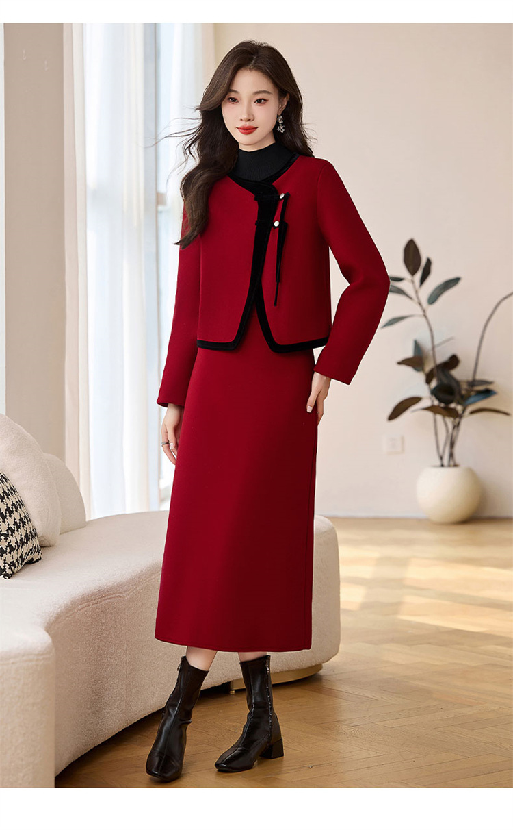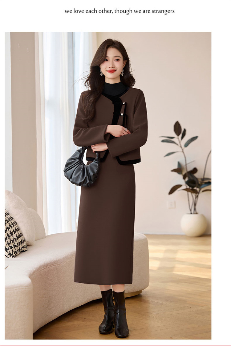 HR LSNY2470新中式复古夹棉套装气质名媛风半身裙两件套 商品图1