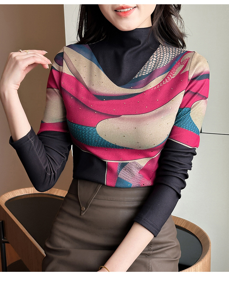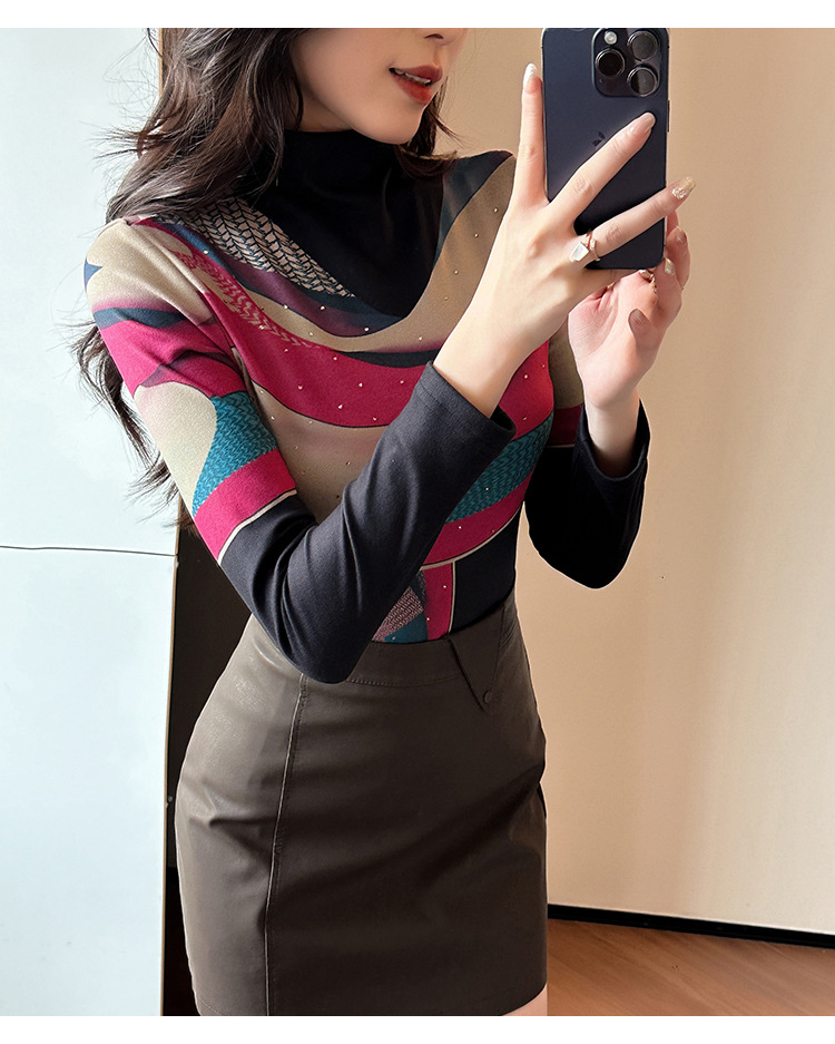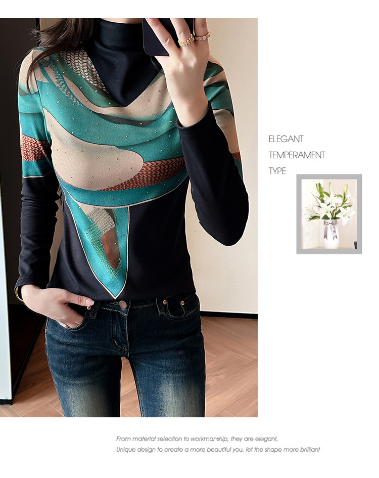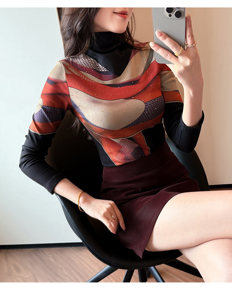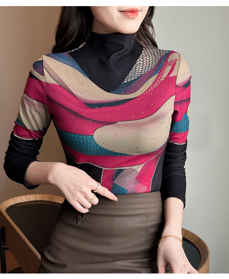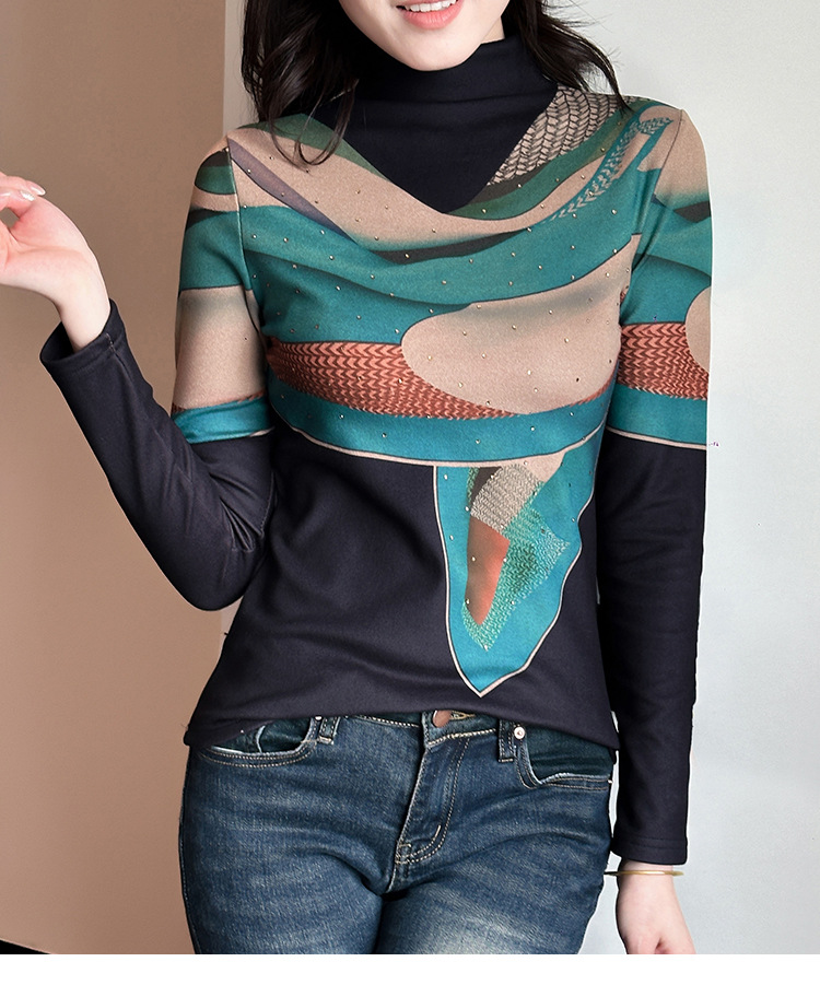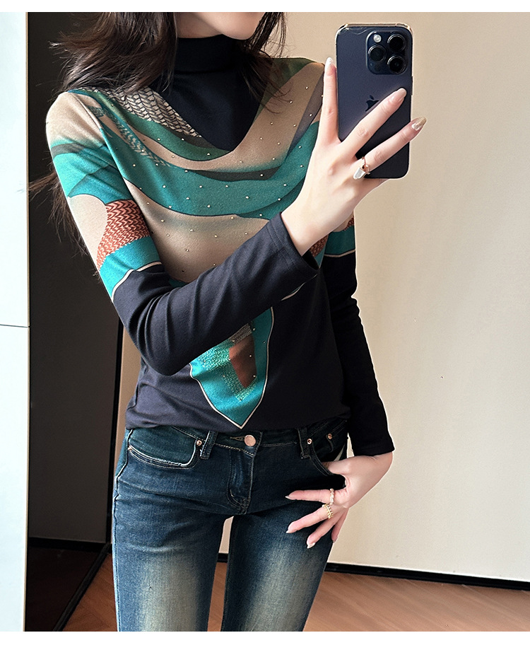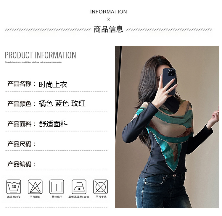 KQL 311H9178立体印花半高领百搭修身长袖加厚小衫