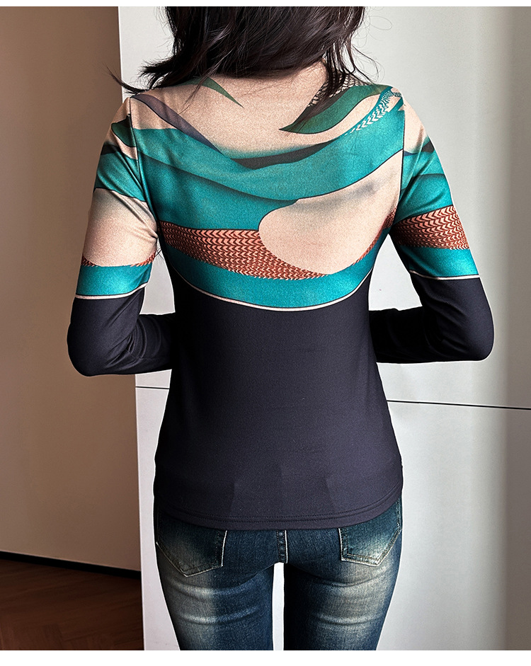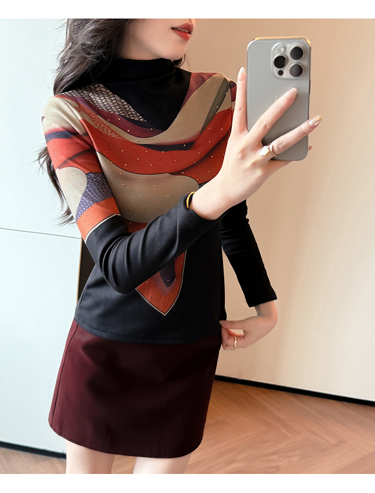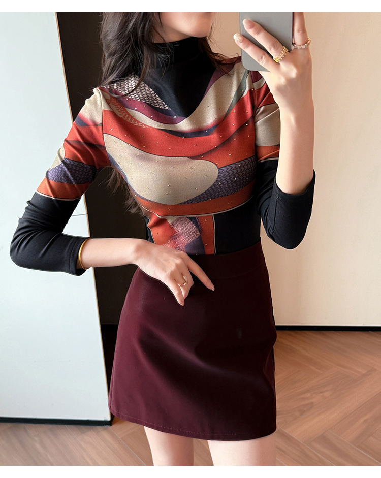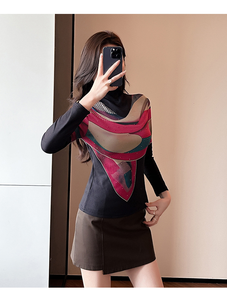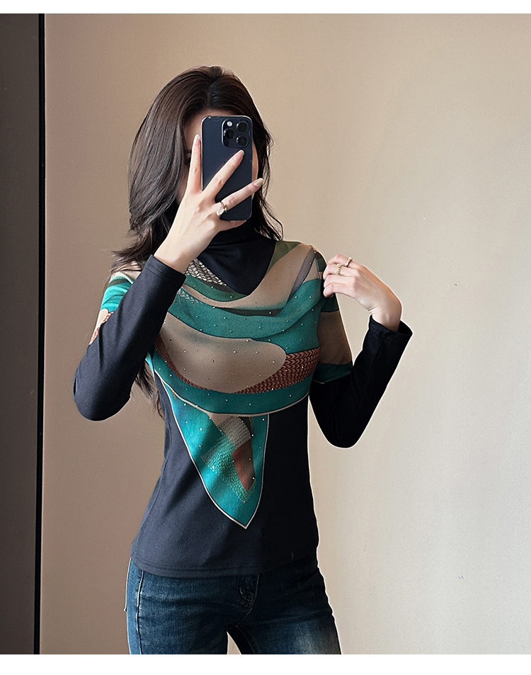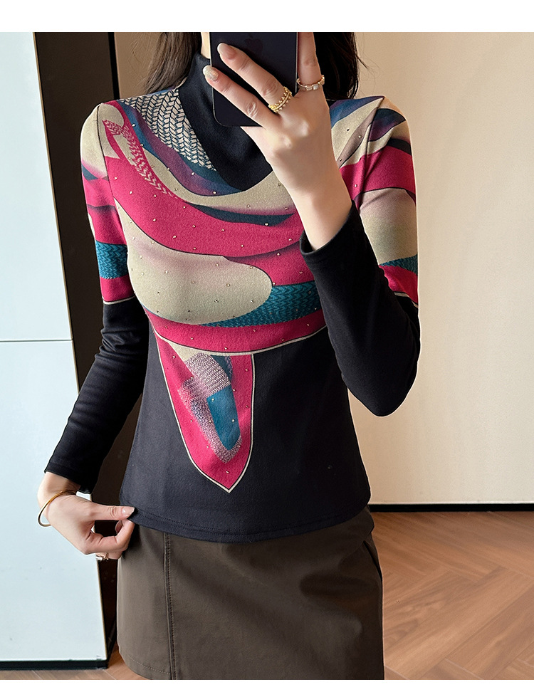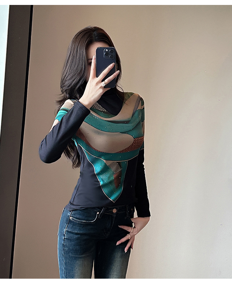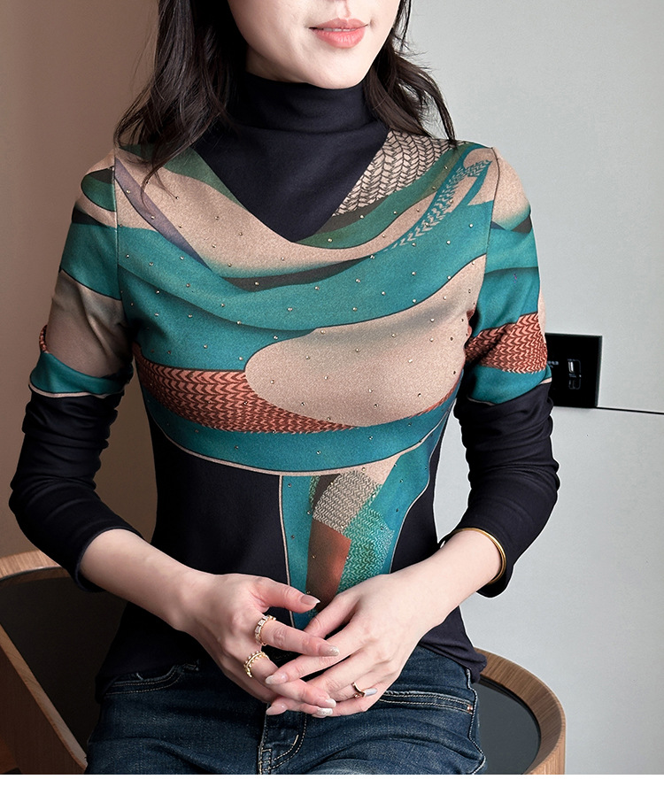 KQL 311H9178立体印花半高领百搭修身长袖加厚小衫