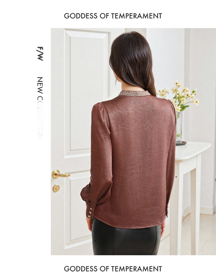KQLB43N1989 2025新款女轻奢高级感减龄洋气长袖上衣修身显瘦新中式衬衫