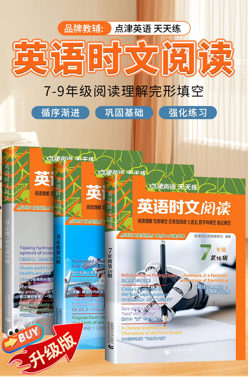 点津英语天天练英语时文阅读七八九年级中考第16辑第10辑第9辑可选初一二三任务型阅读理解与完型填空专项训练题语法填空