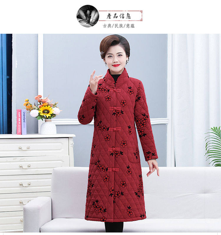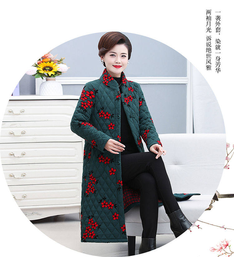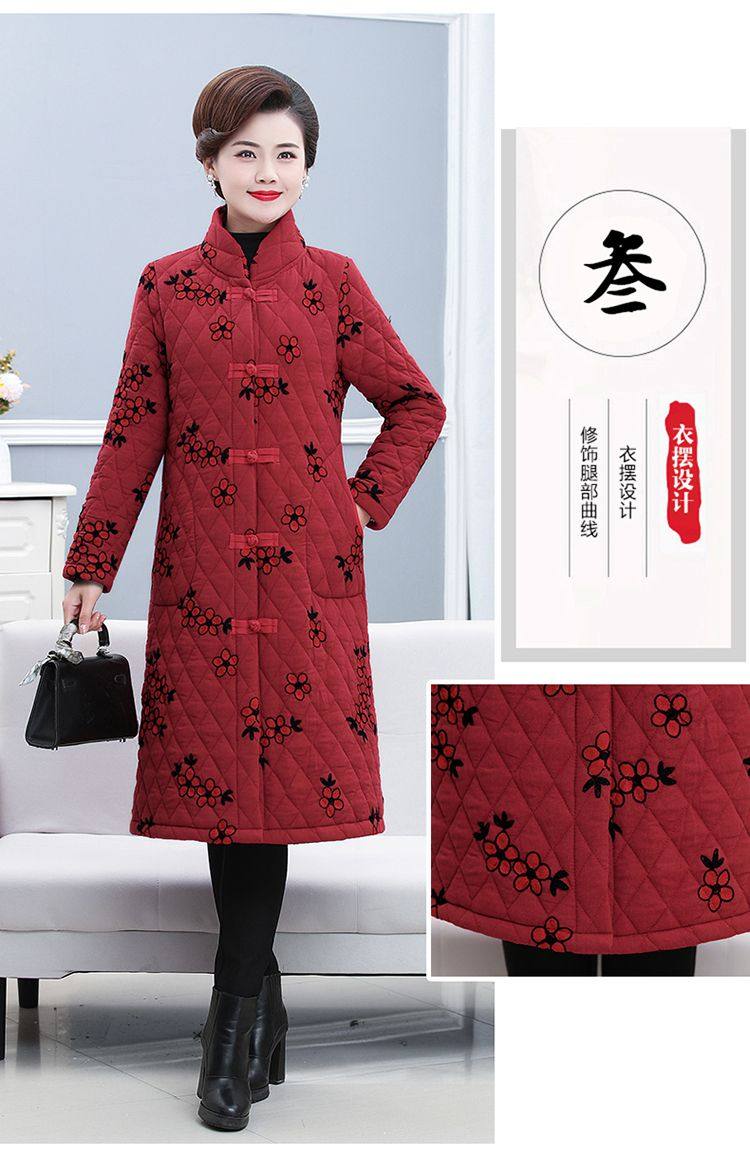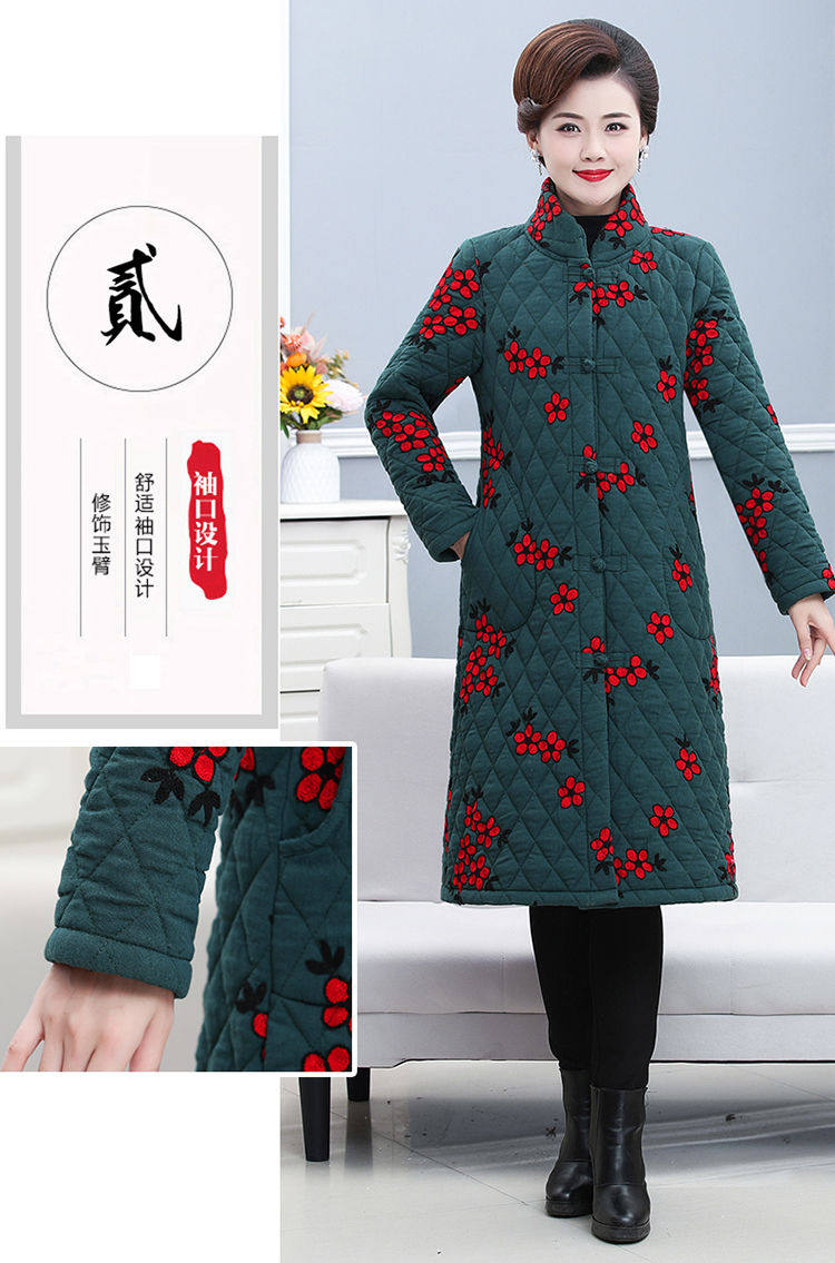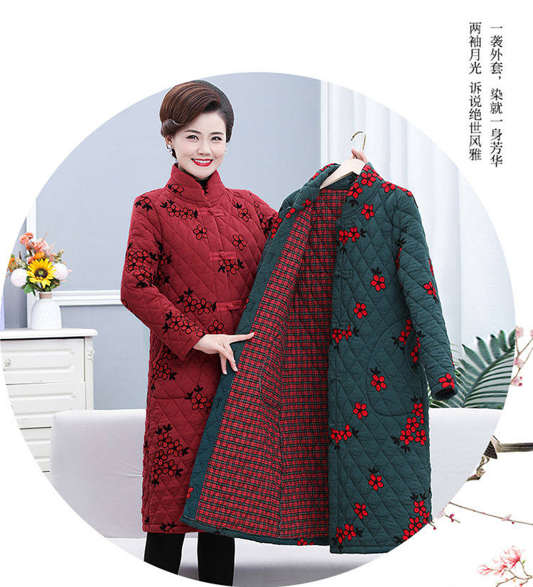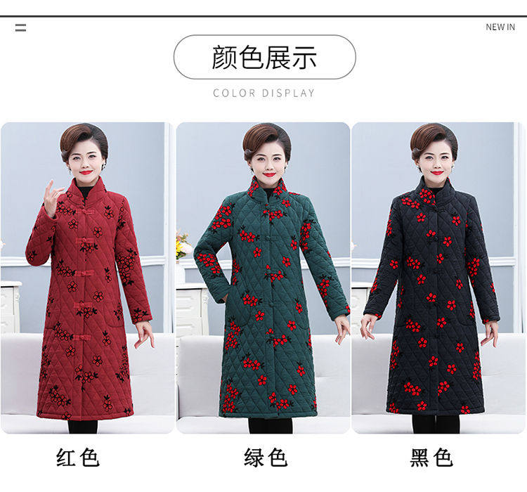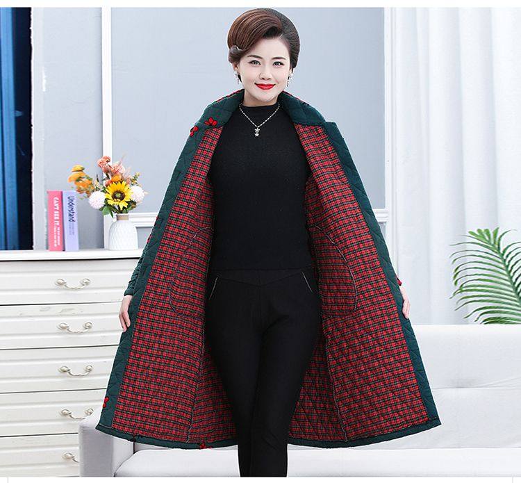 A8869中老年人冬装女妈妈棉袄长款过膝加绒加厚棉衣