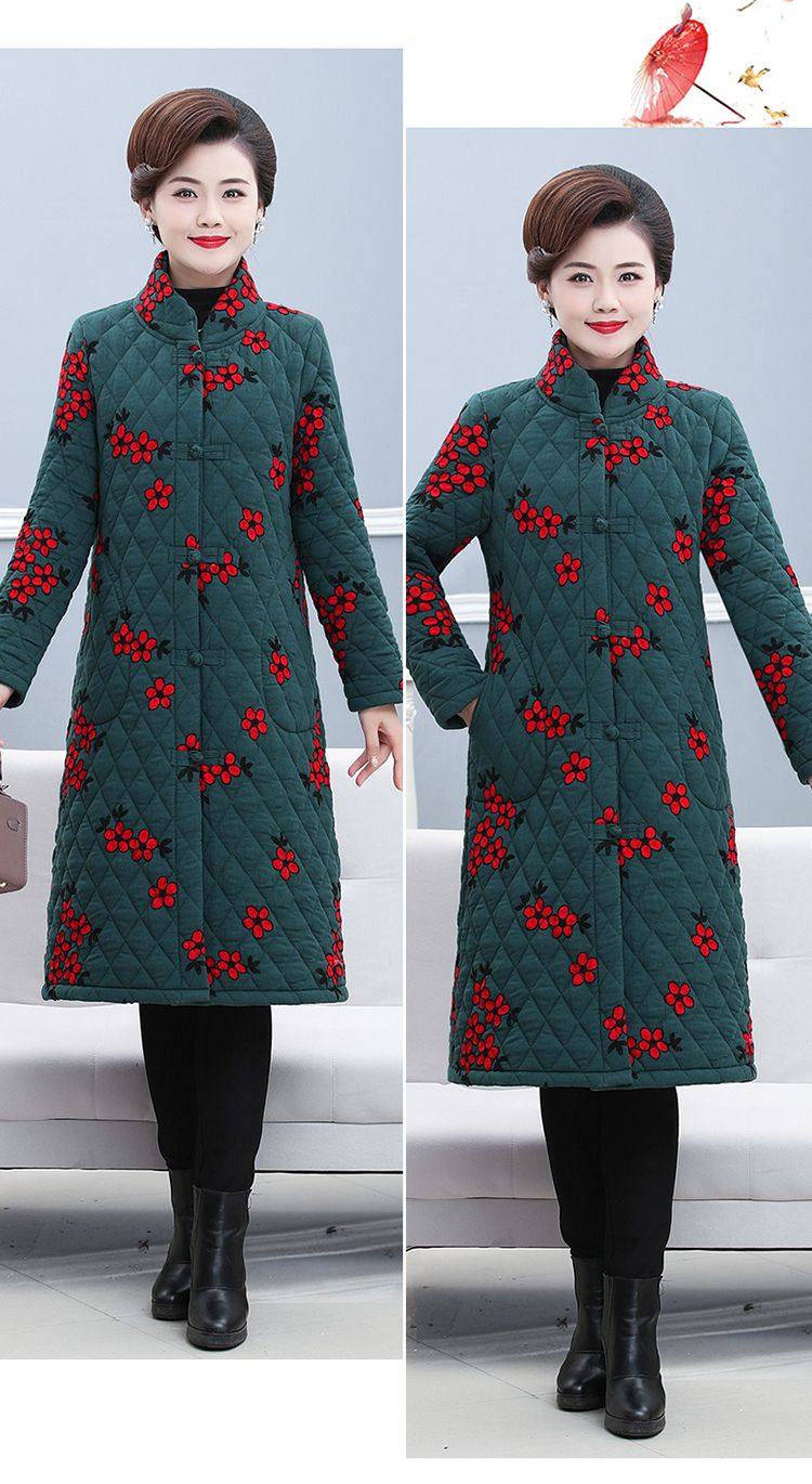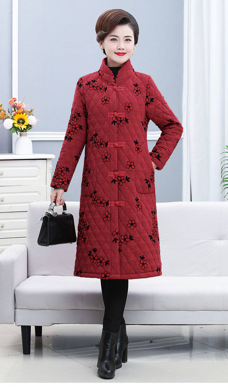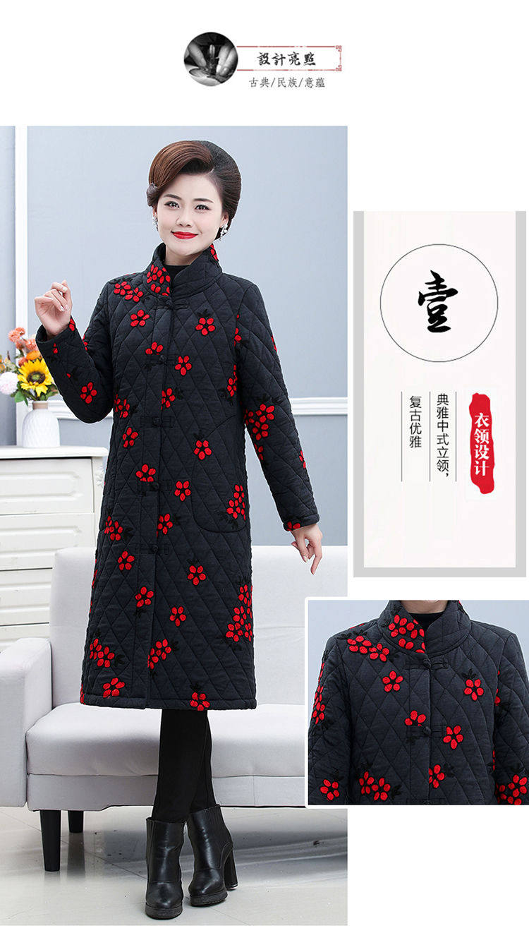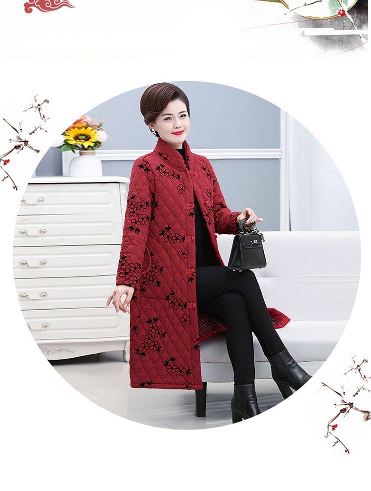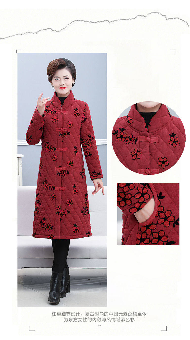 A8869中老年人冬装女妈妈棉袄长款过膝加绒加厚棉衣