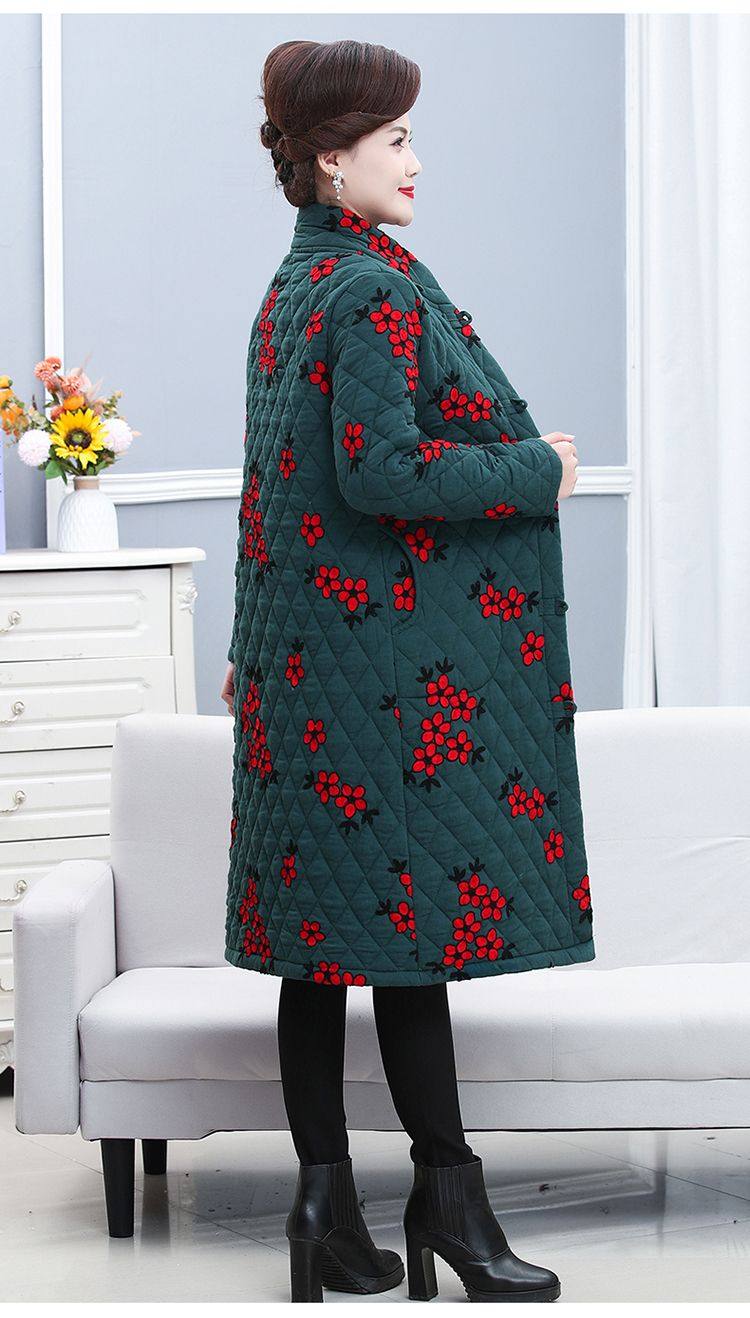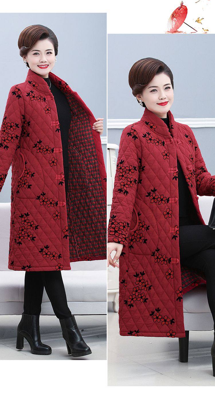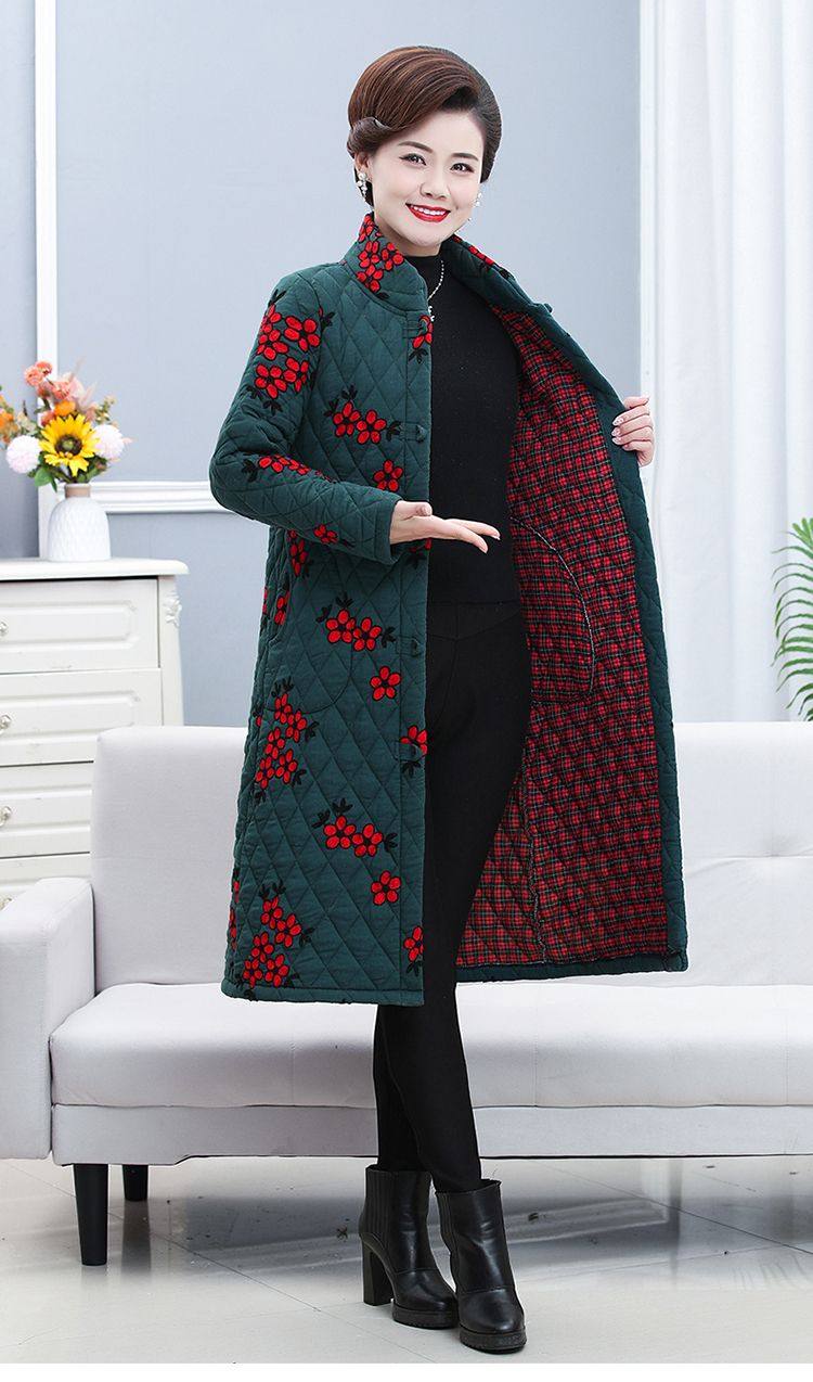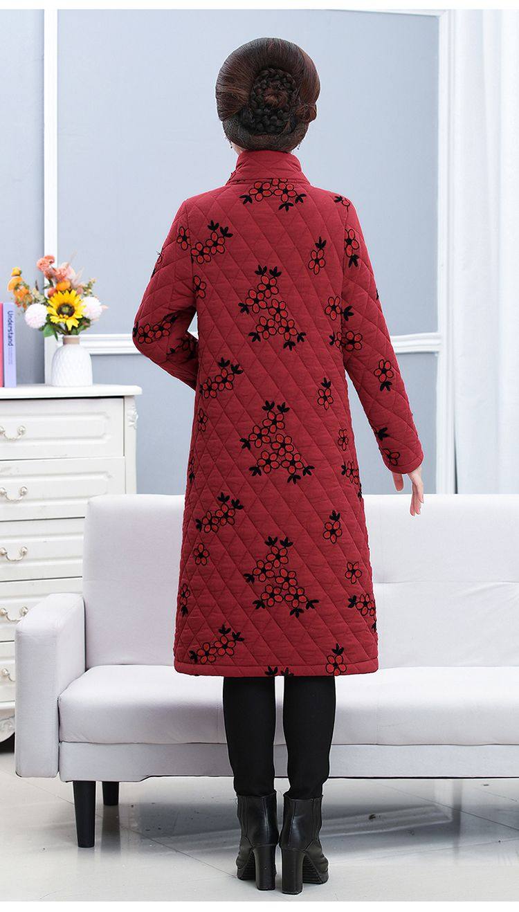 A8869中老年人冬装女妈妈棉袄长款过膝加绒加厚棉衣