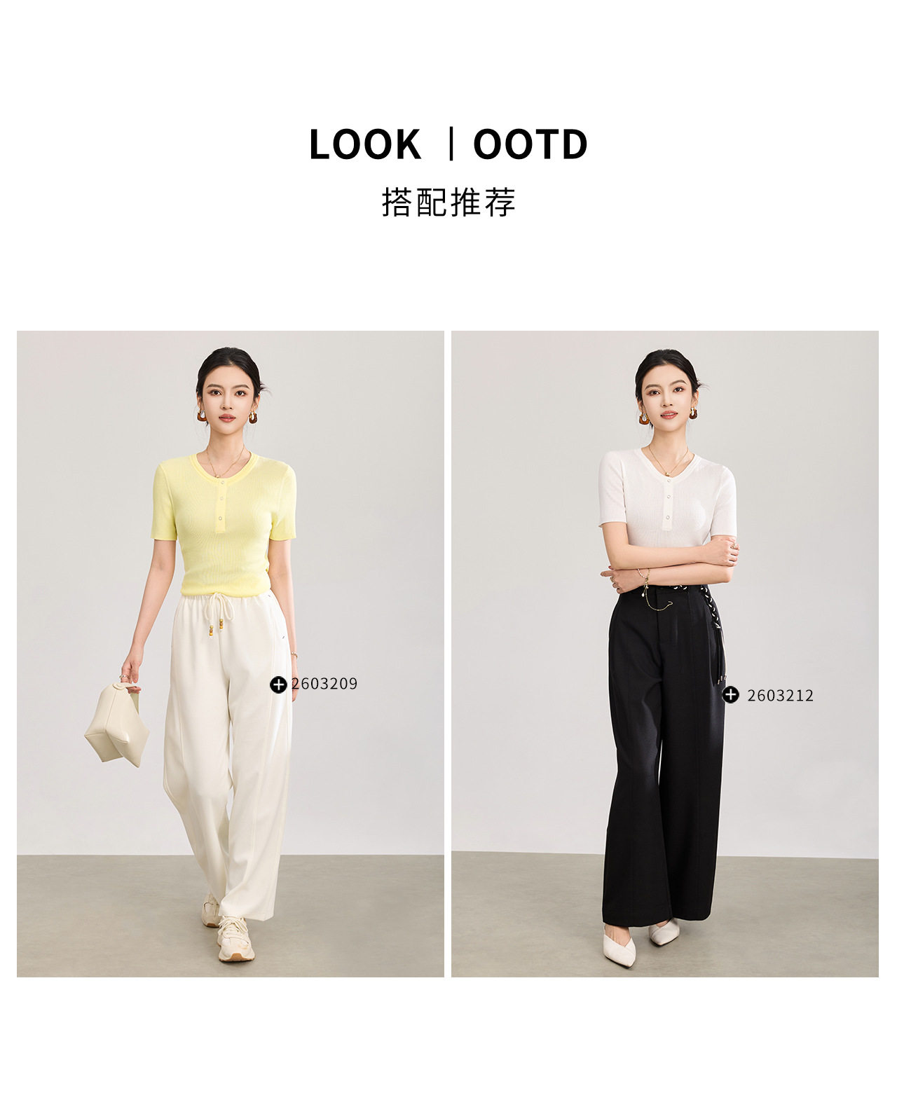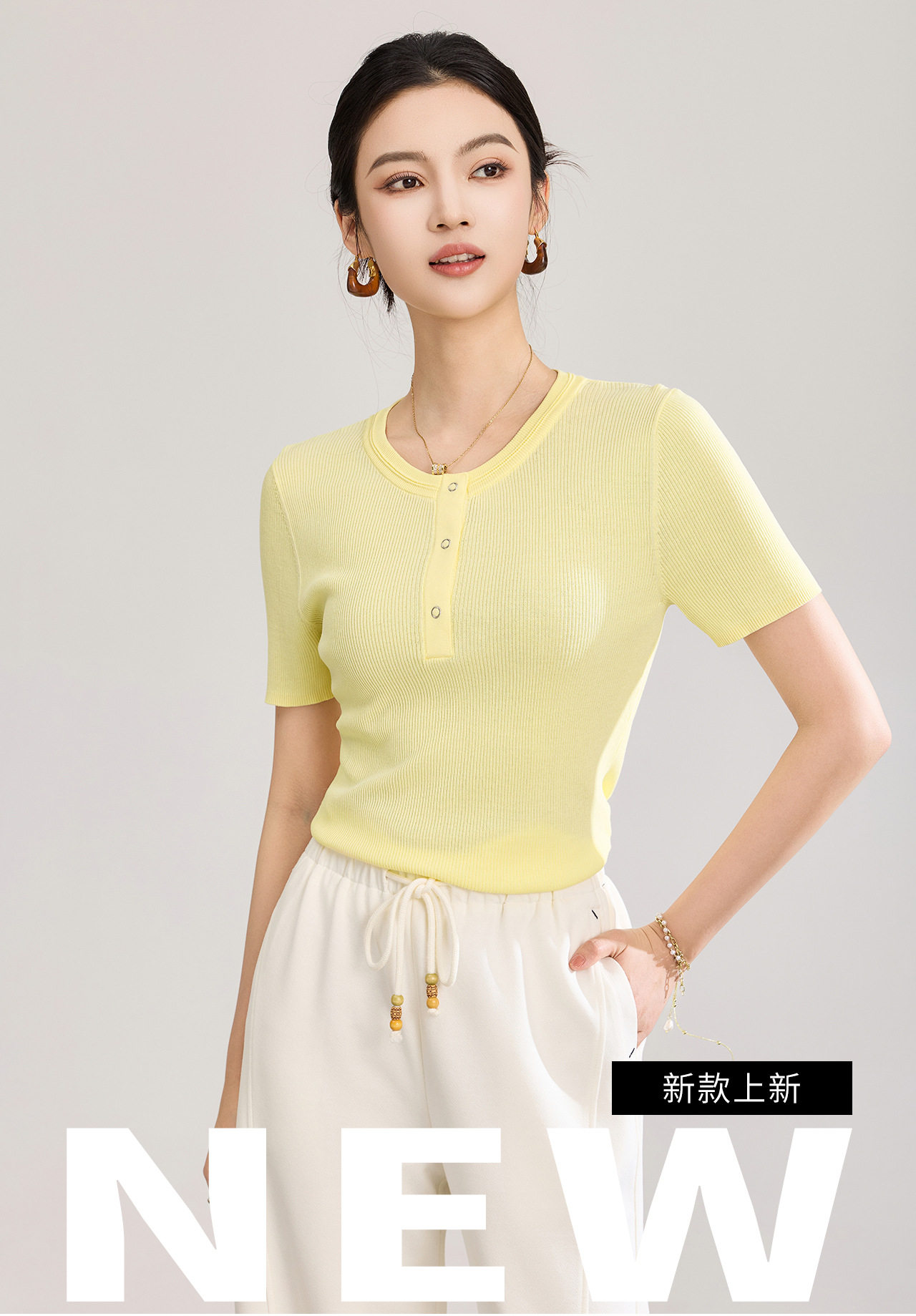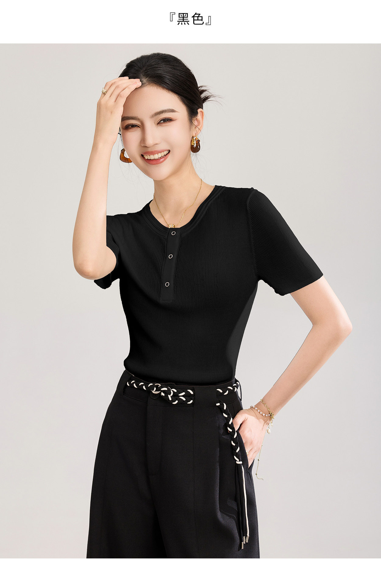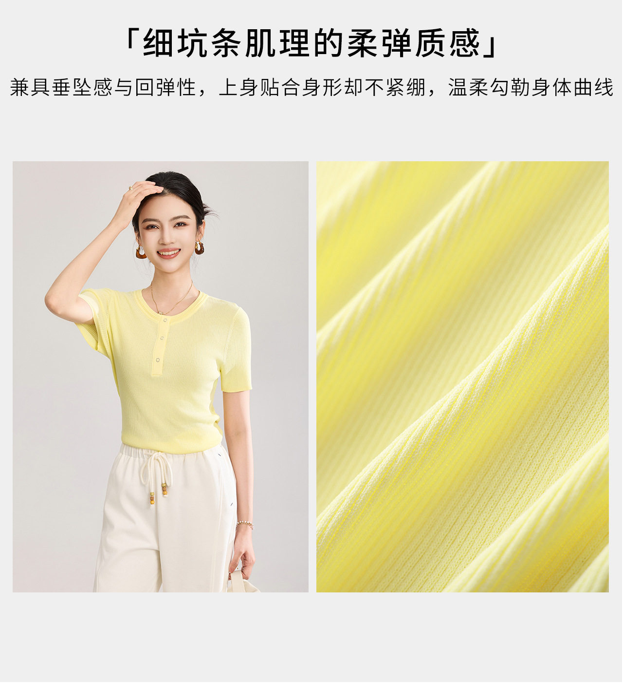 「高货wl」全新升级【铂金会员174/天猫229/差价55】(81736)洛诗琳气质双曲圈修身短袖2026夏季新款正肩显瘦针织T恤女