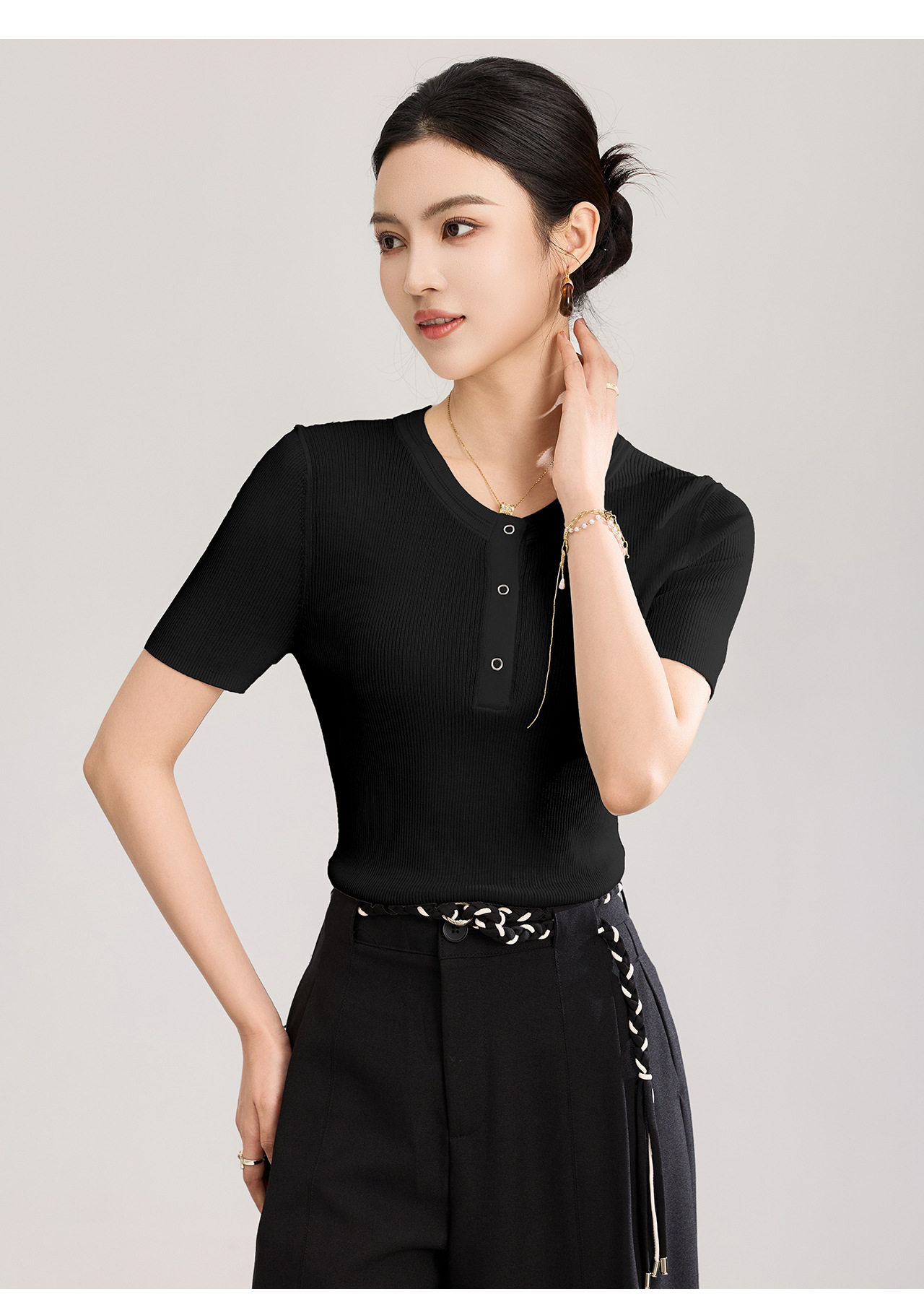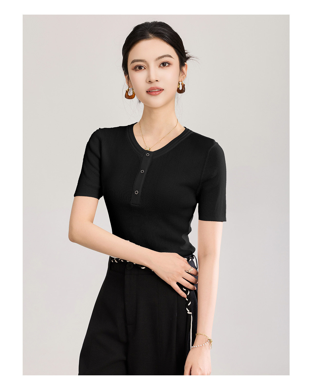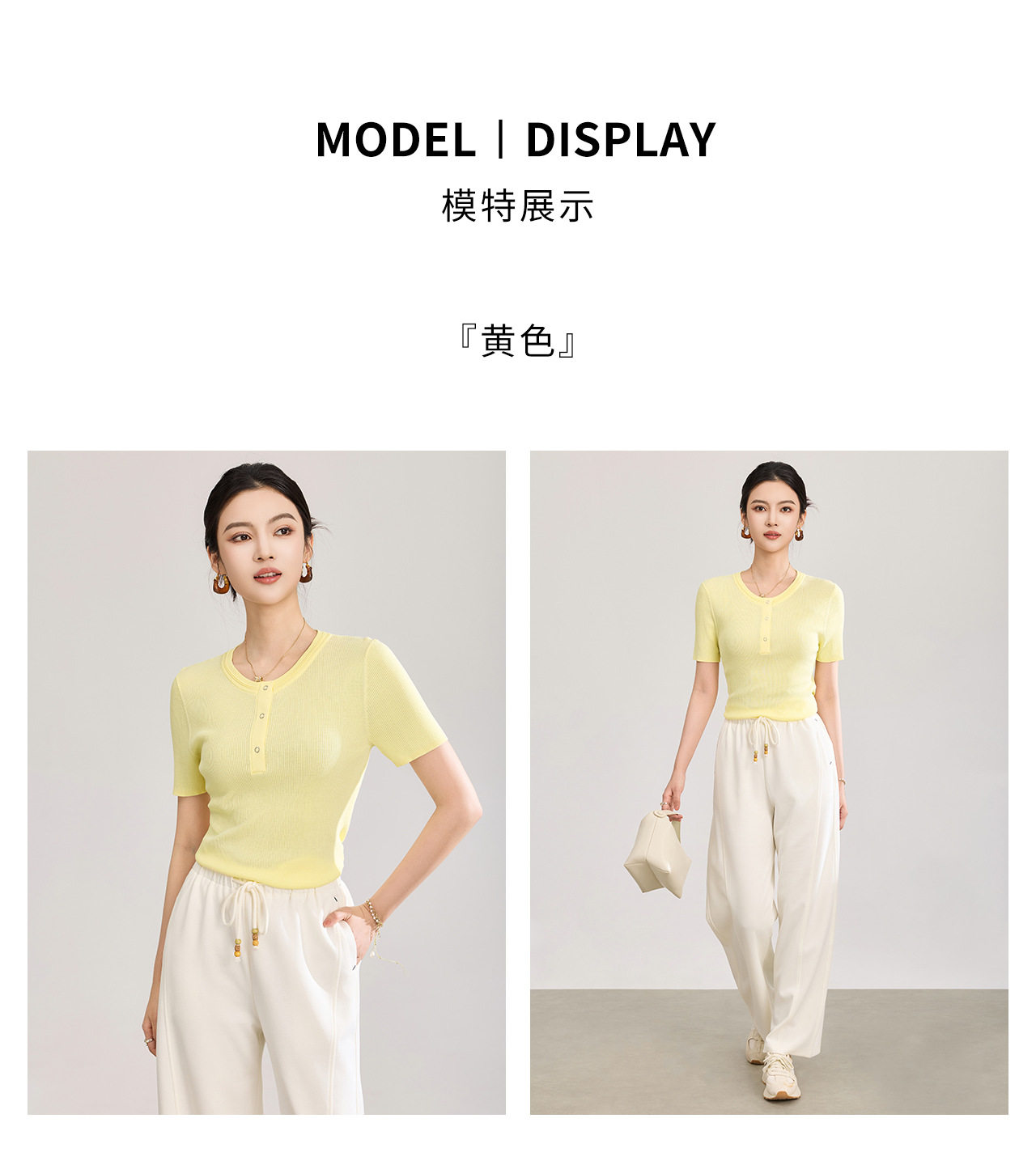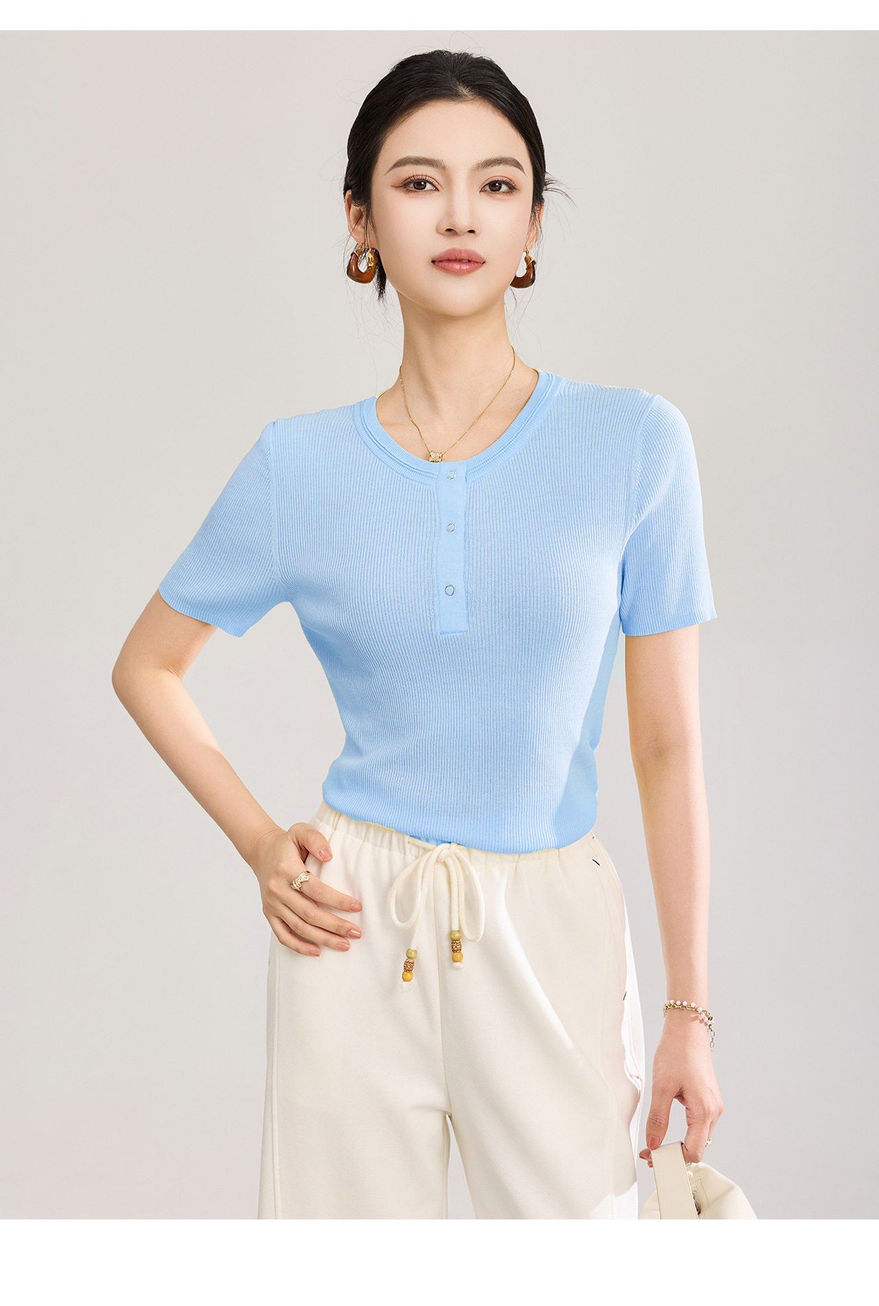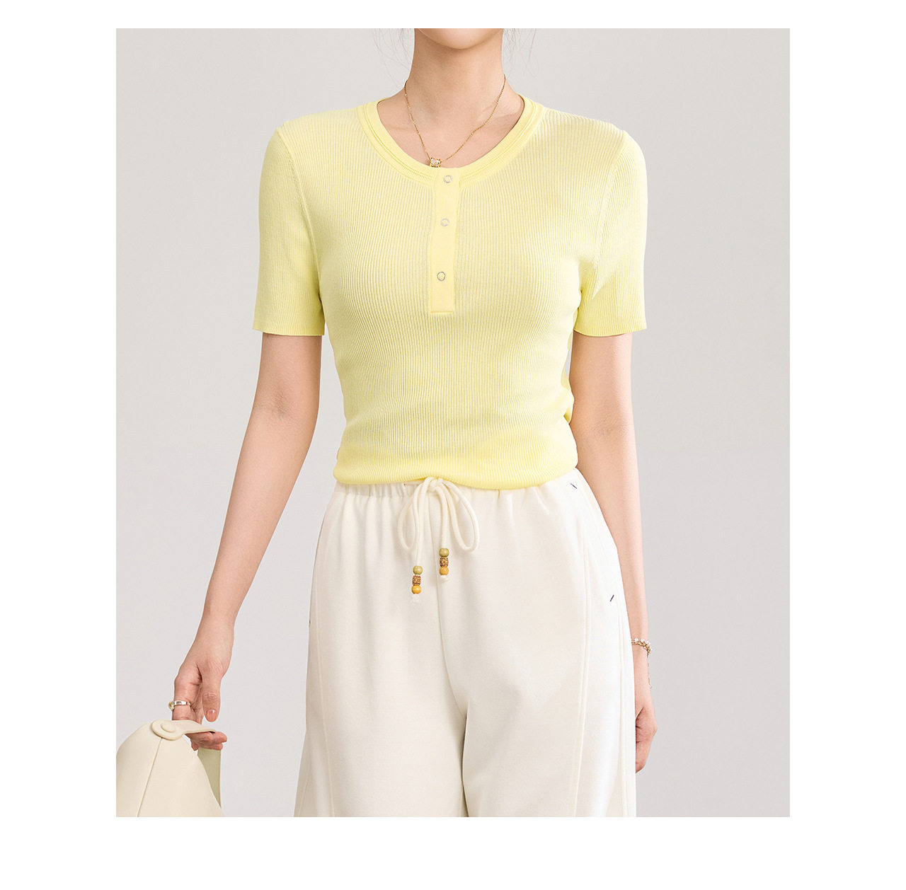 「高货wl」全新升级【铂金会员174/天猫229/差价55】(81736)洛诗琳气质双曲圈修身短袖2026夏季新款正肩显瘦针织T恤女