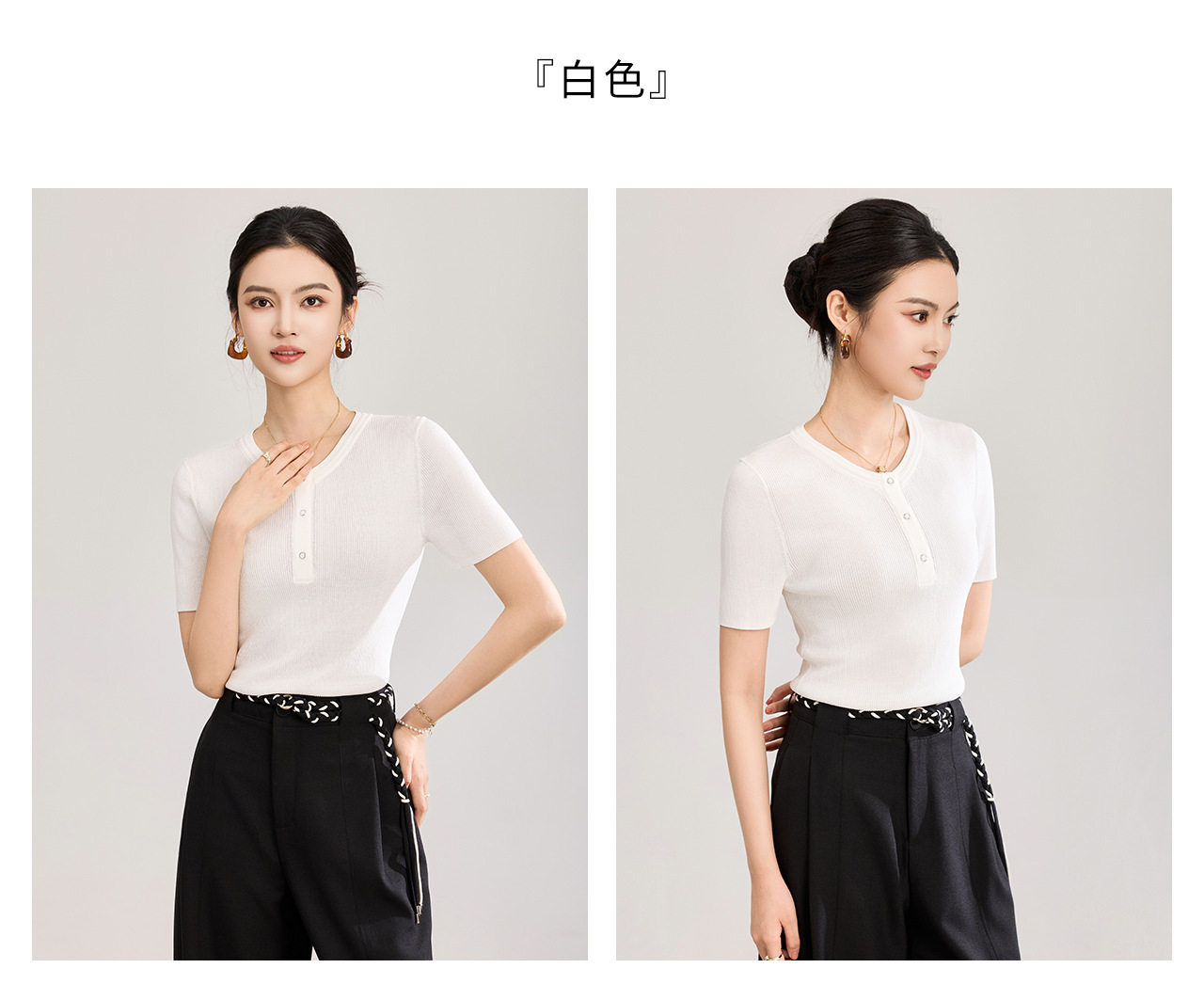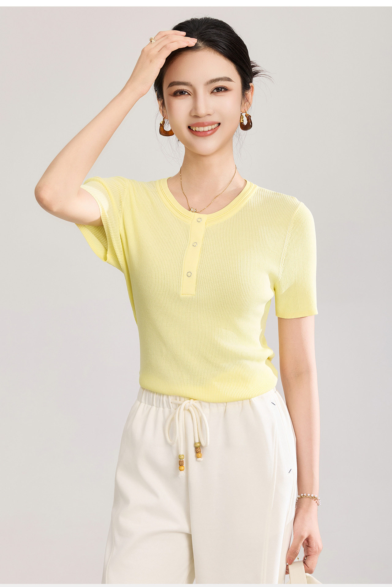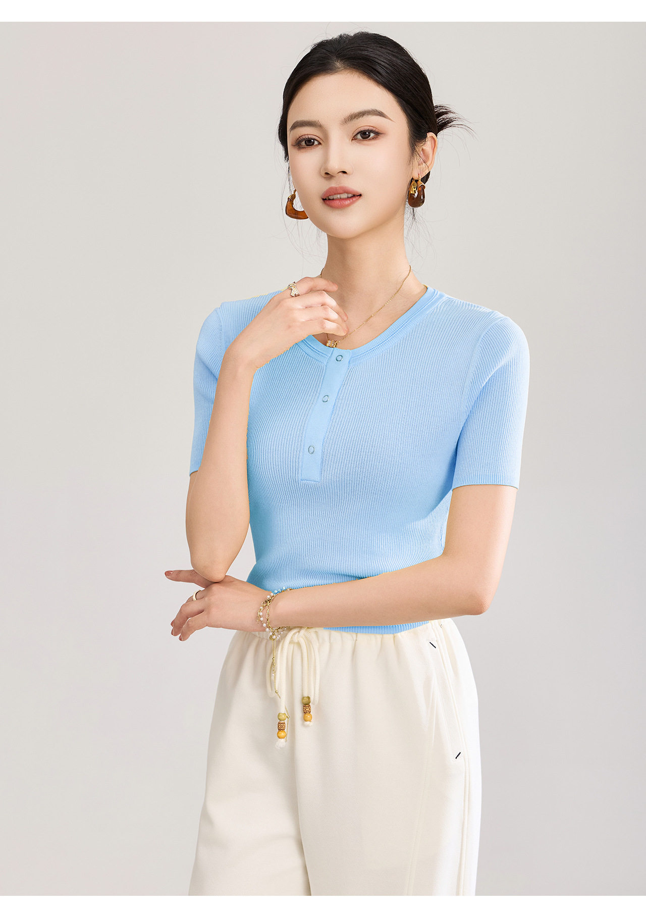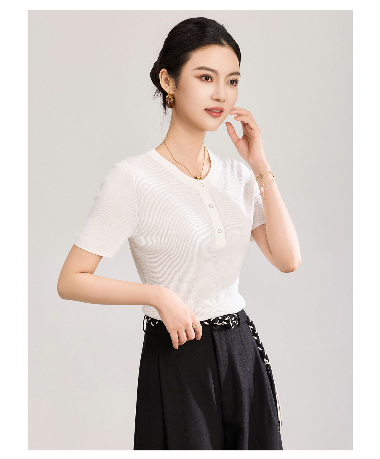 「高货wl」全新升级【铂金会员174/天猫229/差价55】(81736)洛诗琳气质双曲圈修身短袖2026夏季新款正肩显瘦针织T恤女