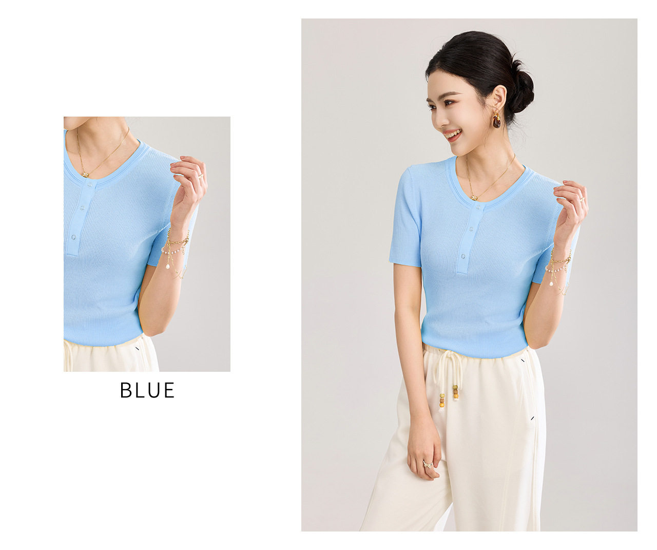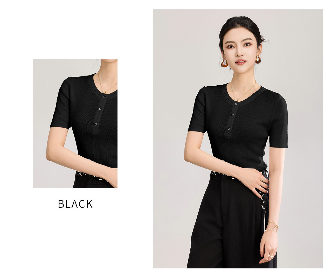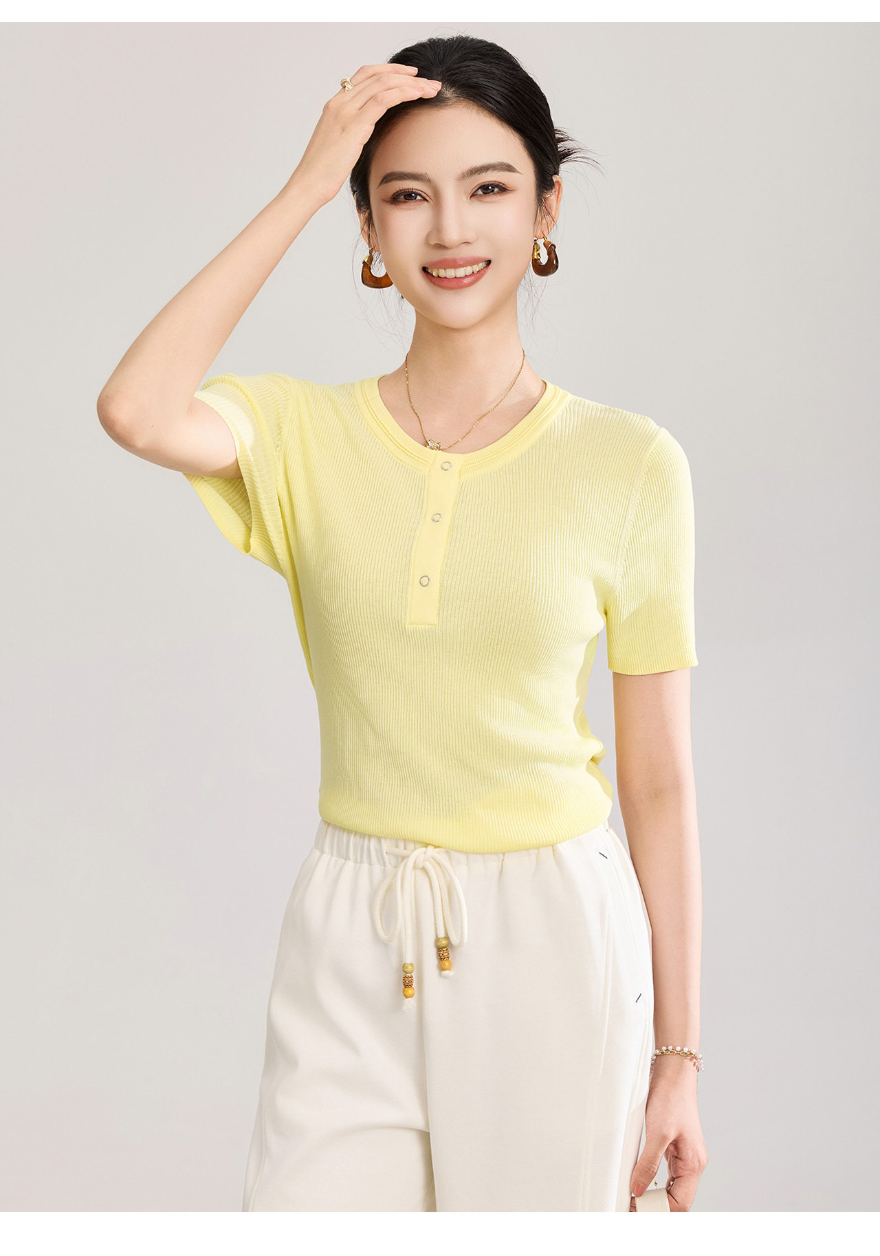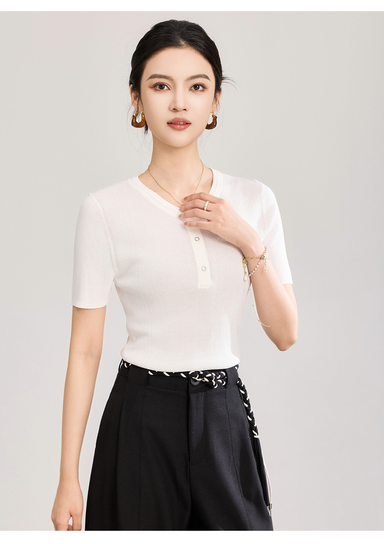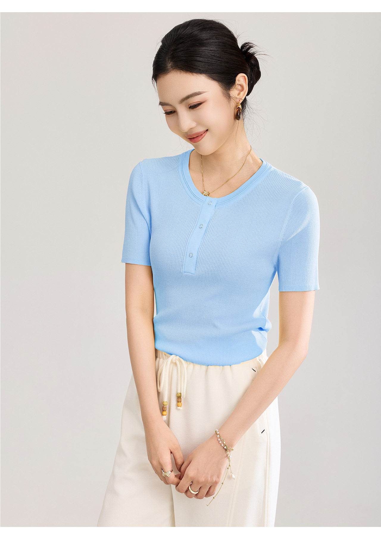 「高货wl」全新升级【铂金会员174/天猫229/差价55】(81736)洛诗琳气质双曲圈修身短袖2026夏季新款正肩显瘦针织T恤女
