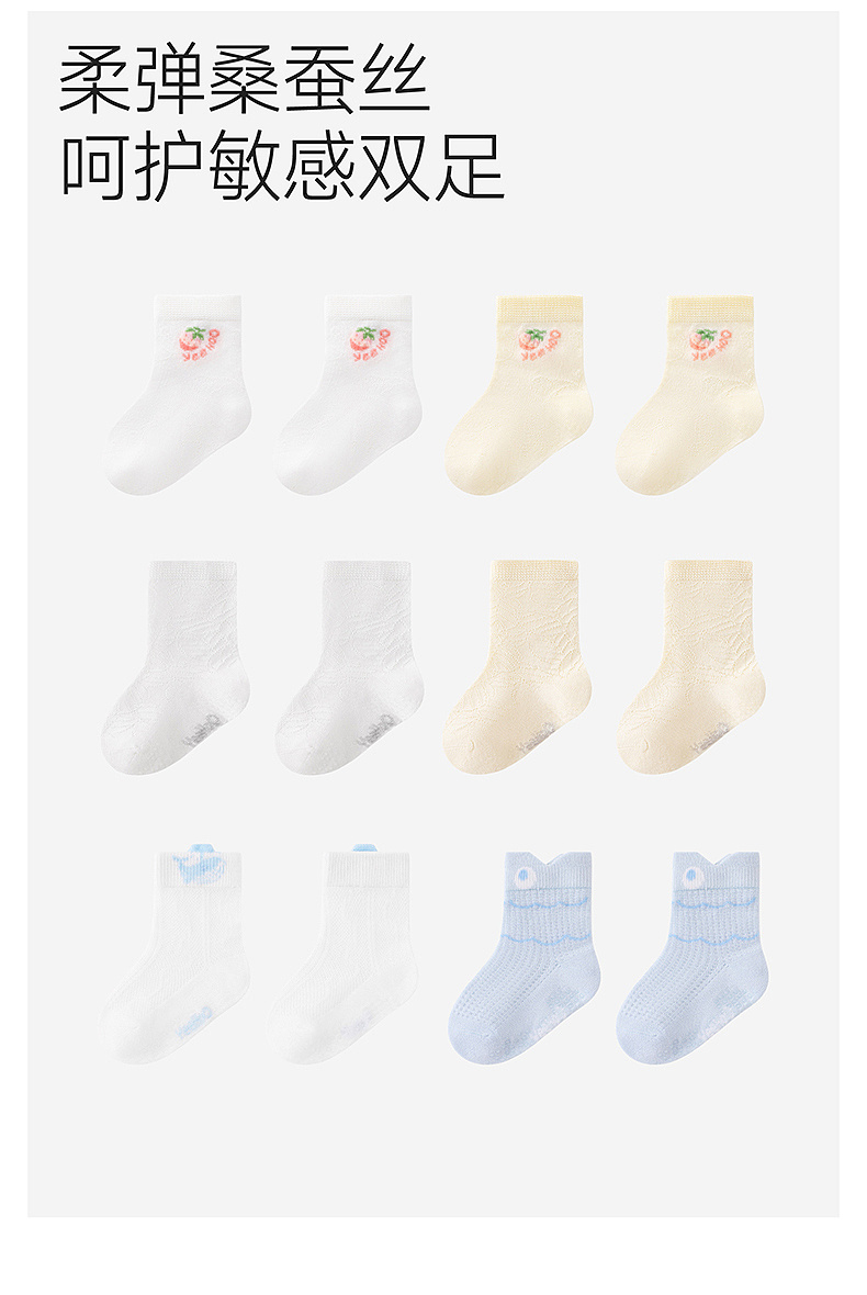 【商场同款】英氏儿童袜子男女童春夏透气短袜桑蚕丝10A抗菌2双装