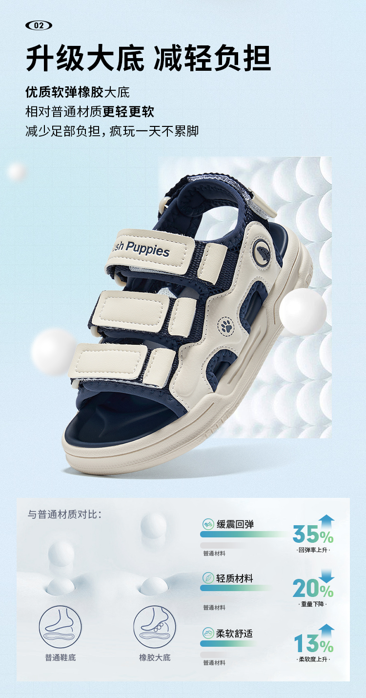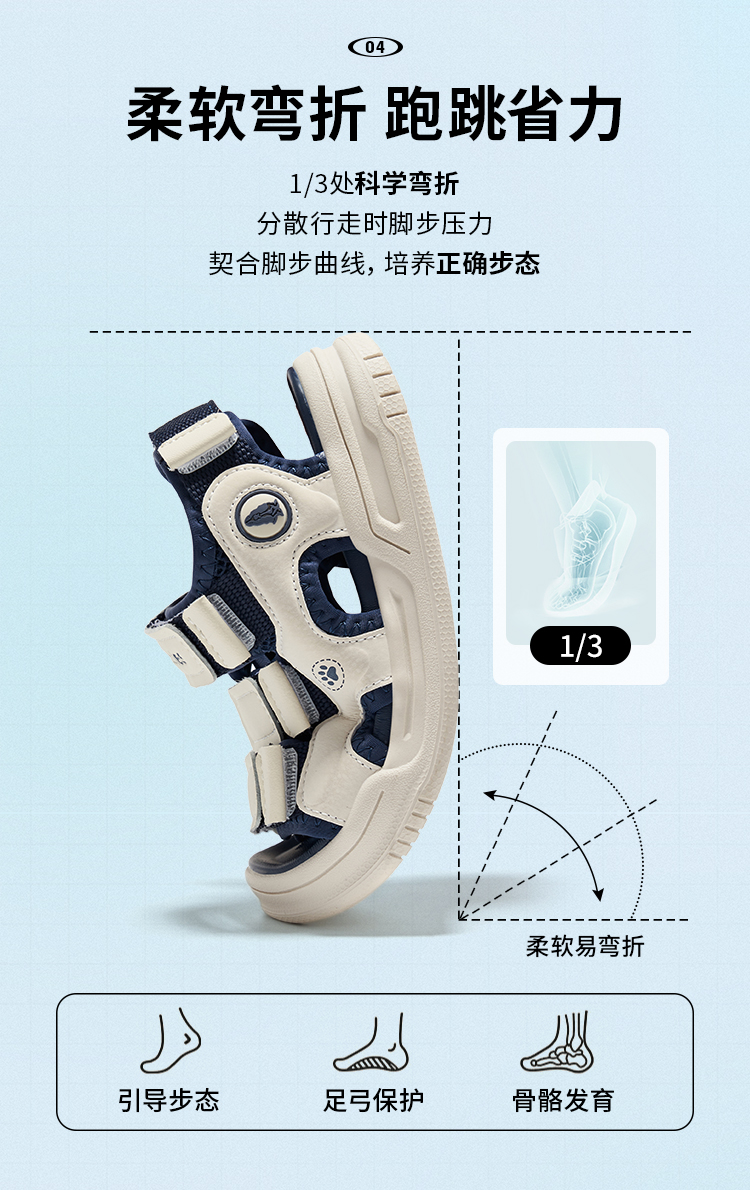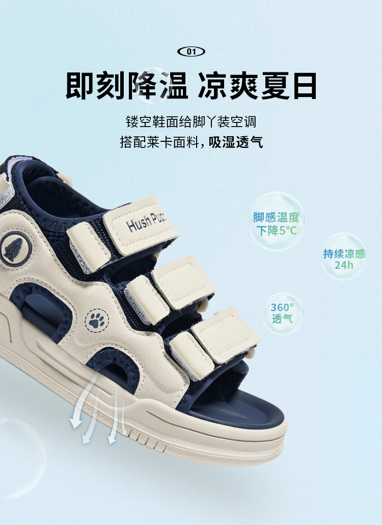 测评优品-暇步士儿童露趾凉鞋 夏款沙滩 户外运动 柔软回弹 魔术贴调节