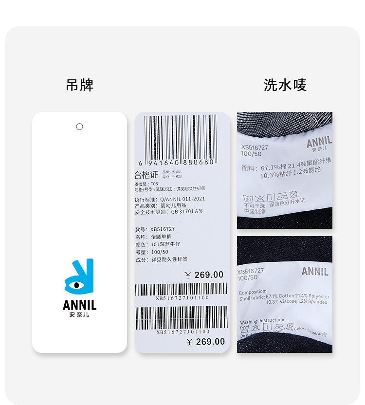 男童全腰单裤春季新款安奈儿童装实体店同款XB516727