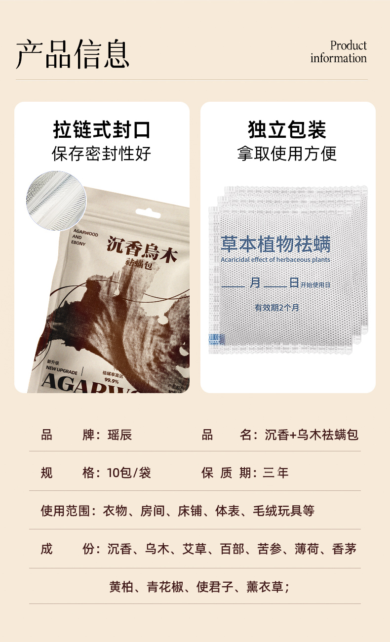 【3袋装】瑶辰沉香乌木祛螨包 10包/袋 草本植物+黑科技萃取技术
