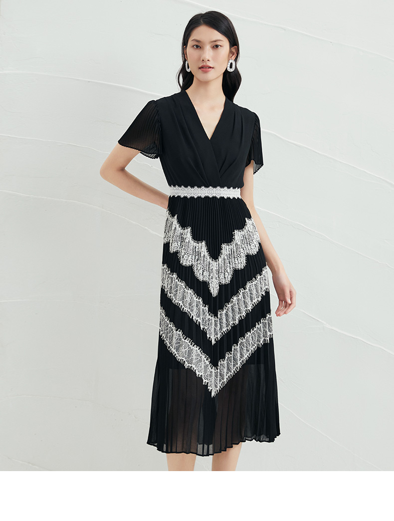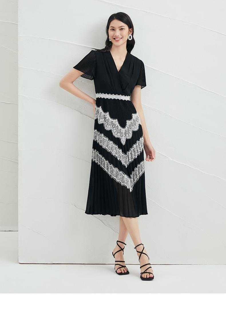 EITIE爱特爱V领百搭气质收腰民族风长裙连衣裙6607318
