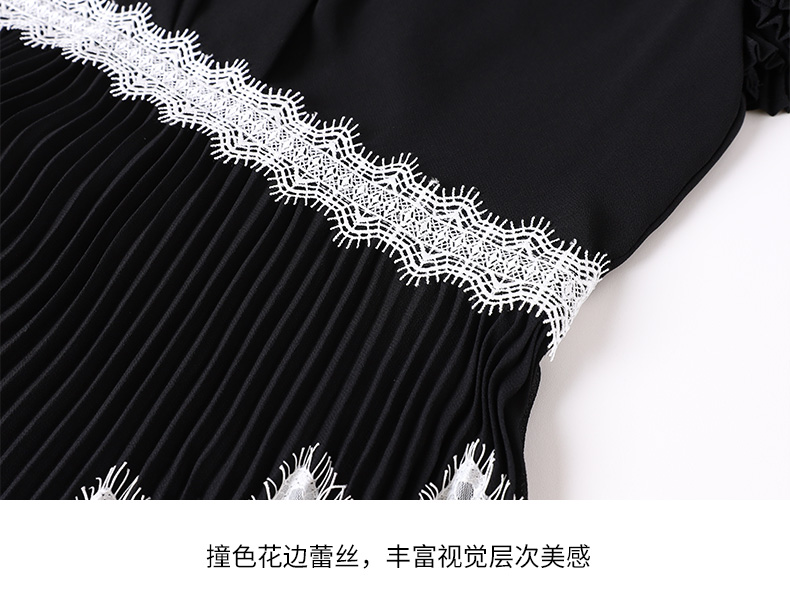 EITIE爱特爱女装早秋系领蕾丝镂空勾花喇叭袖大红连衣裙C1807150