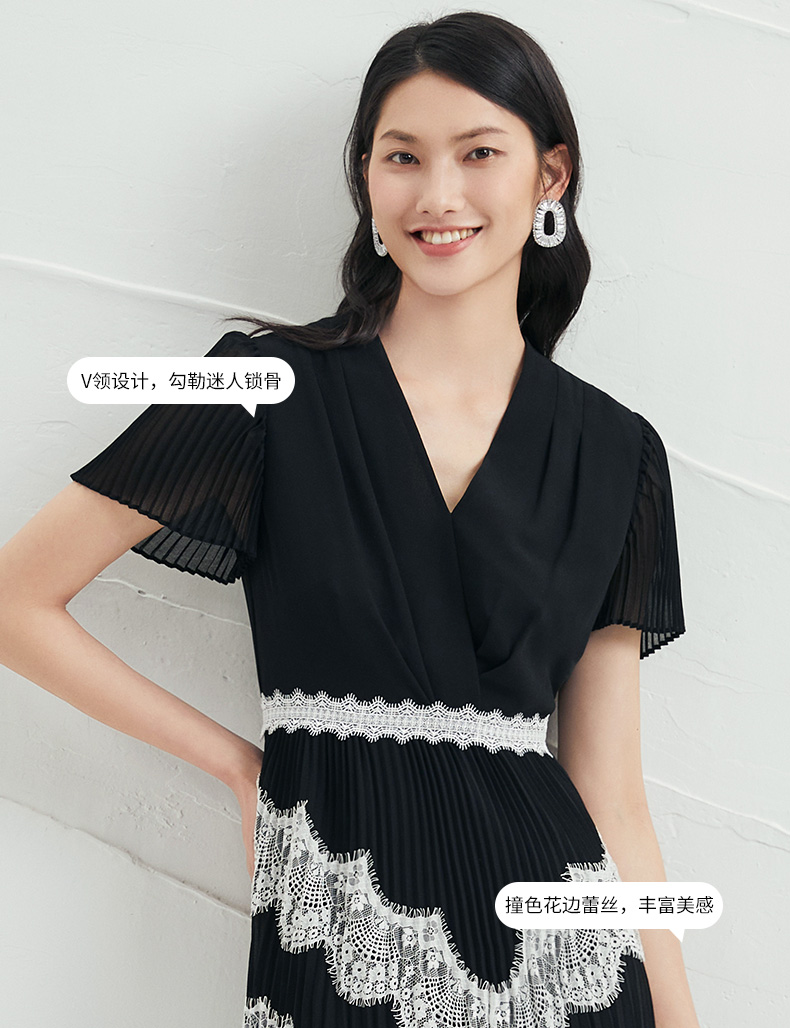 EITIE爱特爱女装夏季新品V领荷叶边短袖长款印花连衣裙薄5707491