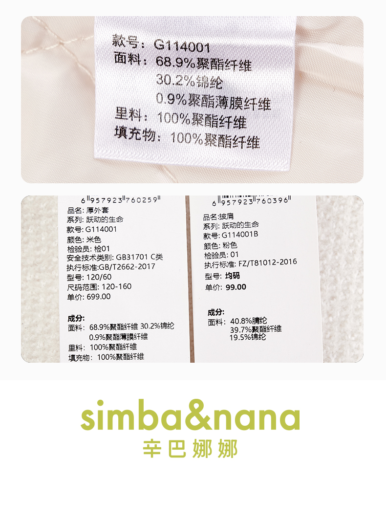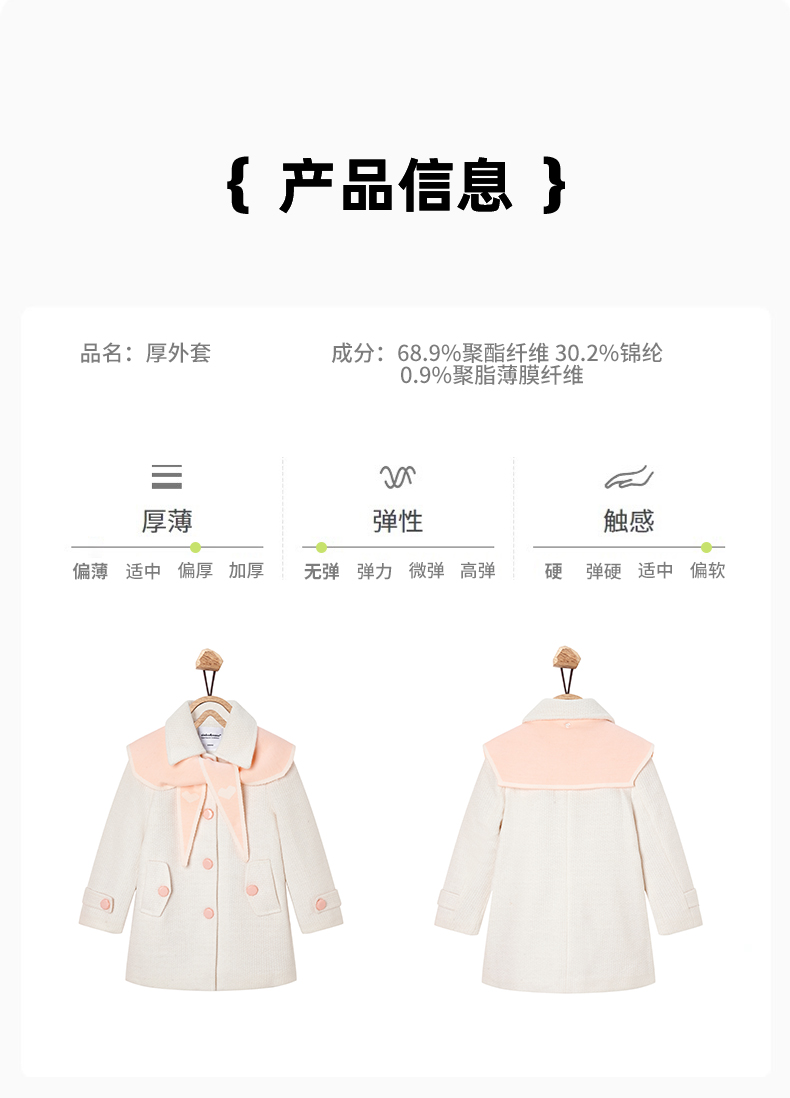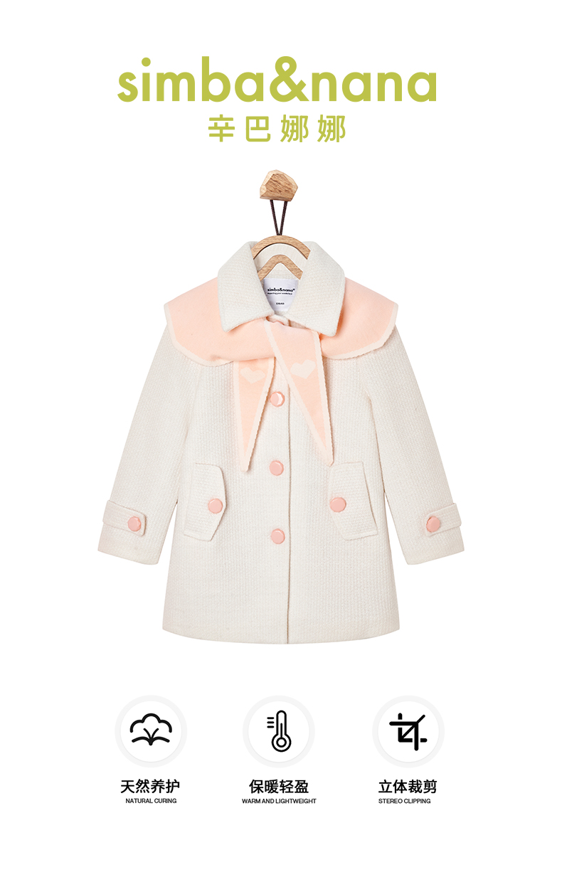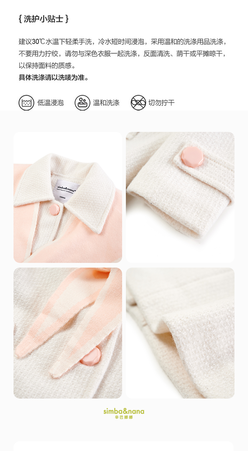 【辛巴娜娜】simbanana【大童】秋冬中大童小香风夹棉毛呢大衣女童中长款外套