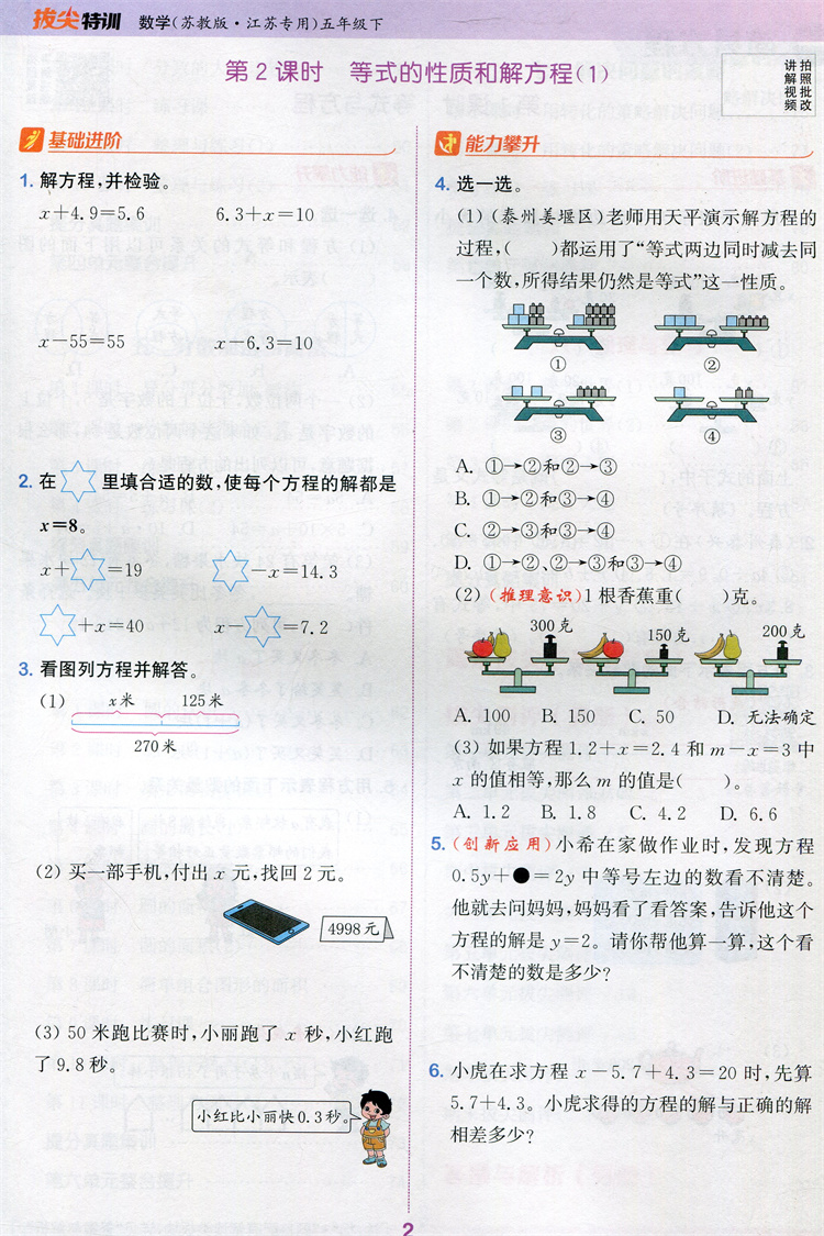 2026春 拔尖特训 数学 苏教版 五年级下册 江苏专用 小学教辅 高阶提优 同步练习 学生练习 通成学典 5下 江苏凤凰教育出版社