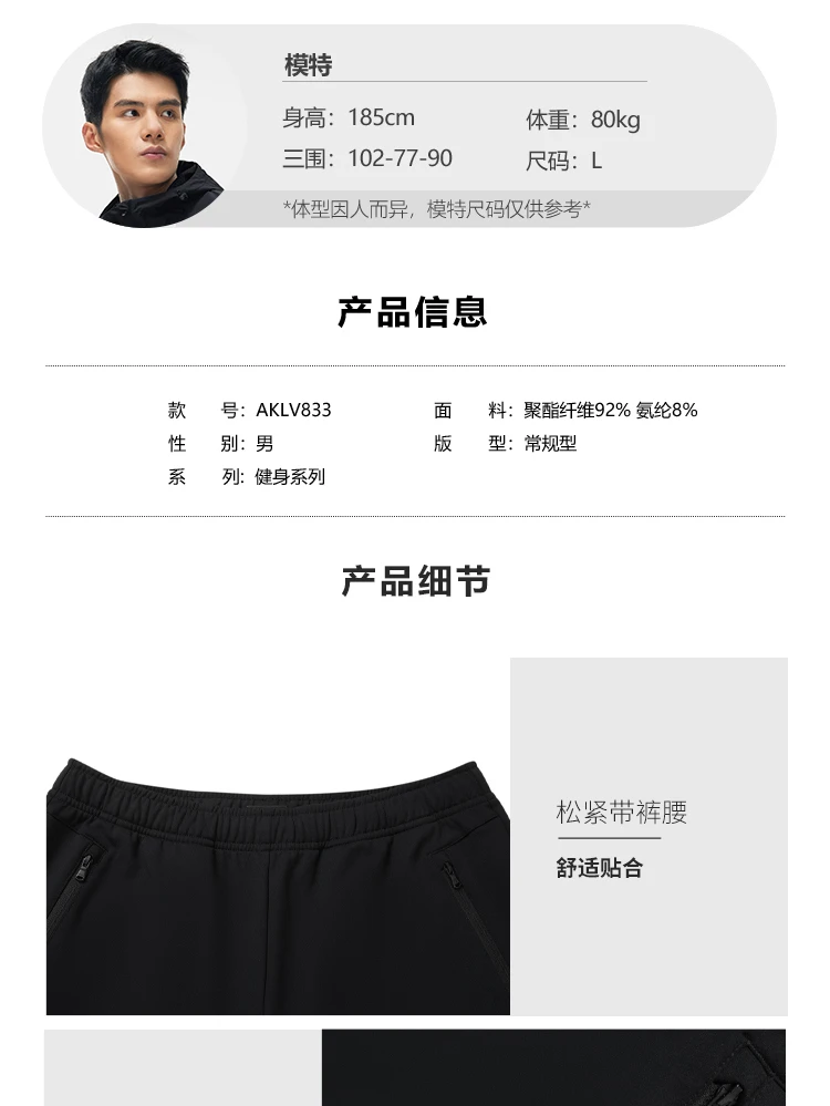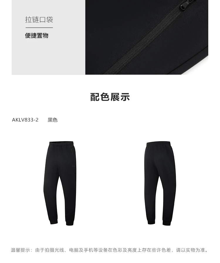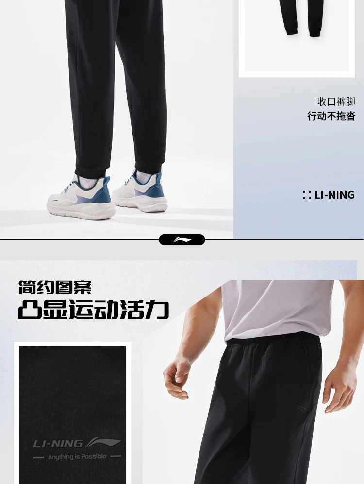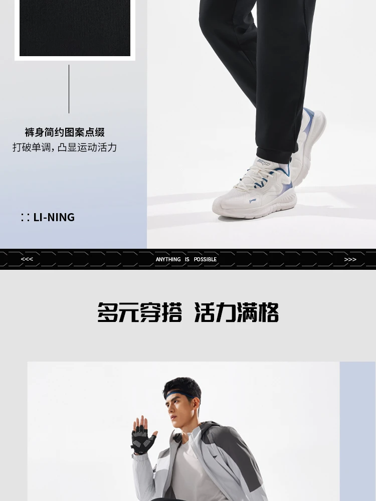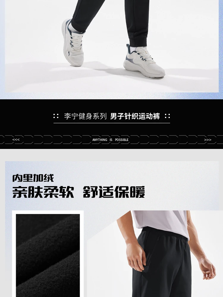 李宁男子束脚加绒保暖针织运动裤AKLV833