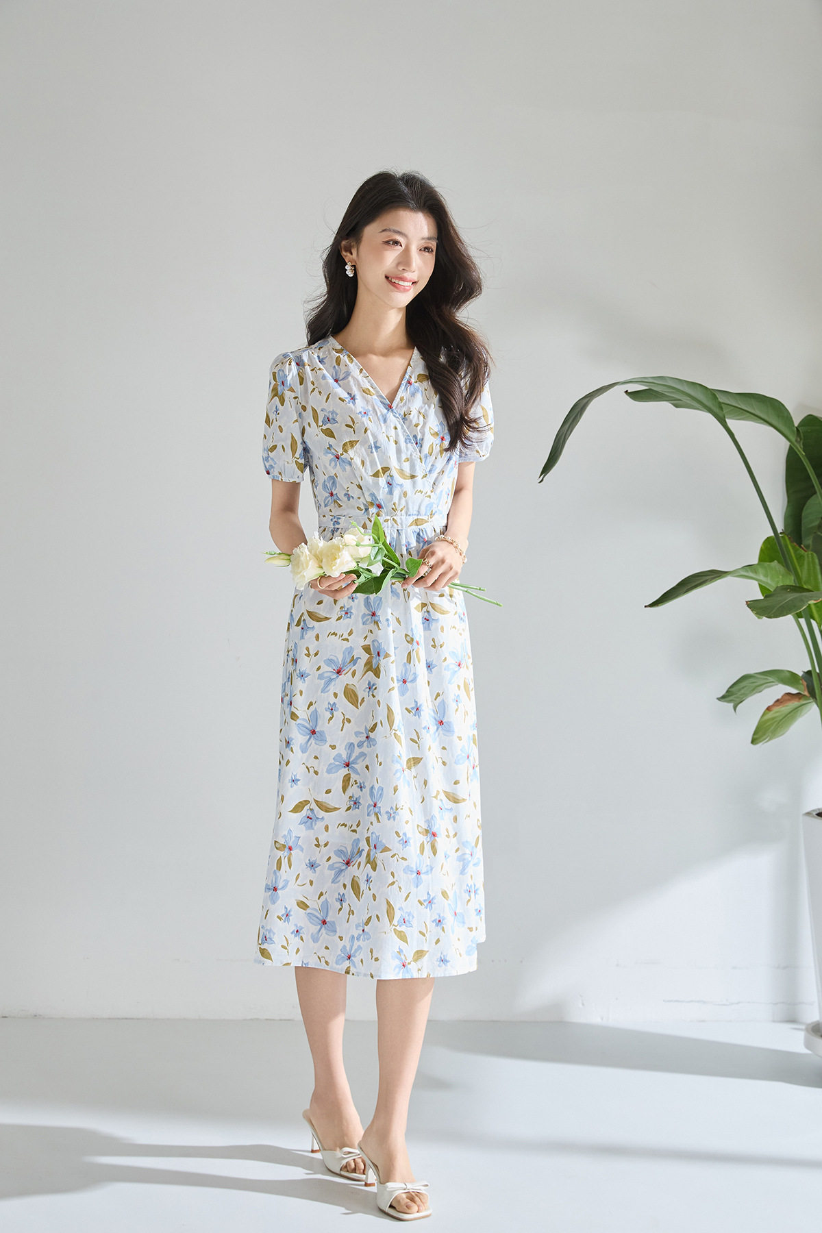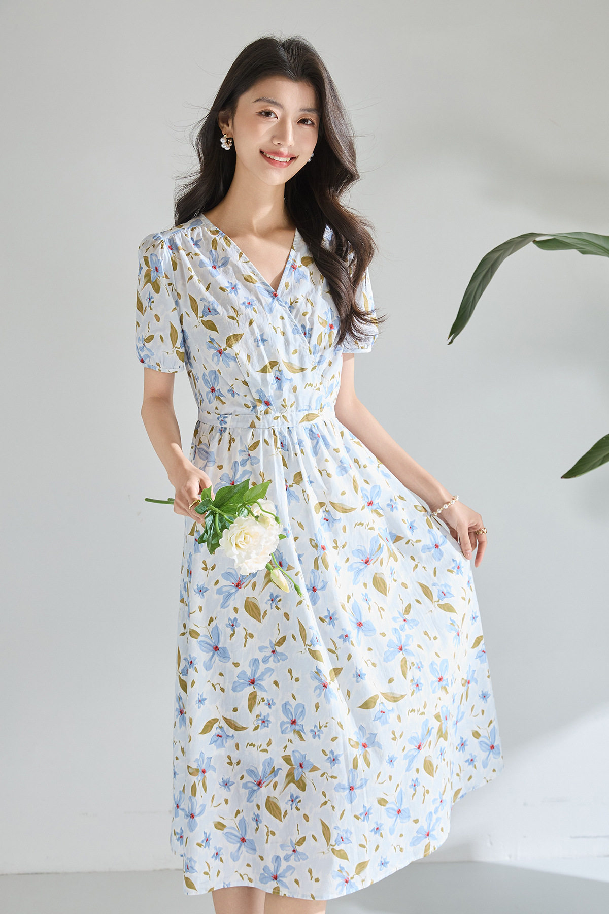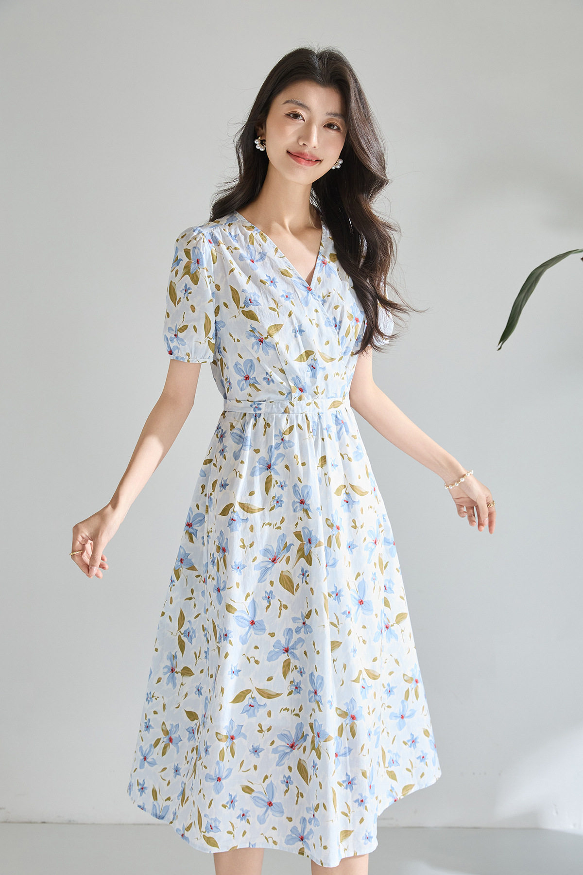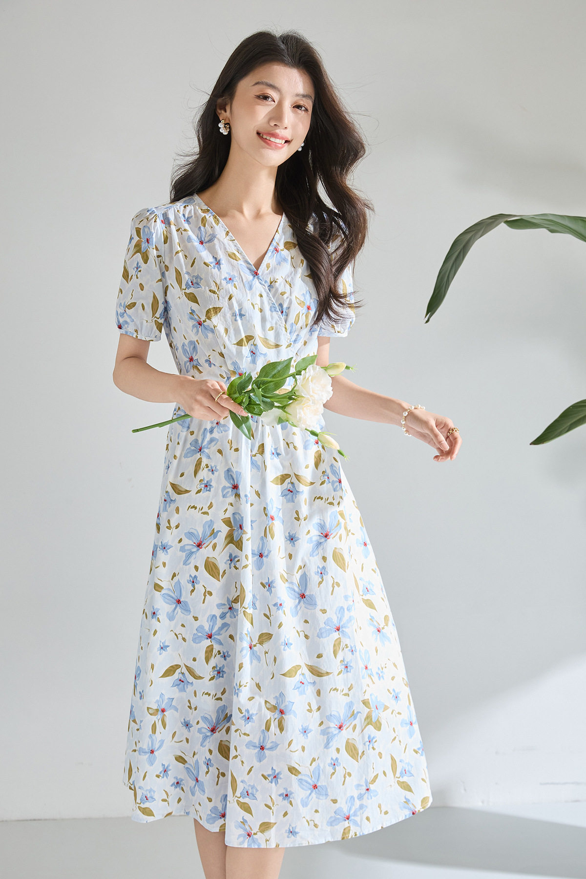 「高货sh」全新升级【铂金会员284/天猫379/差价95】(05850)洛诗琳气质郁金香印花连衣裙2026新款显瘦泡泡袖收腰裙