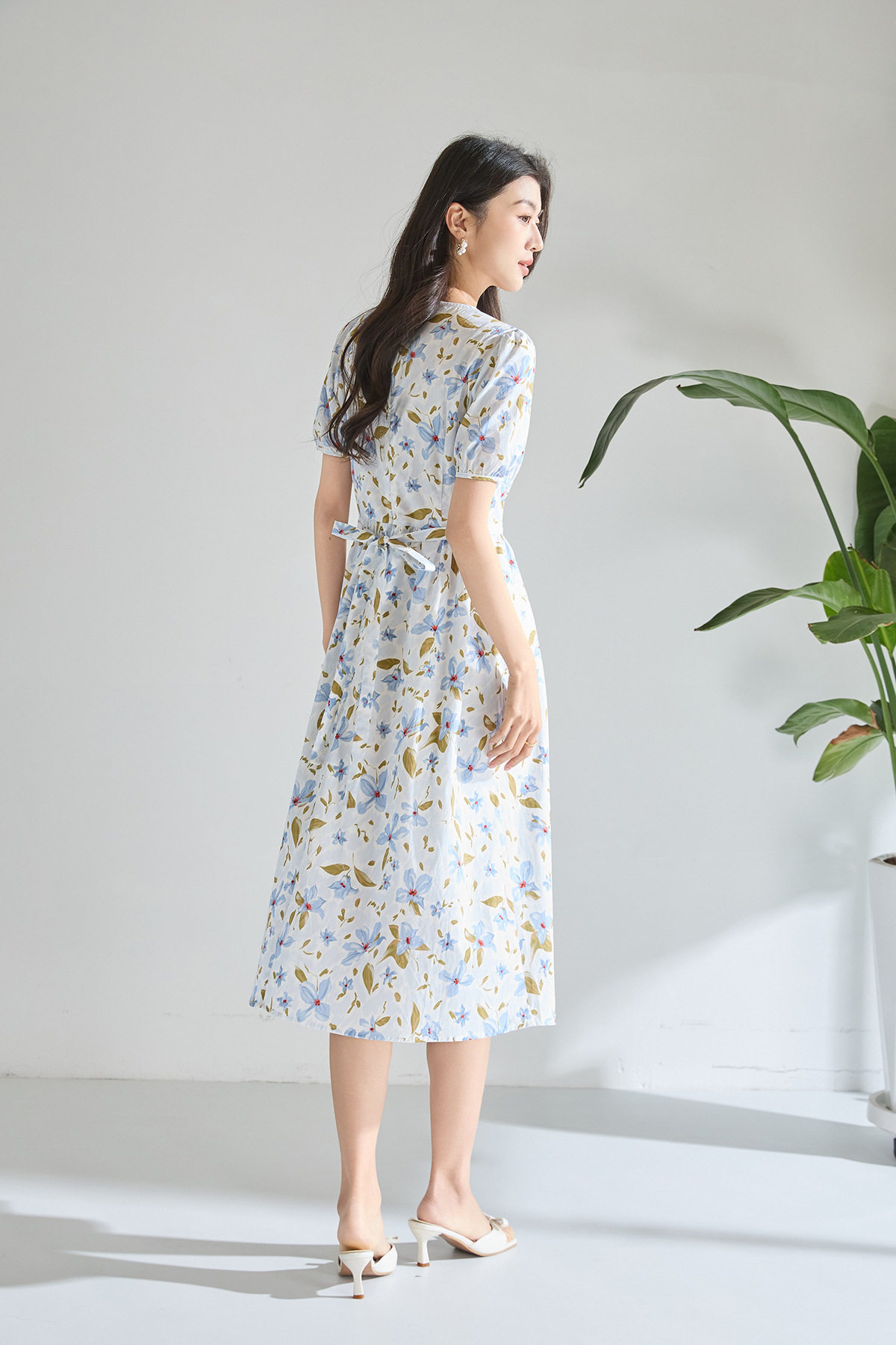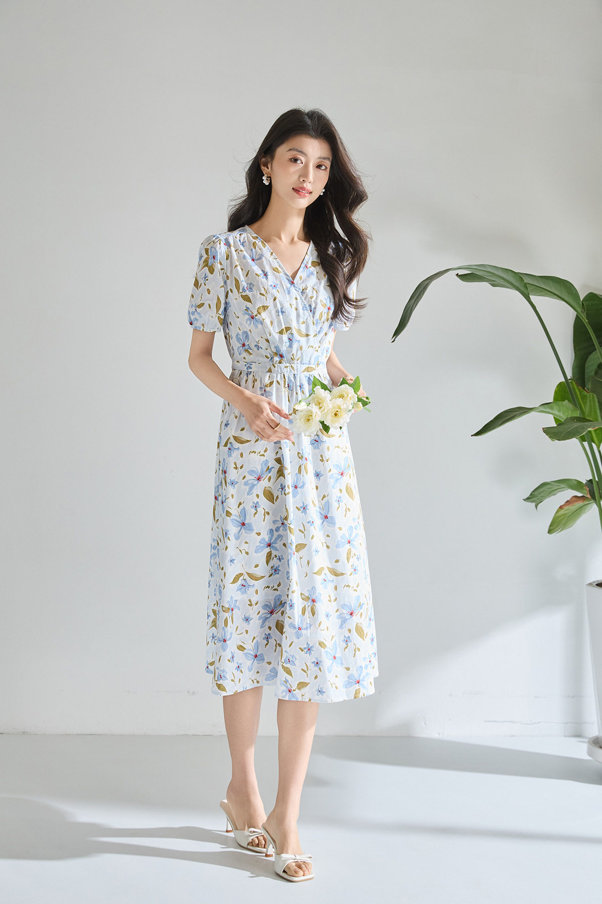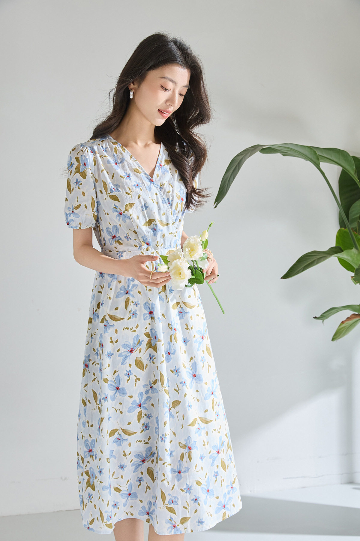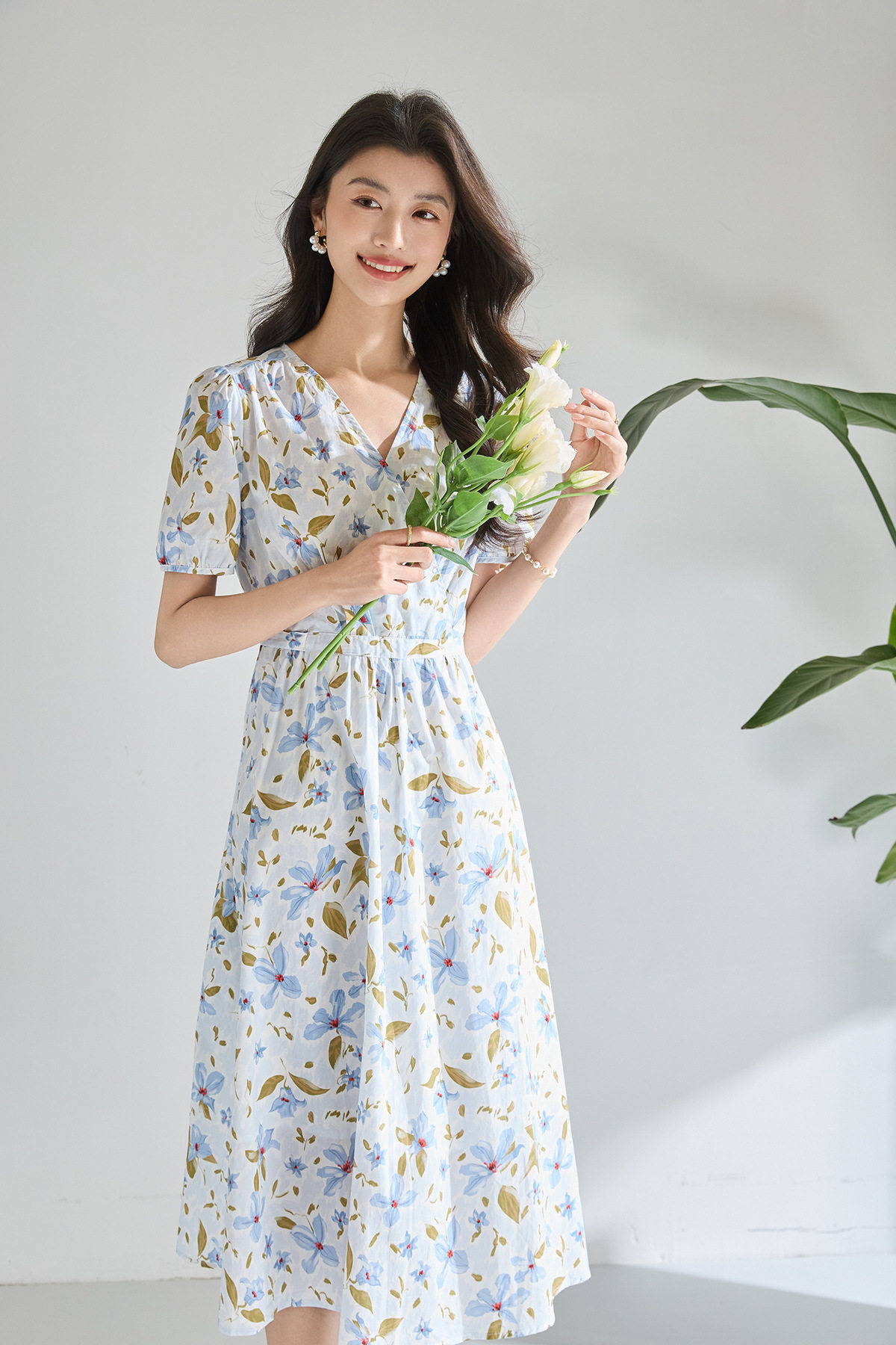 「高货sh」全新升级【铂金会员284/天猫379/差价95】(05850)洛诗琳气质郁金香印花连衣裙2026新款显瘦泡泡袖收腰裙