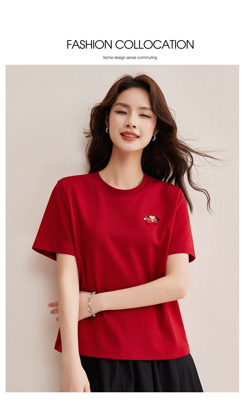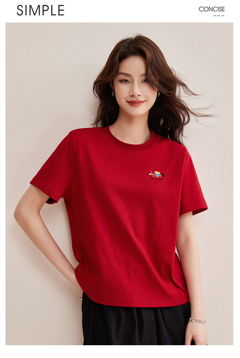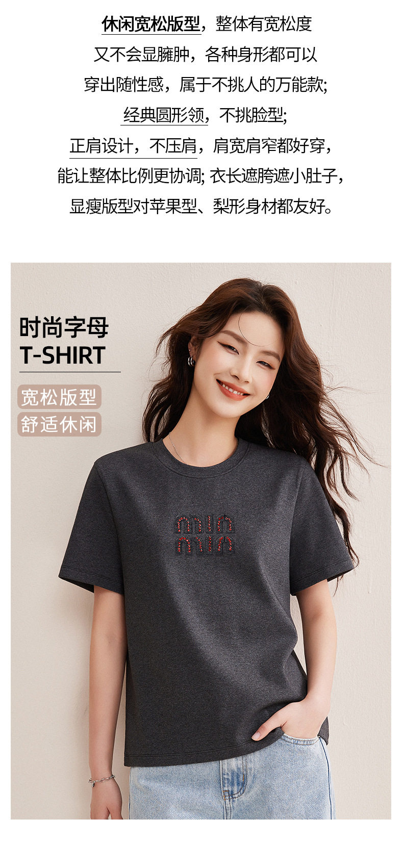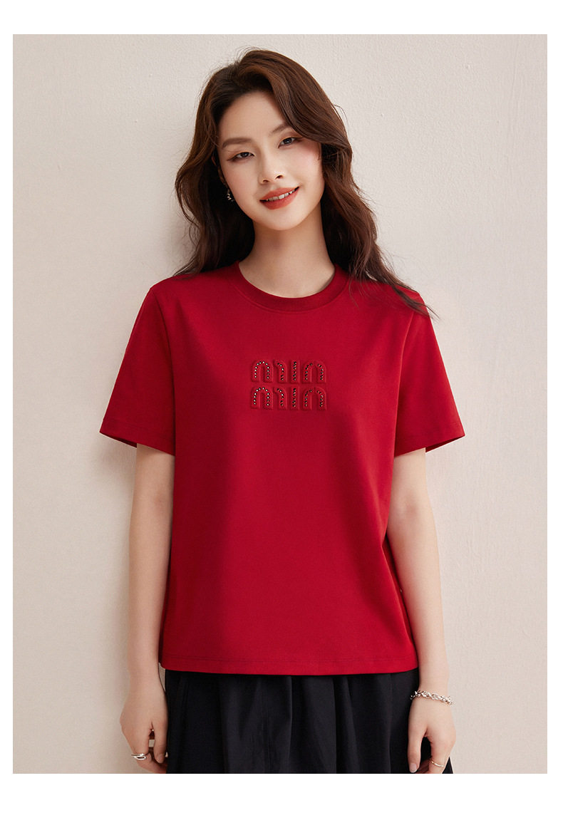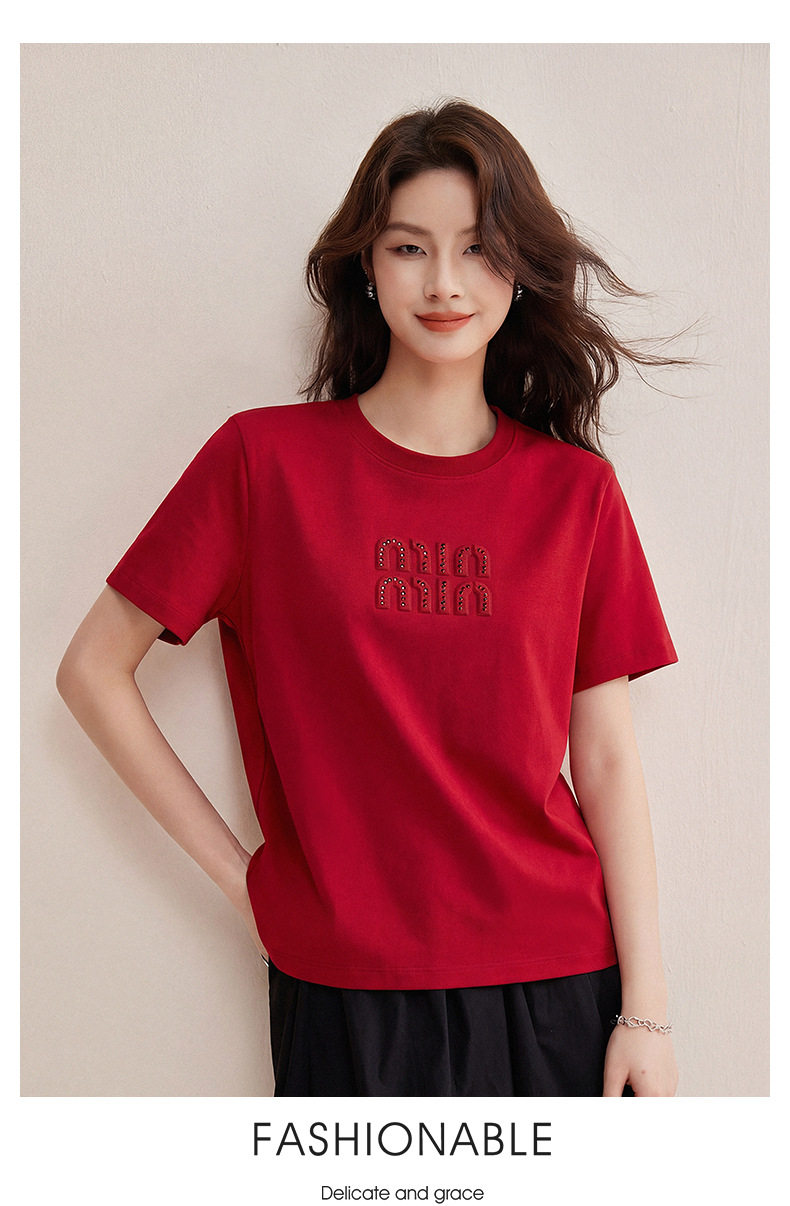 「自j」全新升级【铂金会员128/天猫169/差价41】(00741)洛诗琳新款休闲钻饰纯棉T恤2026春夏正肩字母设计短袖上衣