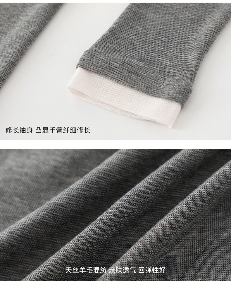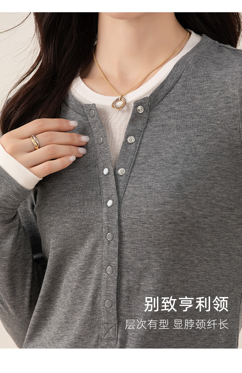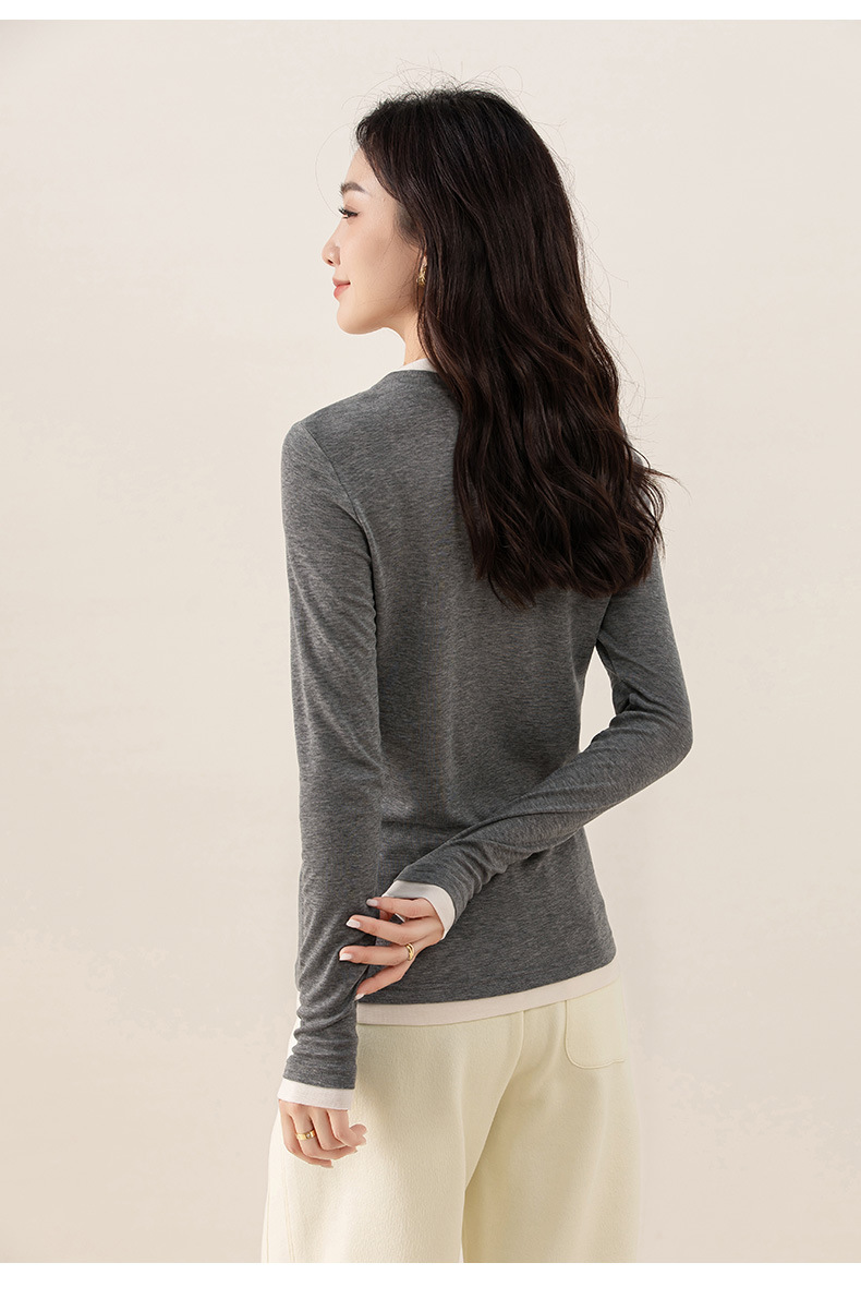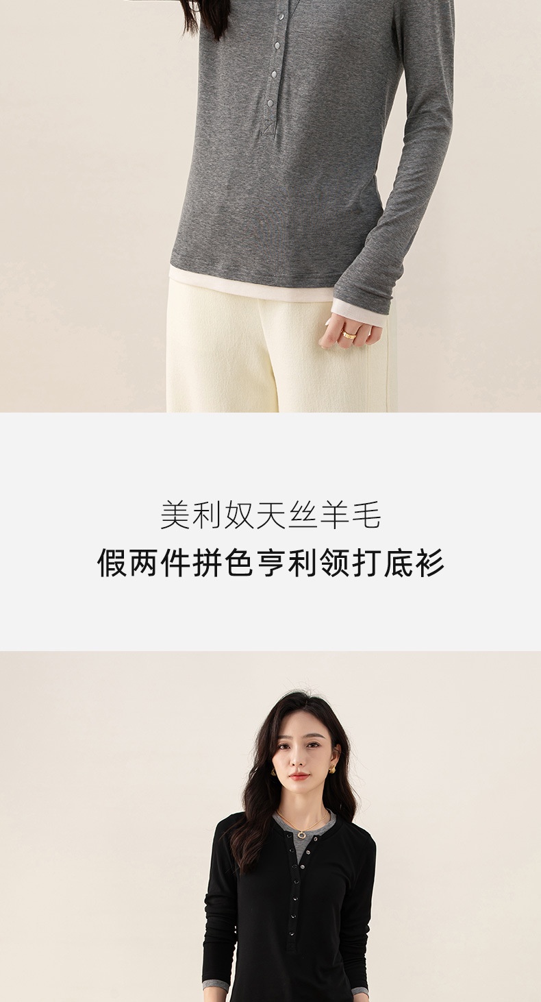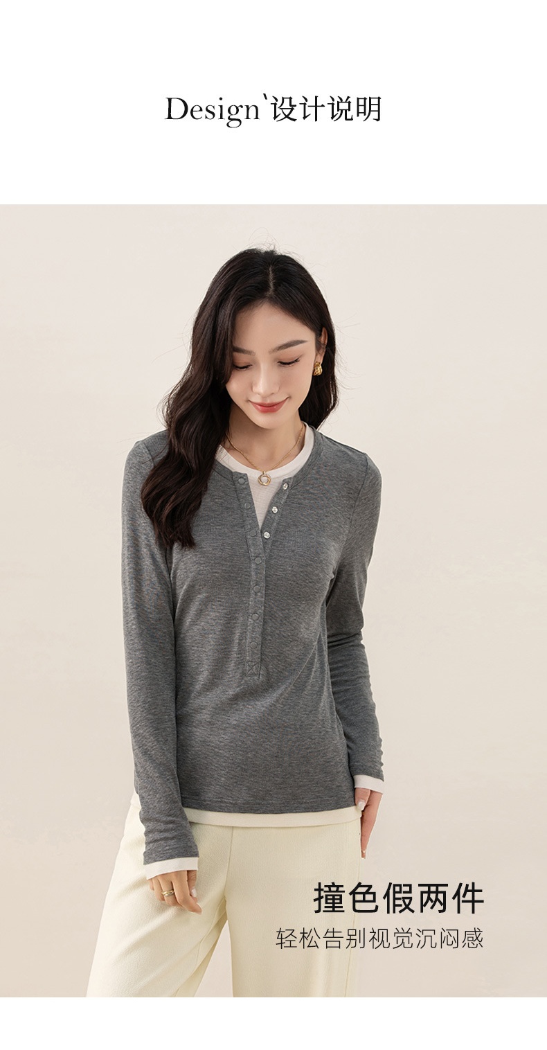 「高货xg」全新升级【铂金会员183/天猫239/差价56】(02114)洛诗琳拼接假两件T恤2025秋季洋气减龄显瘦天丝羊毛打底衫