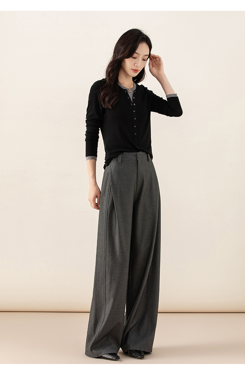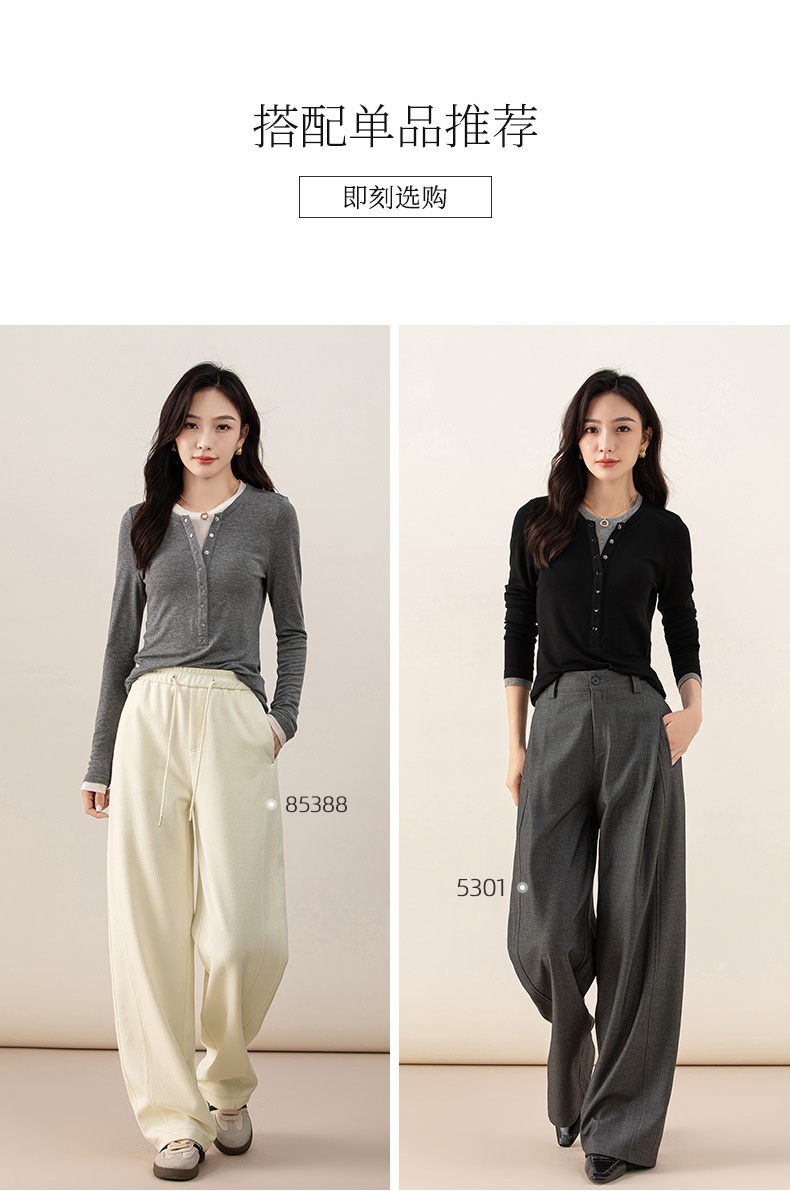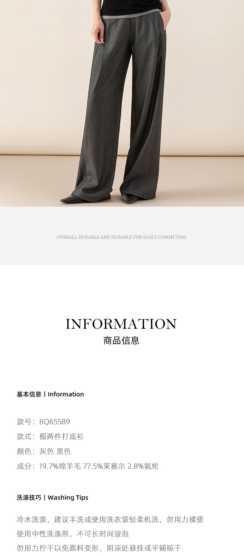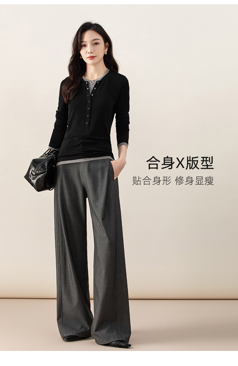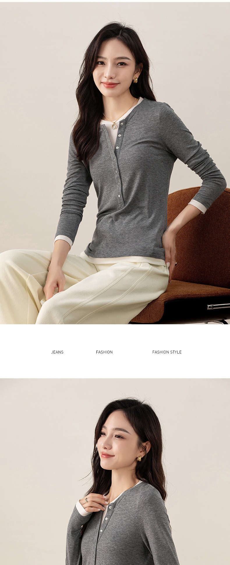 「高货xg」全新升级【铂金会员183/天猫239/差价56】(02114)洛诗琳拼接假两件T恤2025秋季洋气减龄显瘦天丝羊毛打底衫