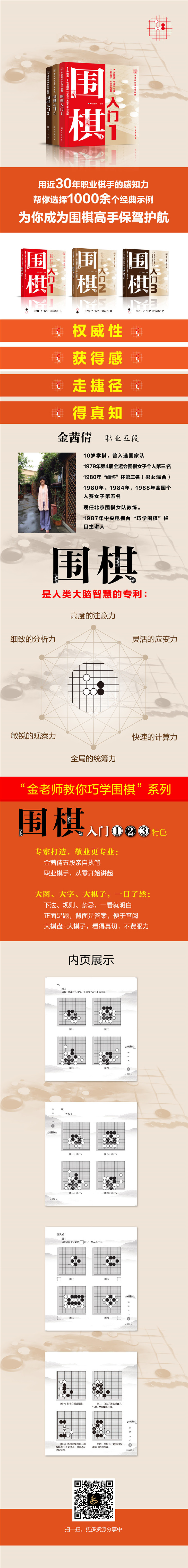 巧学围棋系列是沿用本书作者金茜倩在电视台讲棋时的栏目名称而定的,作者为原国家围棋队队员,是专业棋手出身,《围棋入门》所收录内容,是在她30余年与围棋为伍的日子里,将与围棋有关的那些所学、所想、所用,以通俗易懂的方式进行的讲述。