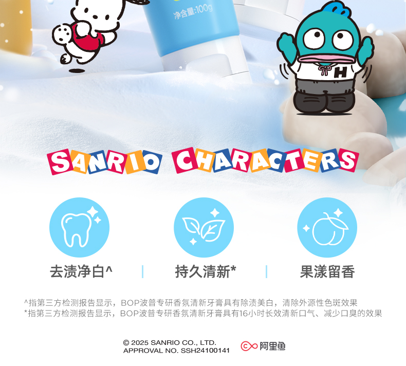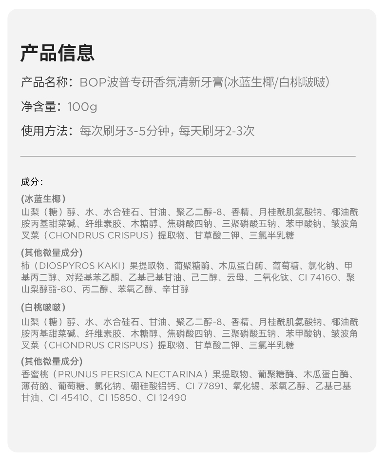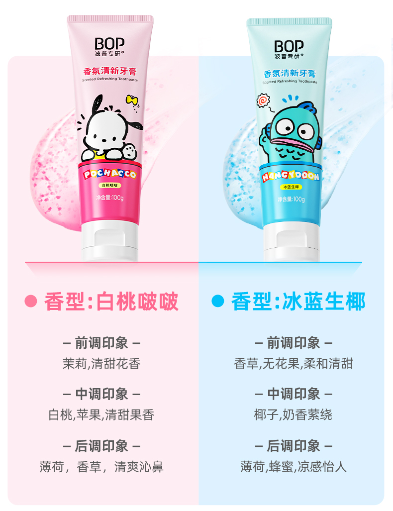 【热卖】BOP波普专研香氛清新牙膏(白桃啵啵)POCHACCO联名版100g