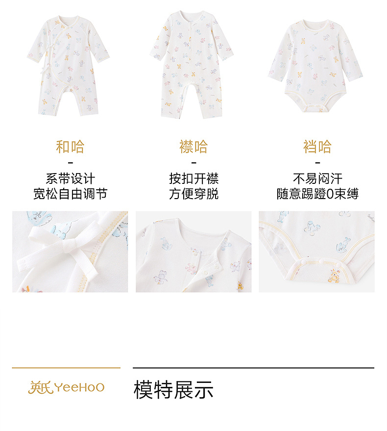 【商场同款】英氏婴儿连体衣四季抗菌防螨长袖哈衣宝宝连体睡衣