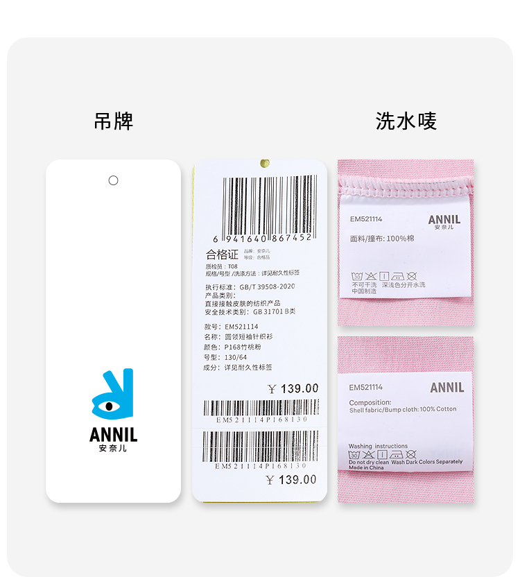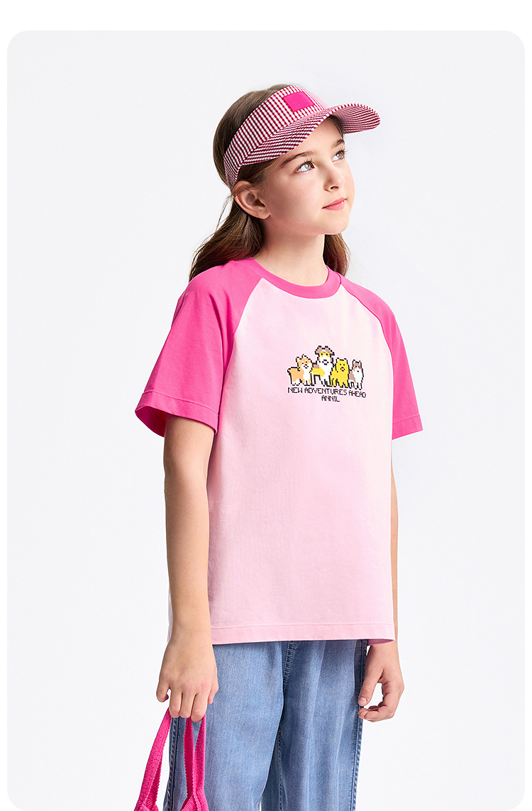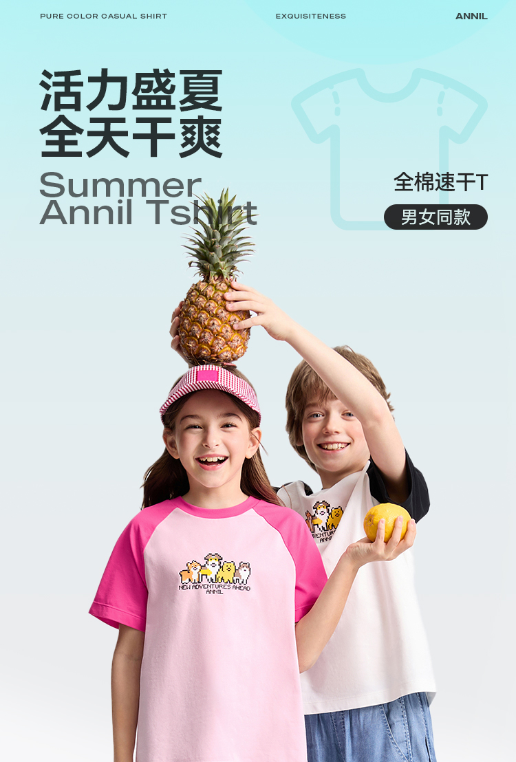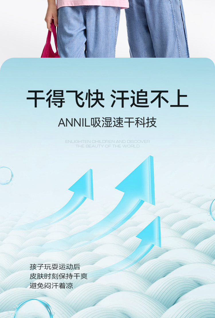 男女童速干圆领短袖针织衫夏季新款安奈儿童装EM521114