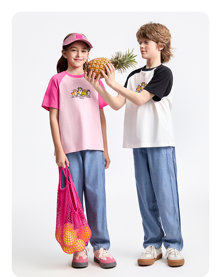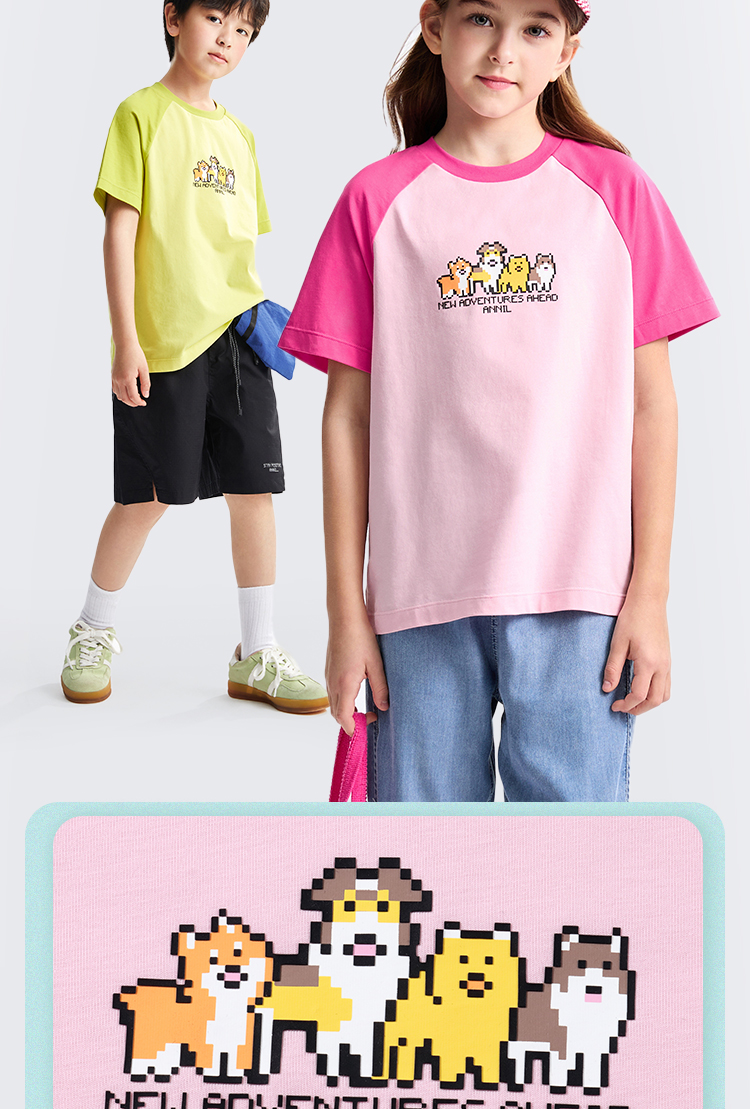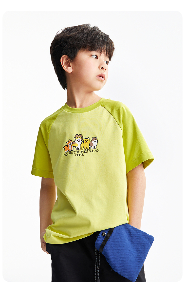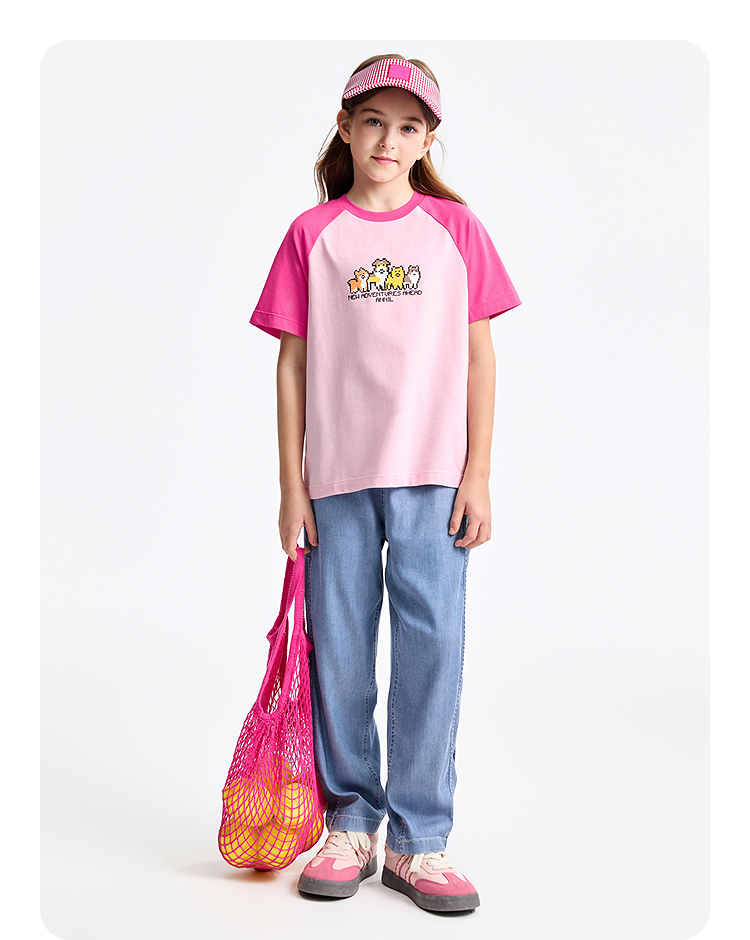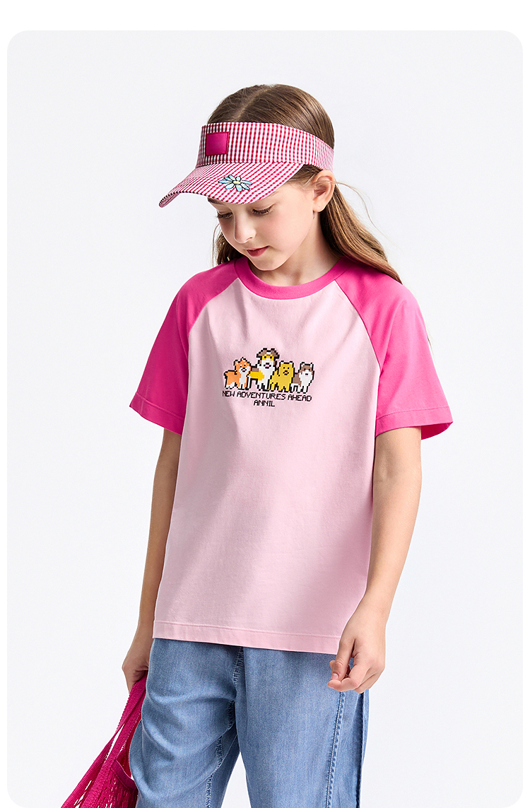 男女童速干圆领短袖针织衫夏季新款安奈儿童装EM521114