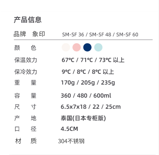 日本象印保温杯SM-JF36 蓝色AD水杯