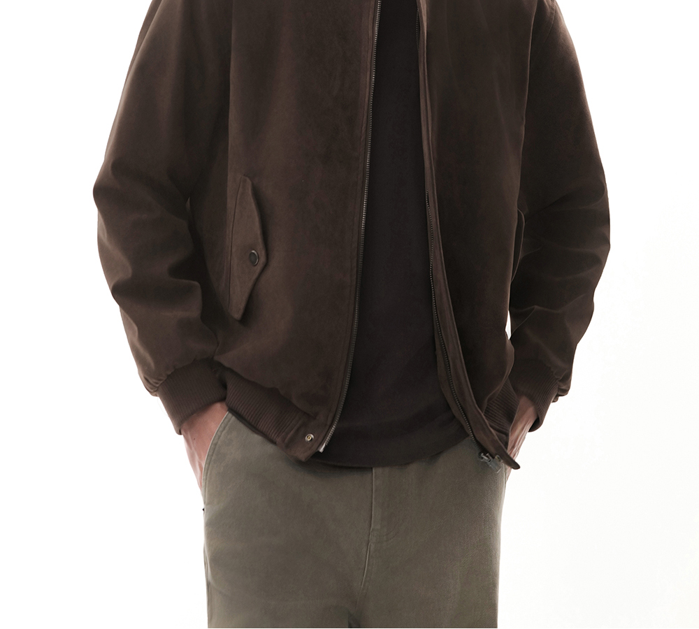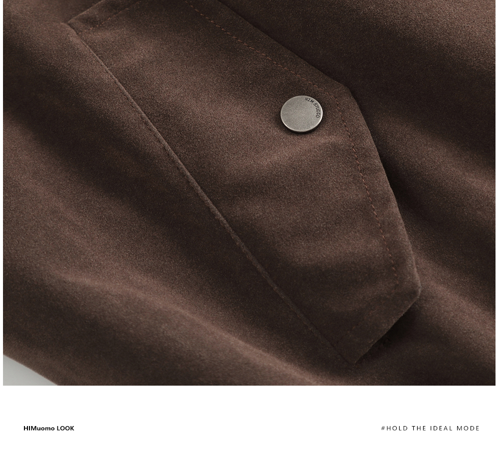 HIM漢崇 休闲立领短款纯色运动夹克男绒面感宽松轻薄外套2025秋季