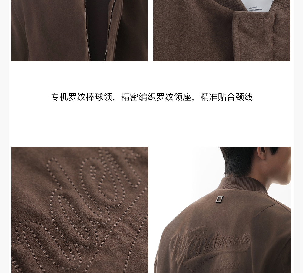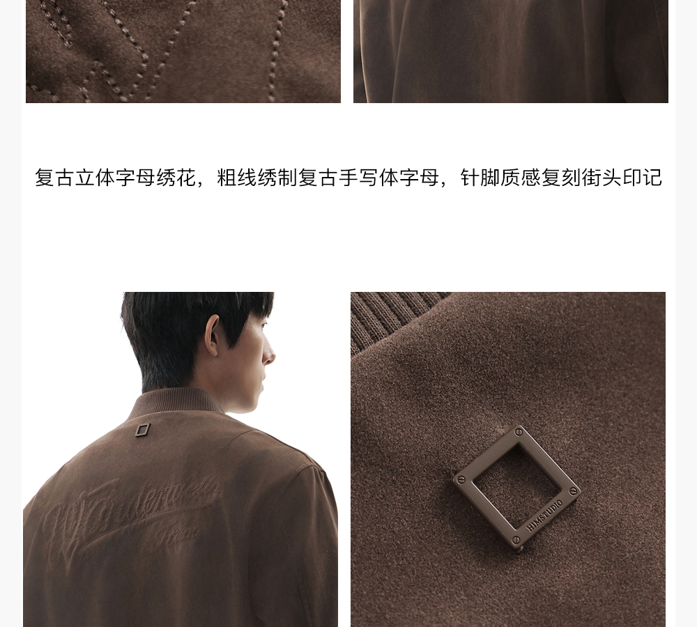 HIM漢崇【商场同款】洗水磨砂哑光棒球领夹克男立体珠线绣花外套