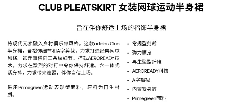 Adidas阿迪达斯2021新款女子网球百褶短裙(内置底裤)