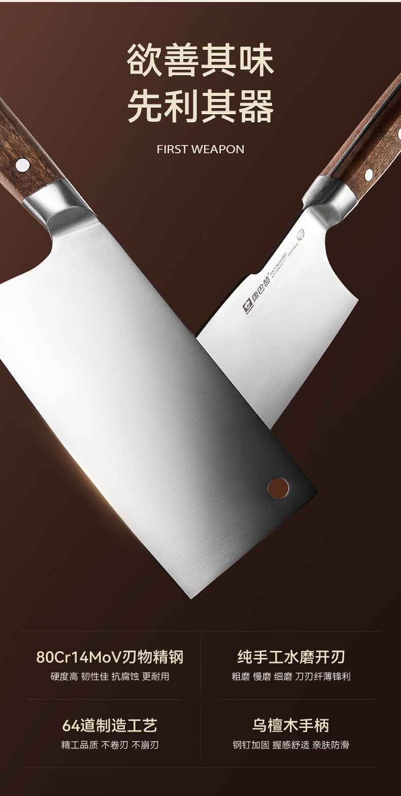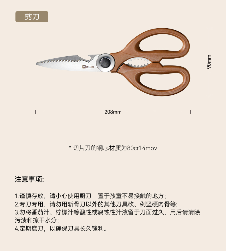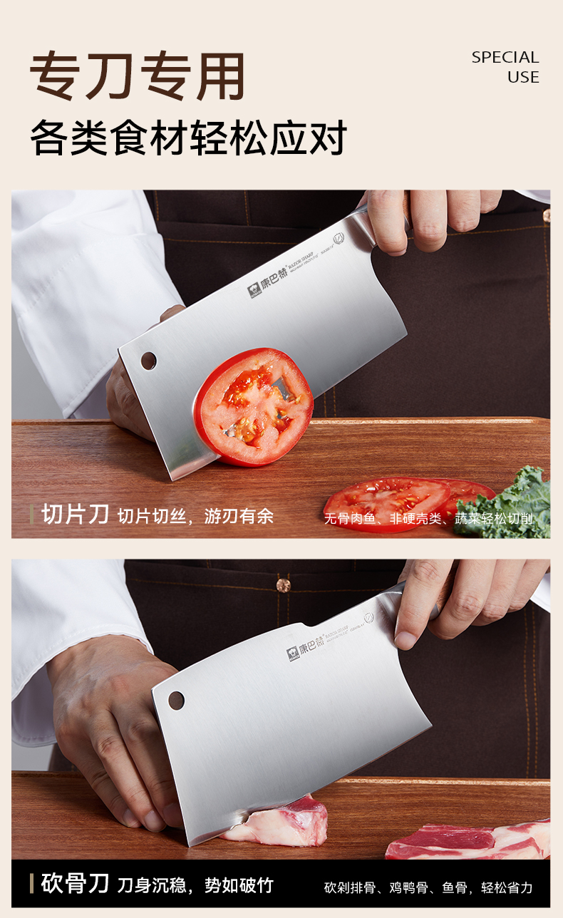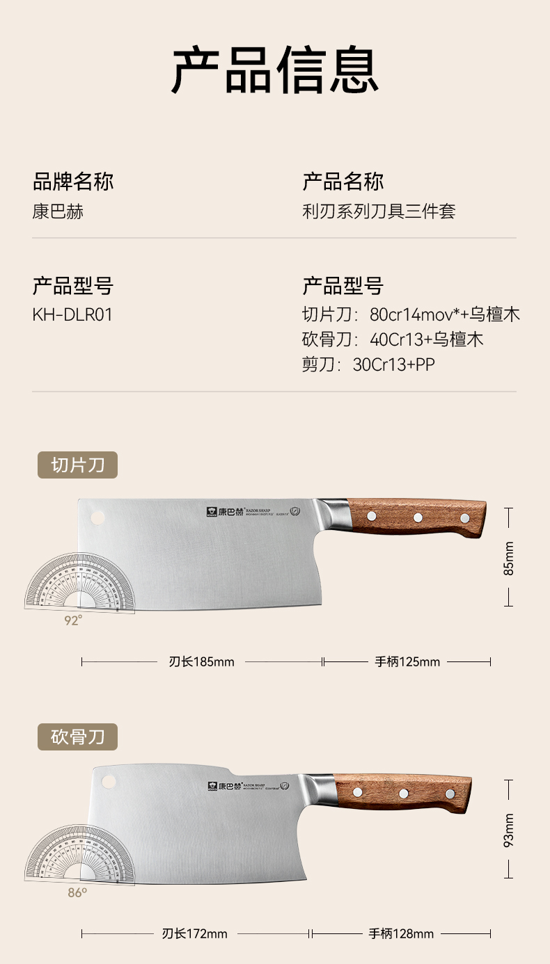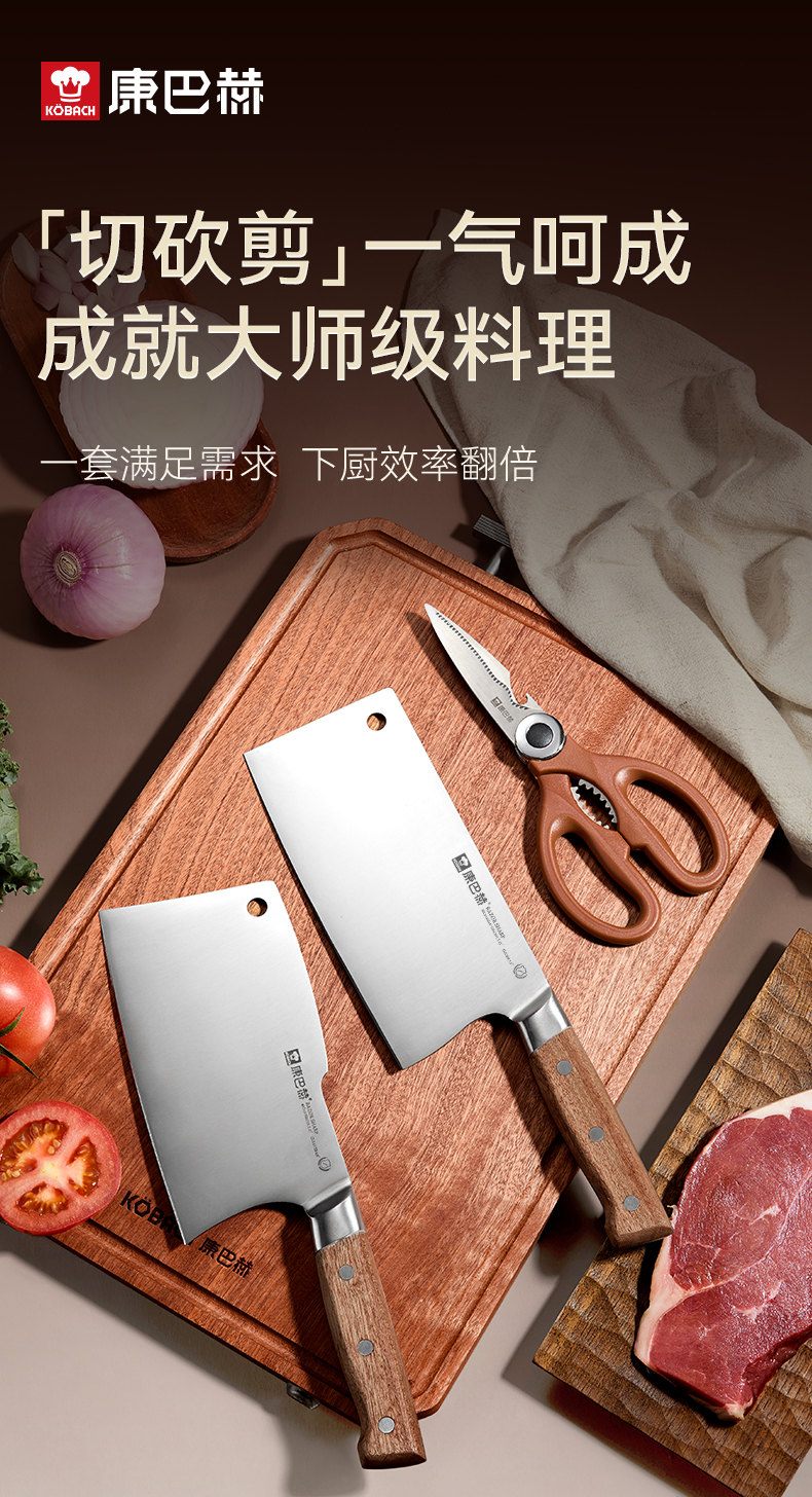 康巴赫利刃系列刀具三件套/1套(切片刀+砍骨刀+剪刀)
