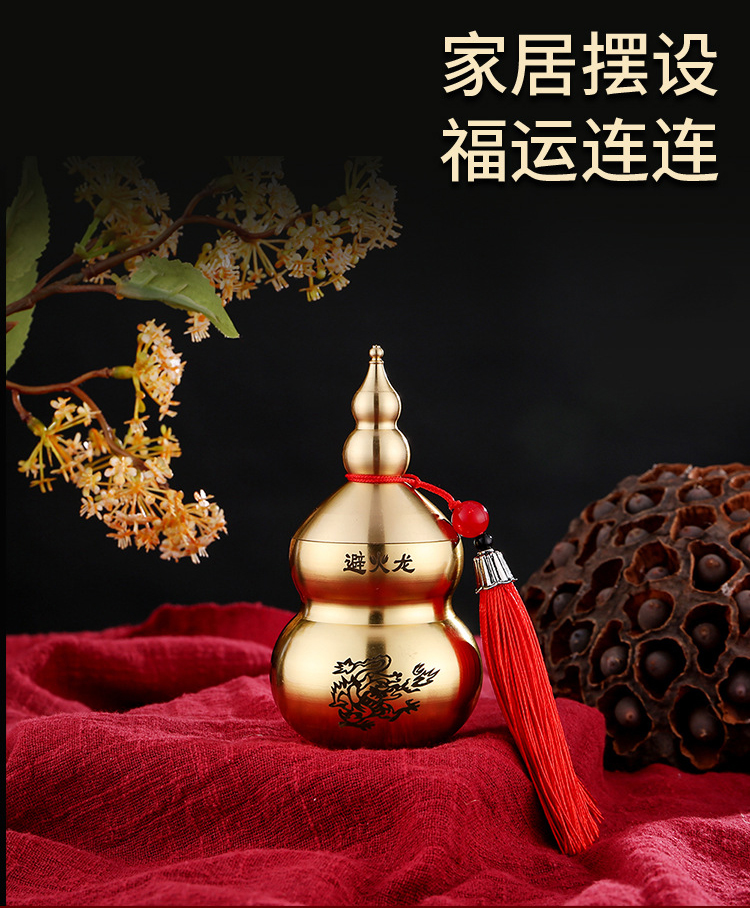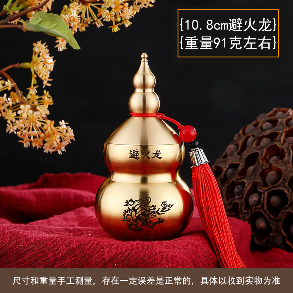 太清避火龙瓶黄铜顶开盖带流苏葫芦铜摆件