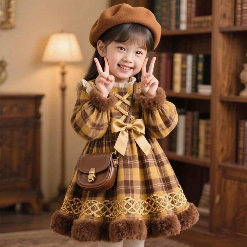 【优质亲肤面料❗️精致时尚可爱】女童2025秋冬新款洛丽塔连衣裙宝宝洋气时髦生日礼服小女孩公主裙。jc