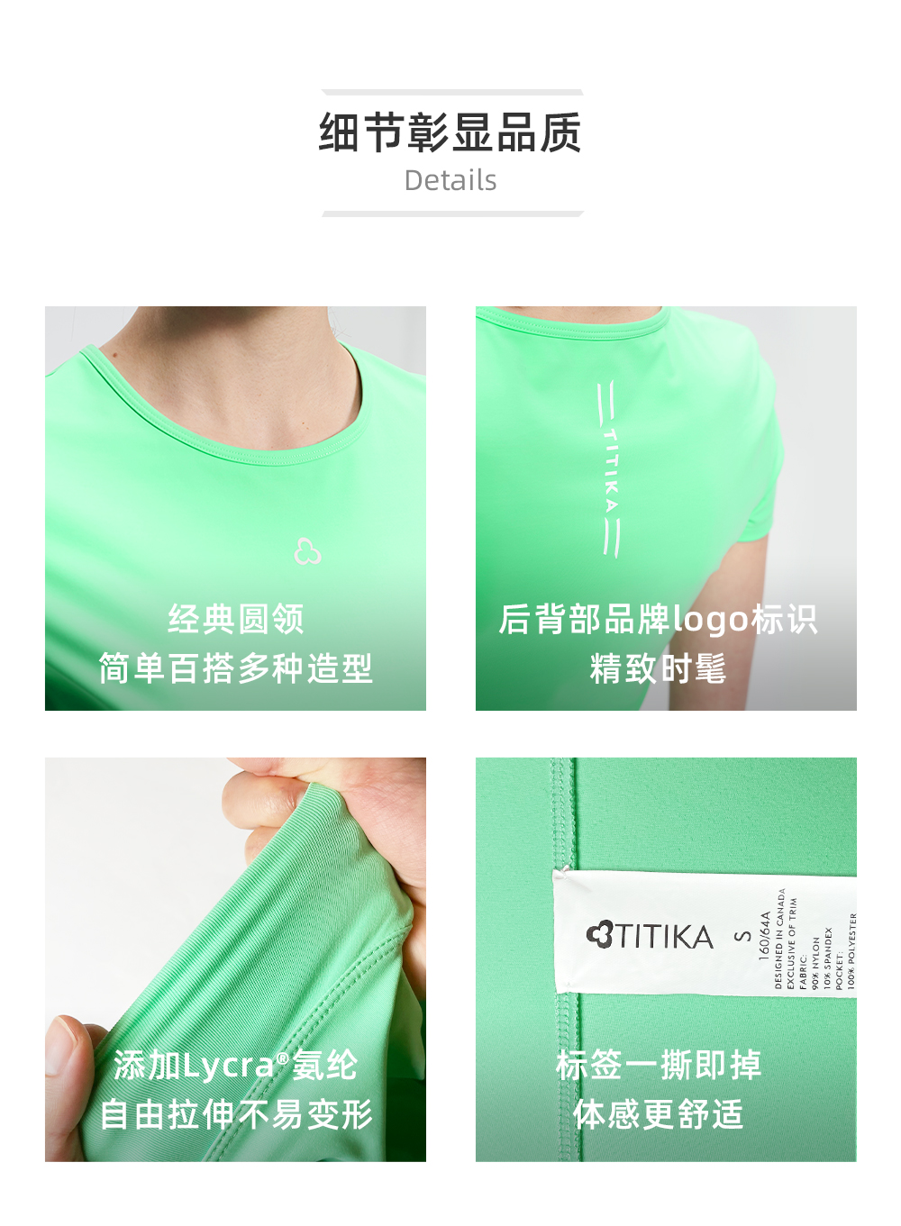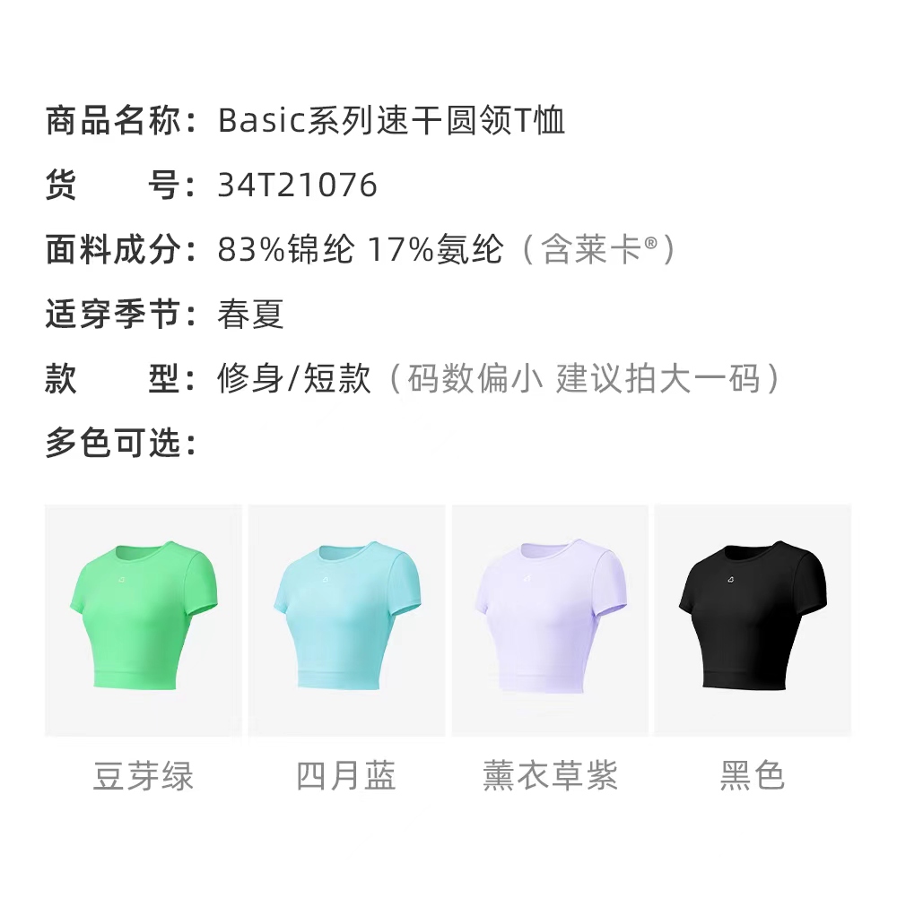 TITIKA ACTIVE瑜伽服速干圆领T恤女四面弹透气速干百搭夏季修身度短袖上衣Basic 21076