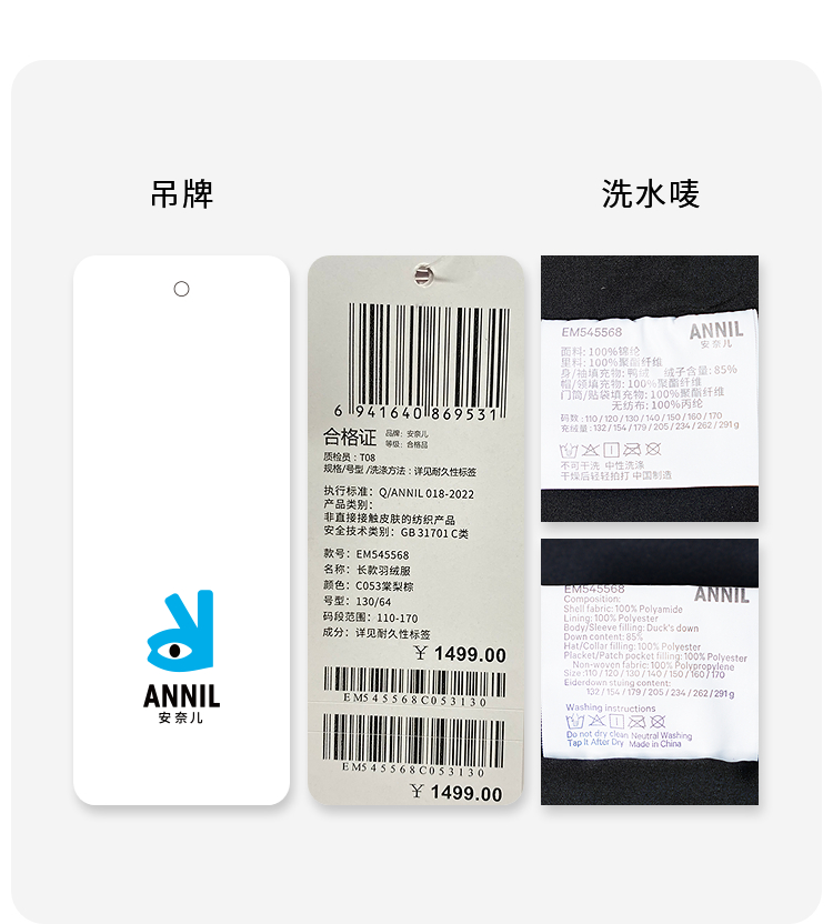 男女童可拆卸帽子长款羽绒服冬季新款安奈儿童装EM545568