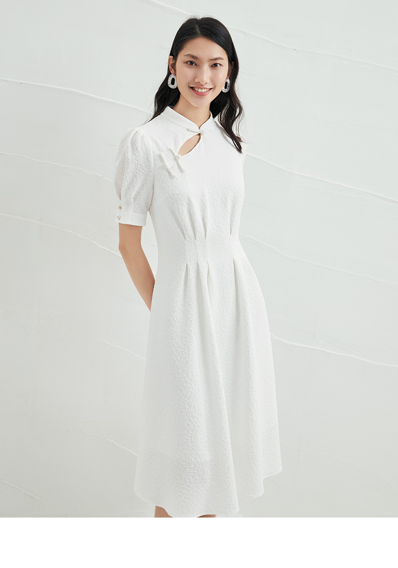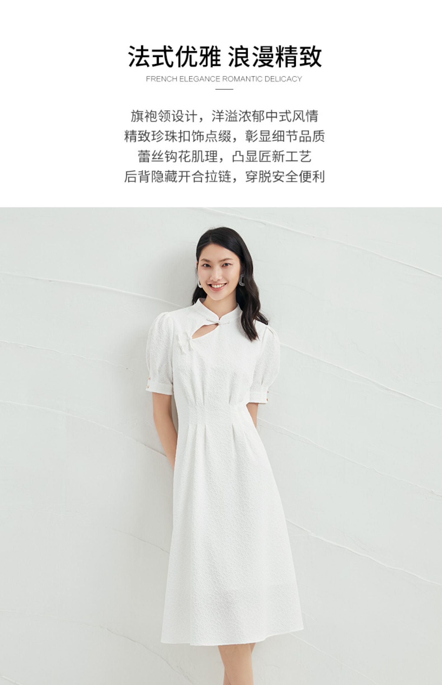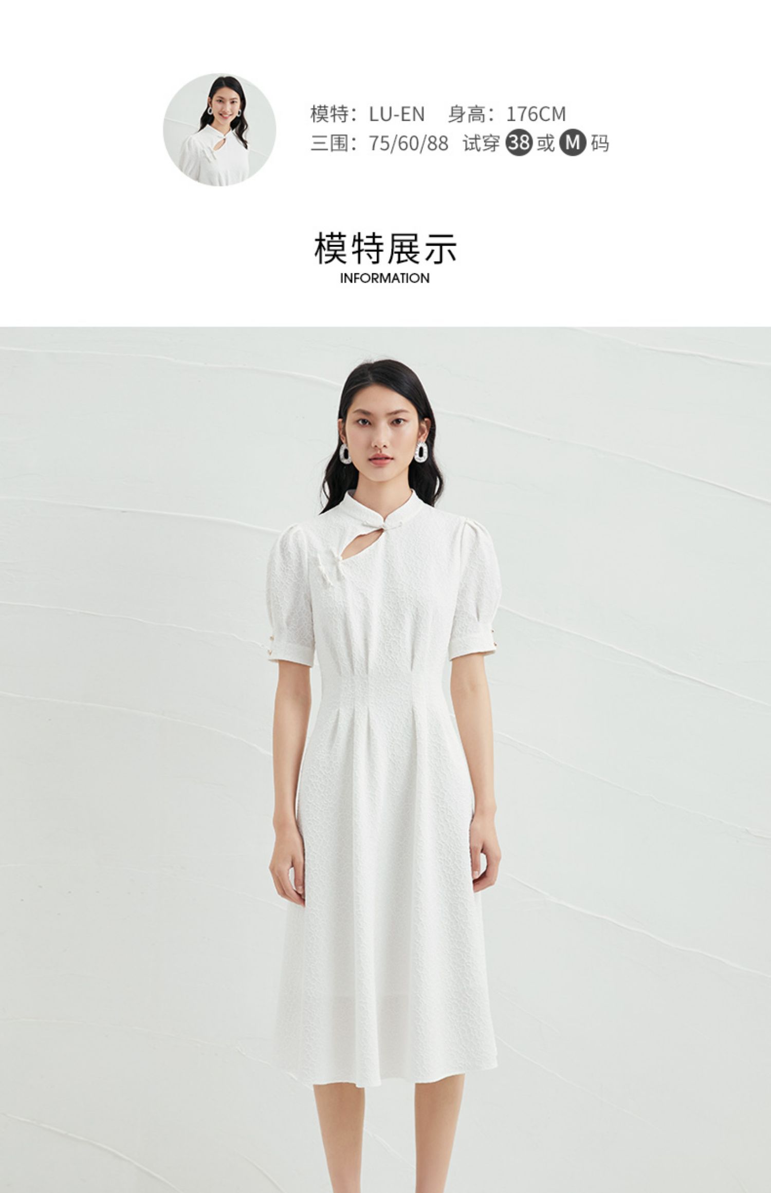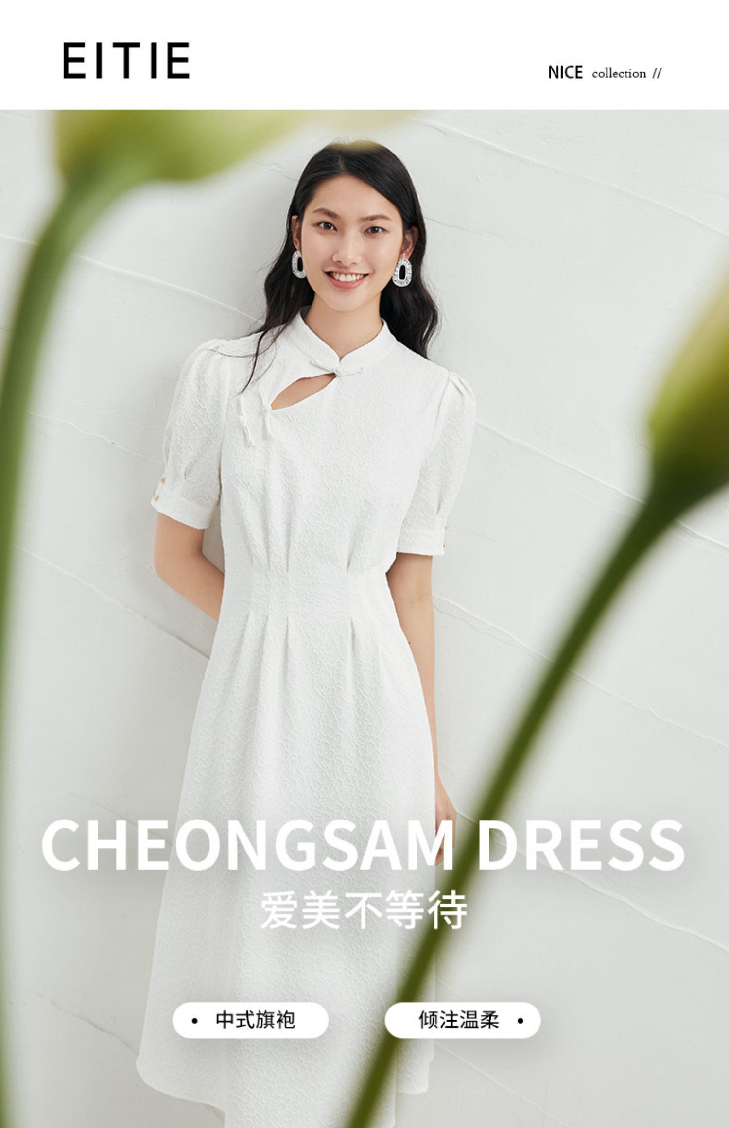 EITIE爱特爱夏新款时尚显瘦通勤气质中式立领收腰白色连衣裙B2207928